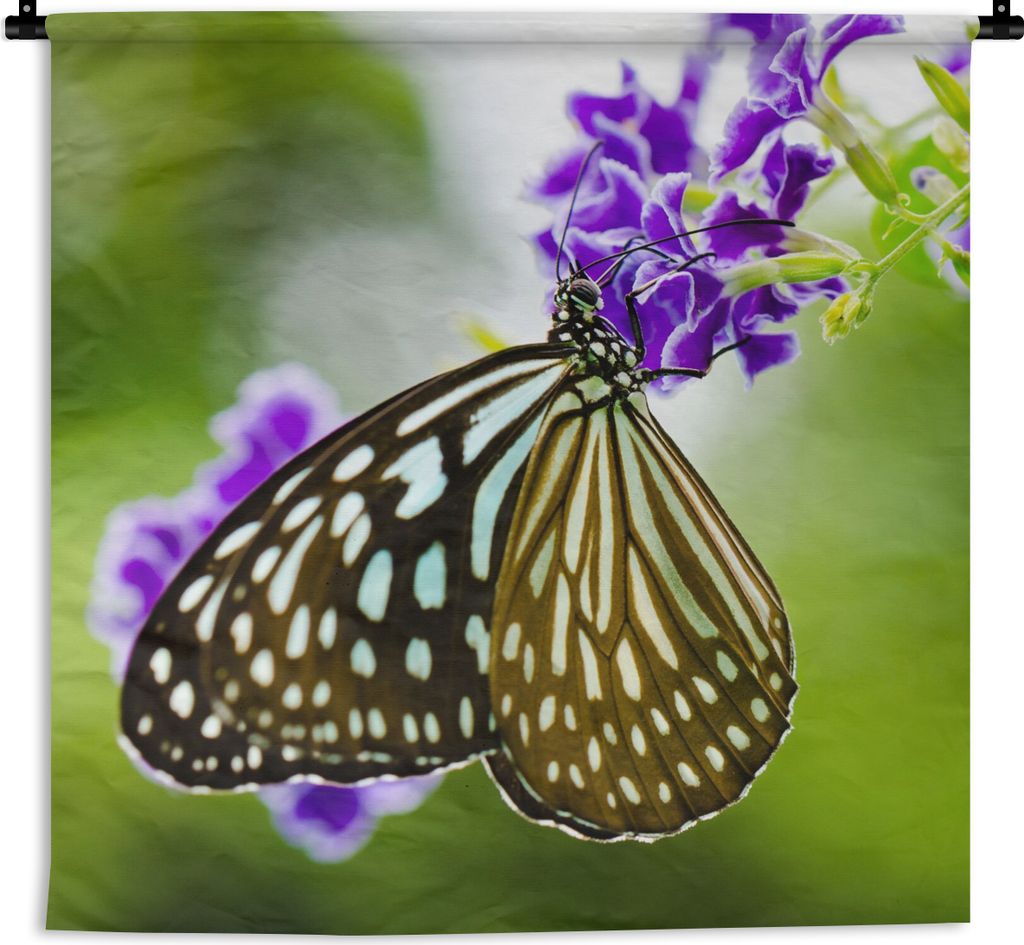 MuchoWow Wandteppich Wandbehang Lavendel - Schmetterling - Botanisch 60x60 cm Tapisserie Dekoration Wandtuch - Dekorationen - Wand Decke