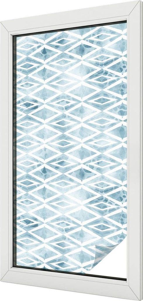 Buntglas Fensterfolie – 100x50 cm – Stained-Glass Design – blickdichte dekorative Sichtschutzfolie – selbstklebend, UV-Schutz – Blaue Rauten