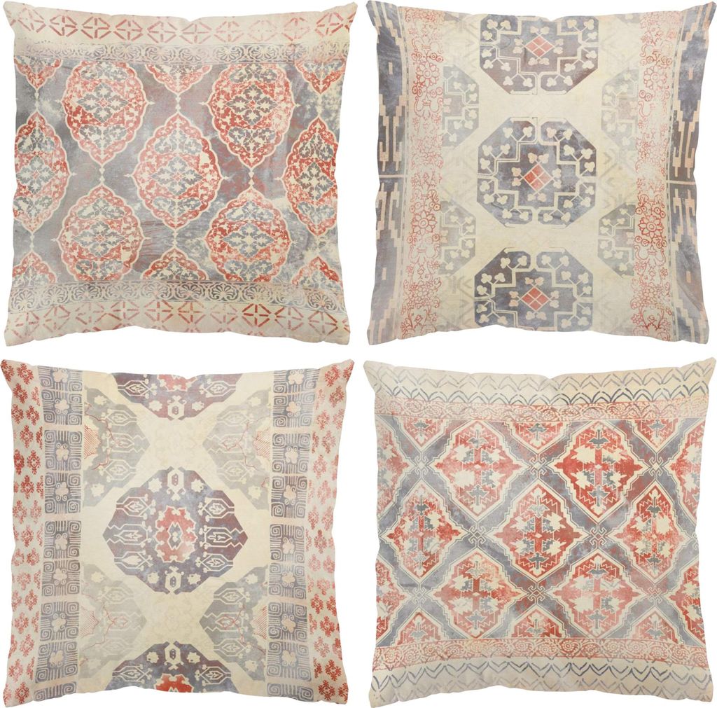 Dekokissen 4-teilig Muster drinnen / Indoor Zierkissen Samt waschbar Blumenmuster bunt Pop Art Sofakissen mit Füllung