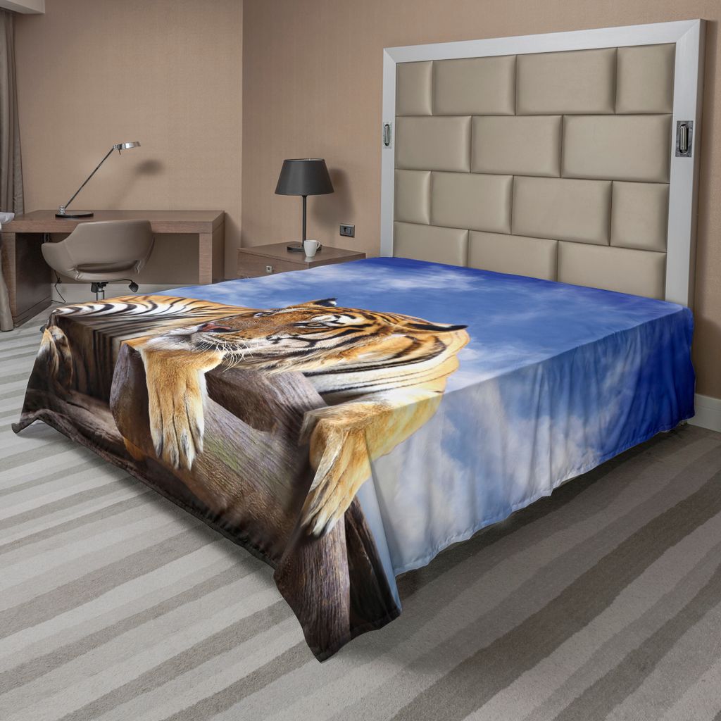 ABAKUHAUS Safari Bettlaken, Tiger, Der Auf Hölzernem Klarem Himmel Tier Morgen Stripes Predator Druck, weiches bequemes oberes Bettlaken für ein ...