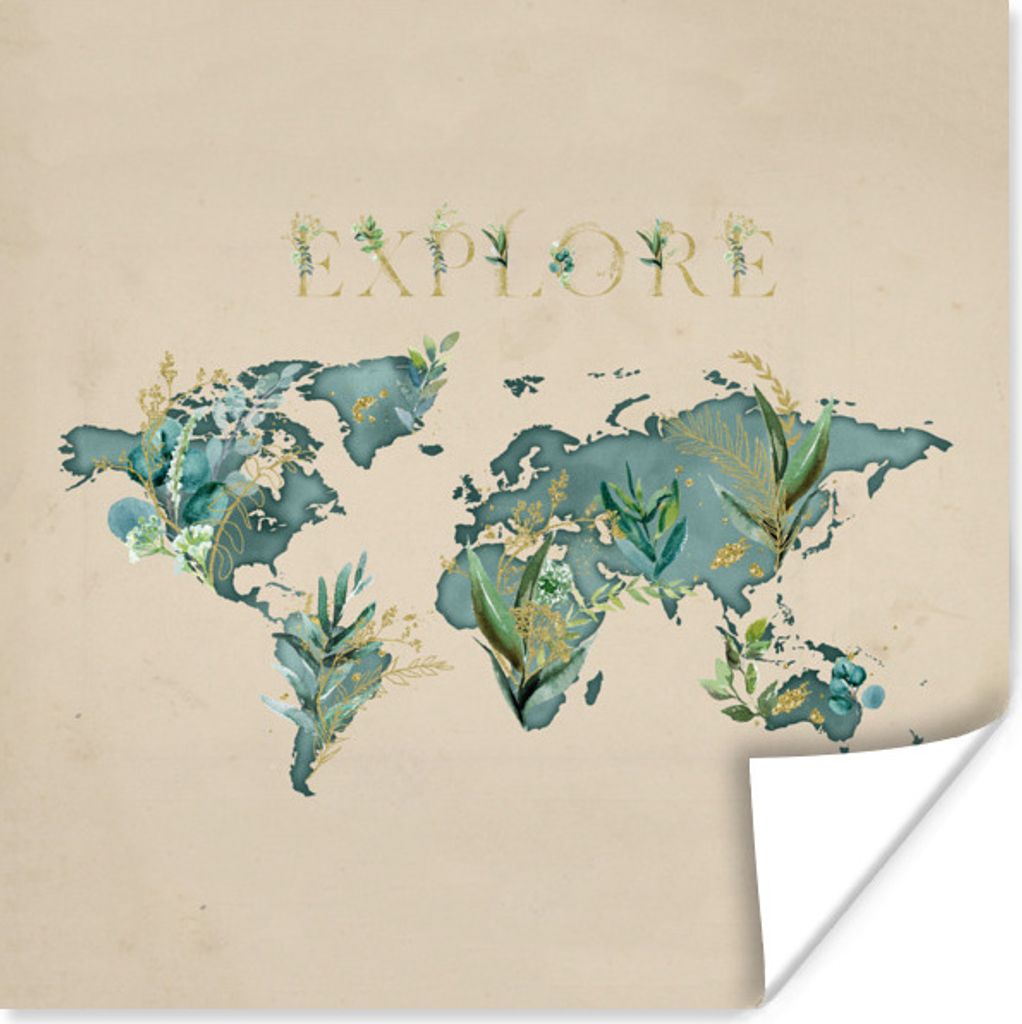 MuchoWow Poster Weltkarte - Retro - Zitat 50x50 cm - Wohnzimmerdekoration