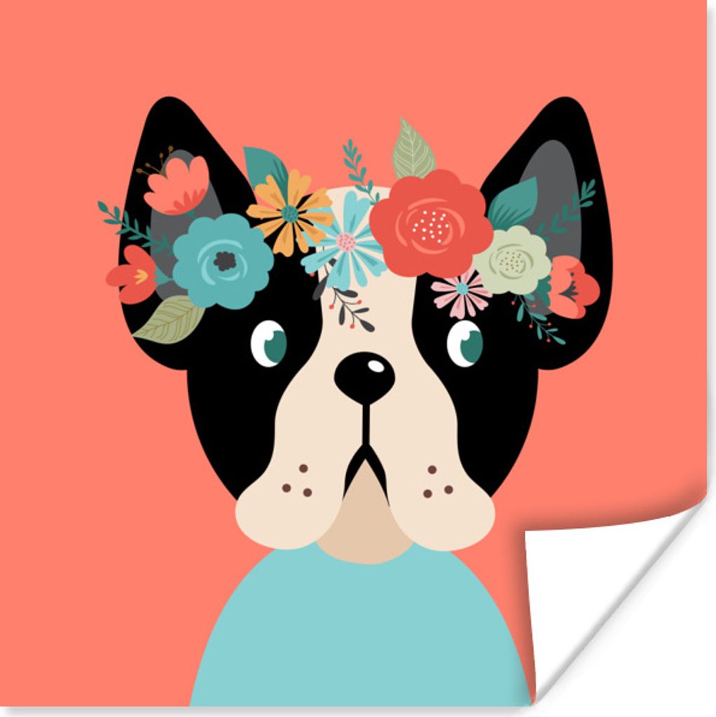 MuchoWow Poster Hund - Blumen - Rosa 50x50 cm - Wohnzimmerdekoration
