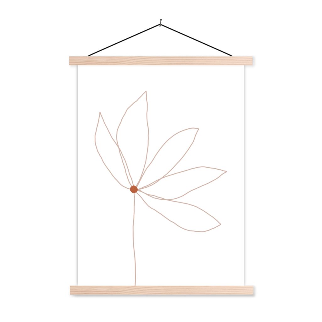 MuchoWow Textilposter Minimalismus - Blumen - Linienkunst 60x80 cm mit holzfarbenen Rahmen - Wandbild