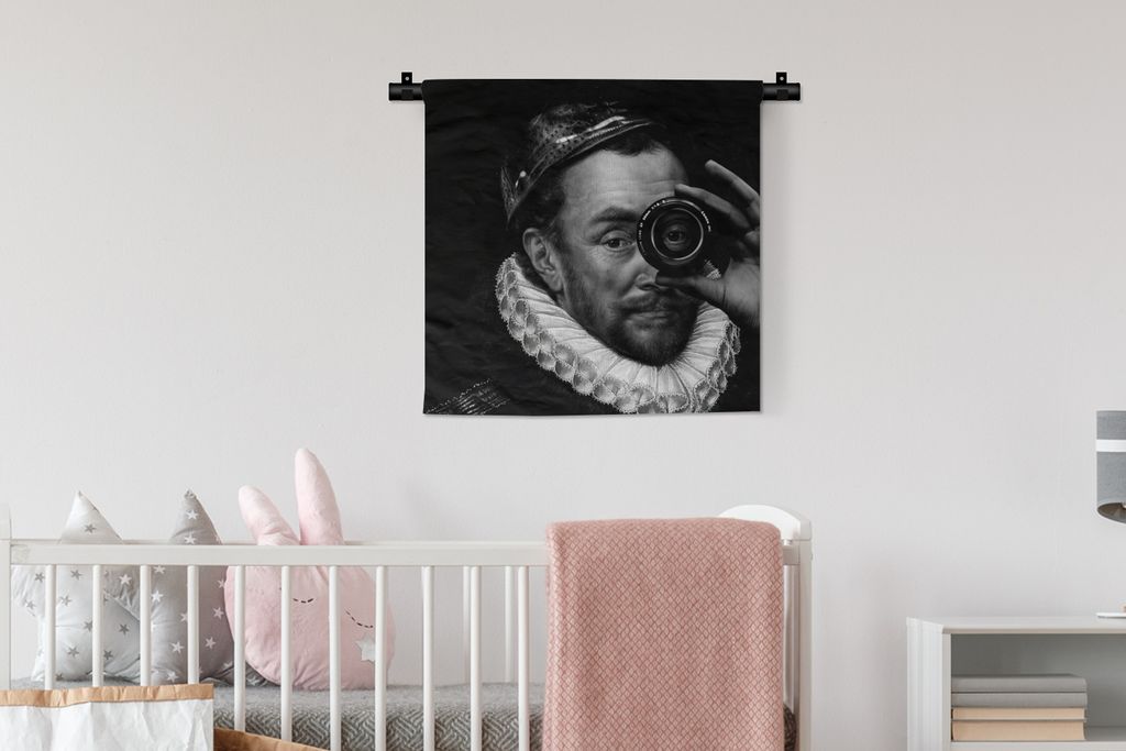 MuchoWow Wandteppich Wandbehang Porträt von Wilhelm I. - Adriaen Thomasz - Schwarz und Weiß 60x60 cm Tapisserie Dekoration Wandtuch - Dekoratio...