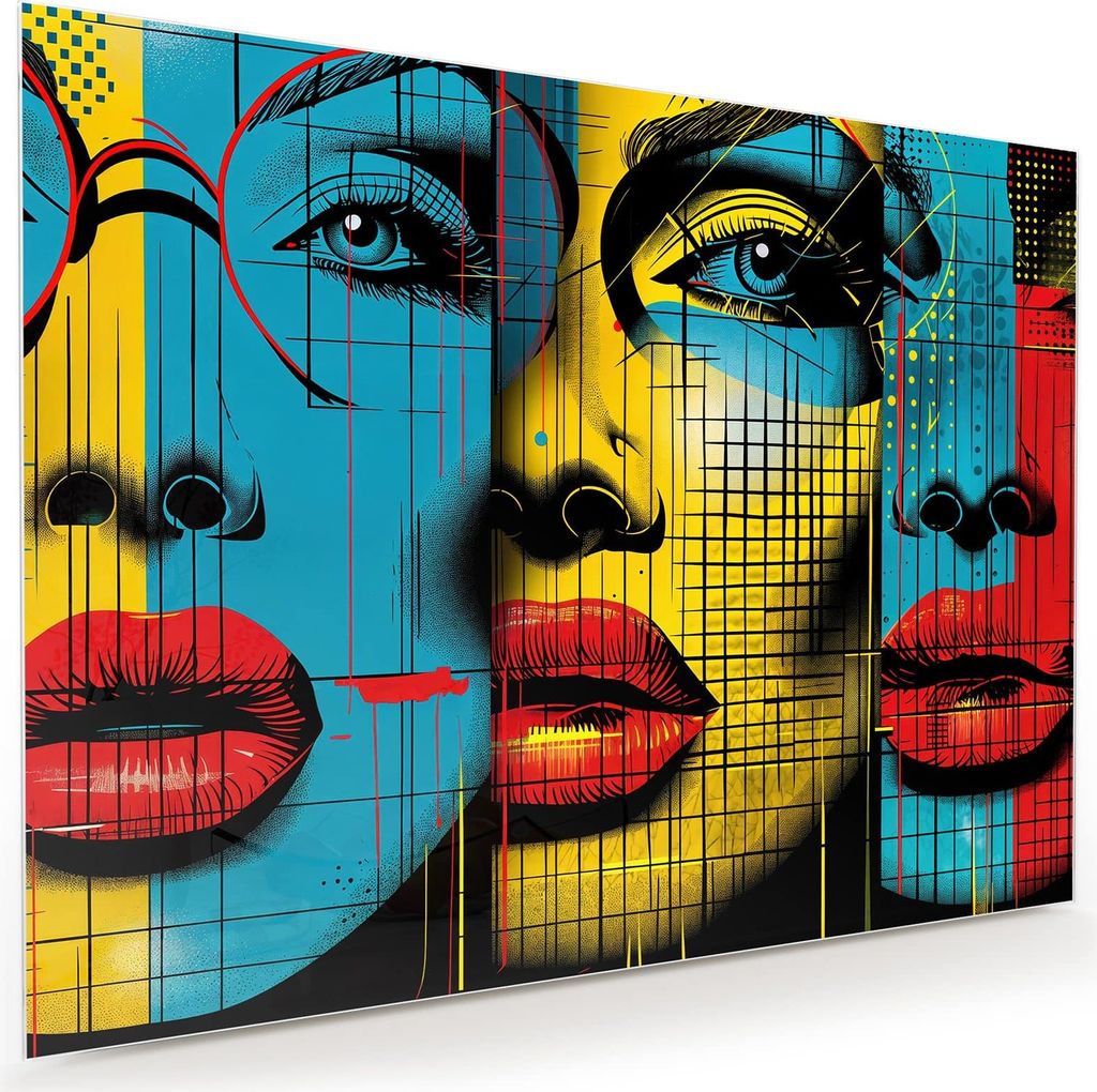 Glasbild 100x75cm in XXL für Wohnzimmer, Schlafzimmer Motiv Pop Art Gesichter