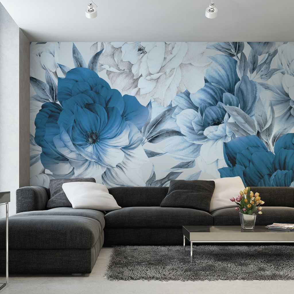 Muralo XXL Vlies FOTOTAPETE Blaue PFINGSTROSEN Blumen Natur (B) 405 cm x (H) 270 cm Tapete Wandtapete WOHNZIMMER SCHLAFZIMMER 5201