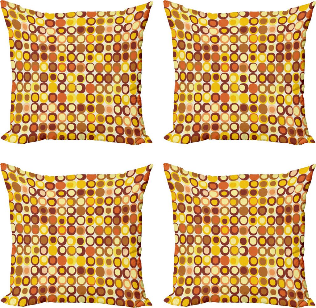 ABAKUHAUS Mitte des Jahrhunderts Kissenbezug Set (4 Stück), Design Retro-Platz, Moderner Doppelseitiger Digitaldruck, 45 cm x 45 cm, Braun, Gelb, ...