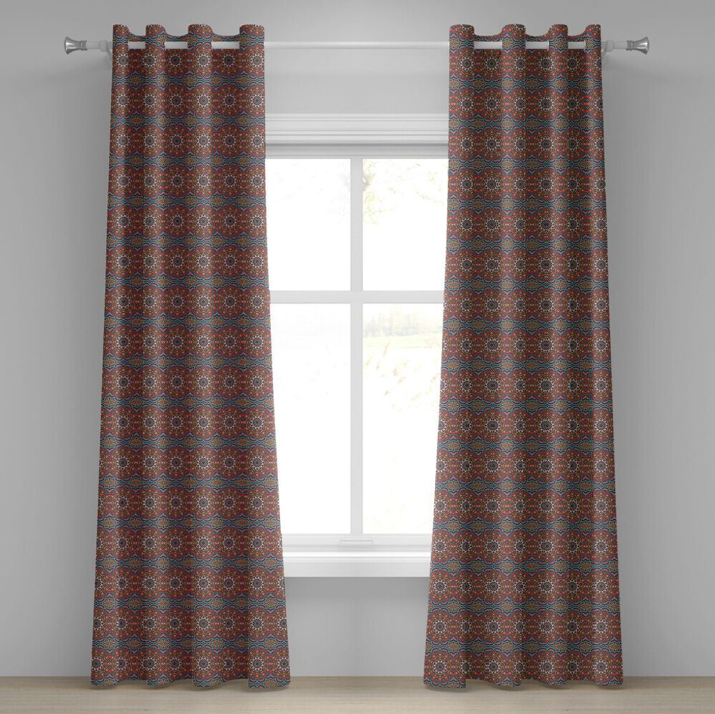 ABAKUHAUS Mandala Ösenvorhang, Natur inspirierte florale Abstraktion in Retro-Farben dekorative Blütenblätter, Dekorative 2-Panel-Fenstervorhän...