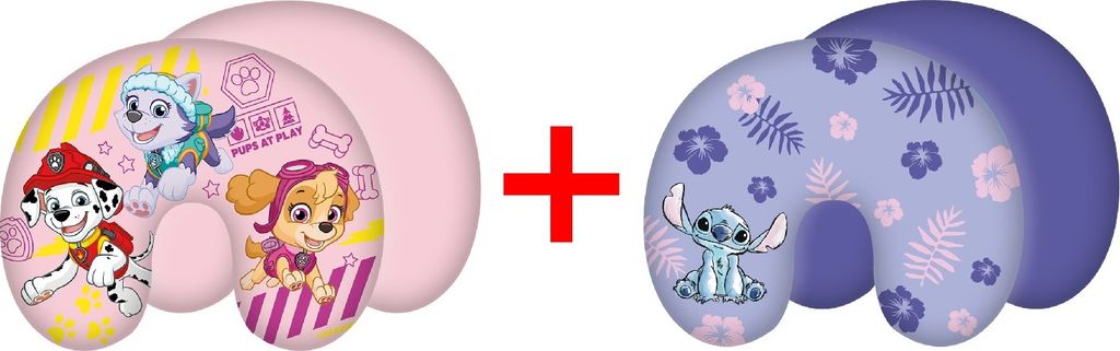 2er-Set Nackenkissen Reisekissen Paw Patrol Marshall Skye Everest und Lilo und Stitch, 28 x 33 cm, 100% Polyester, Geschenk-Set