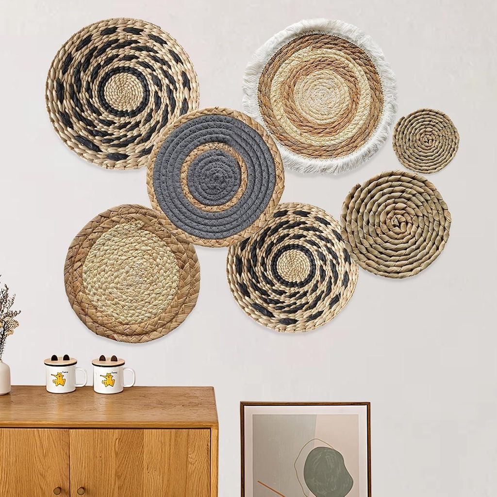 Boho Wandmanden Set von 7 - Handgemacht, Geflochten, Rattan, Wanddekoration