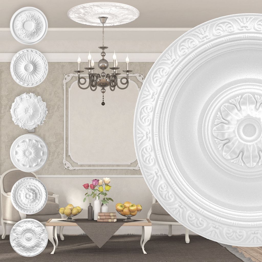 MARBET DESIGN Stuckrosette aus EPS Styropor - Deckenrosette weiß, Zierelement, Stuck (R-20, Ø 40cm) Wanddekoration Schlafzimmer Lampe Rosette rund