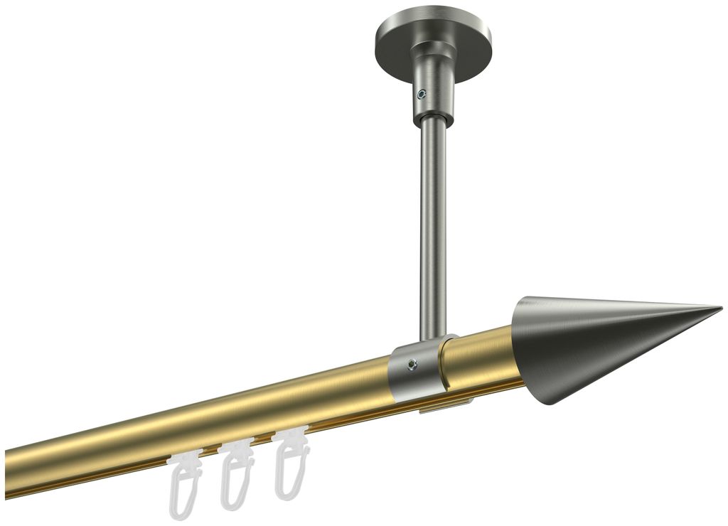 Interdeco Innenlaufstange / Gardinenstange mit Innenlauf Messing-Optik / Edelstahl-Optik, Typ Sonette Savio (Kegel) Deckenmontage, 20 mm Ø 1-läuf...
