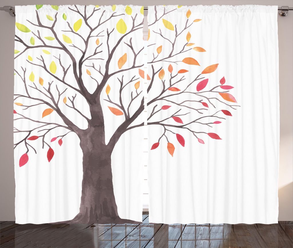 ABAKUHAUS Natur Rustikaler Vorhang, Waldbäume mit Blättern, Wohnzimmer Universalband Gardinen mit Schlaufen und Haken, 280 x 225 cm, Mehrfarbig