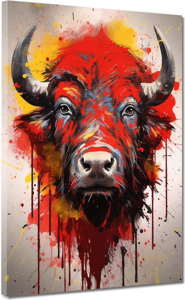 Bull Red Pop Art Stier Leinwandbild Wandbild Kunstdruck XL Wanddeko: 60x80x2cm