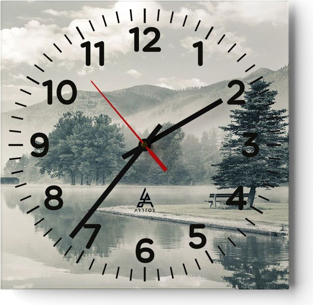 Wanduhr - Quadrat - Glasuhr - Cool Landschaft Berge - 40x40cm - Schleichendes Uhrwerk - Lautlos - zum Aufhängen bereit - Dekoration Modern - Wandd...