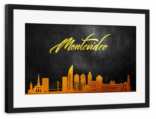 Poster mit Rahmen schwarz "Montevideo Uruguay Gold Skyline" artboxONE - Städte - Montevideo,Gold,Skyline,Uruguay