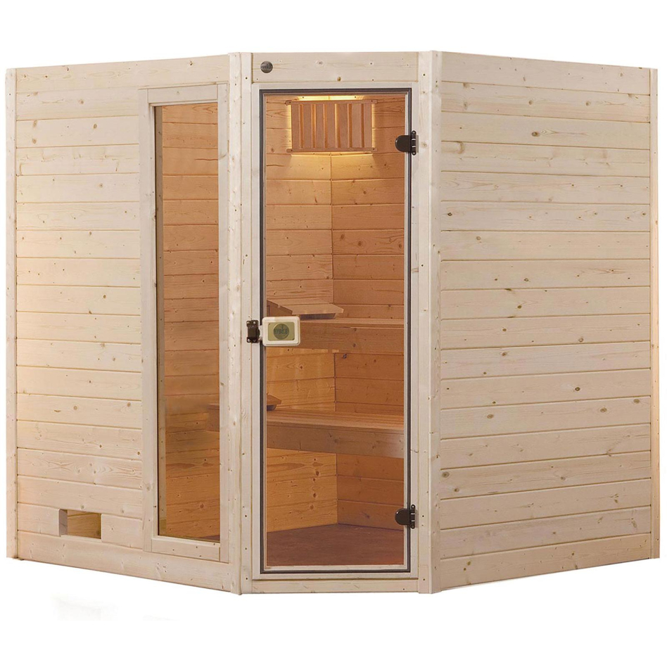 weka Massivholz Sauna VALIDA Eck Sparset, mit 7,5 kW OS Klassikofen, 189x172 cm,Glastür & Fensterelement