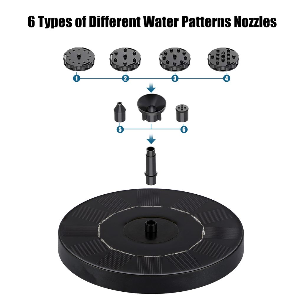 1,5 W Solar-Brunnenpumpe mit 6 Duesen, freistehende Wasserpumpe, schwimmender Brunnen fuer Vogelbad, Aquarium, Pool, Garten, kleiner Teich