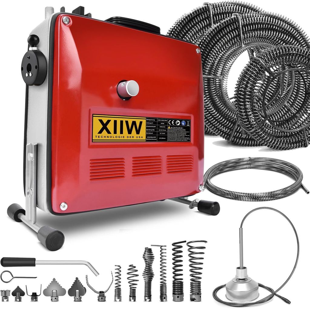 Rohrreinigungsmaschine 850W mit 21m Ø22mm,14.5m Ø16mm, 5m Ø10mm Spirale für Ø20-200mm, Rohrreinigungsgerät 450U/M Elektrische Abflussreiniger
