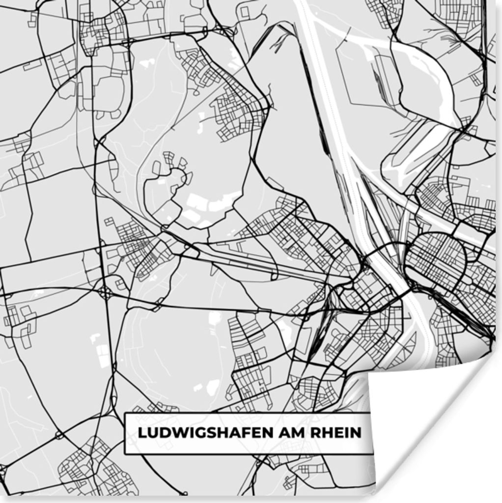 MuchoWow Poster Karte - Deutschland - Ludwigschafen Am Rhein - Karte - Stadtplan 30x30 cm - Wandposter - Printing