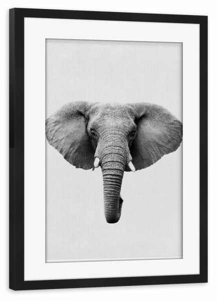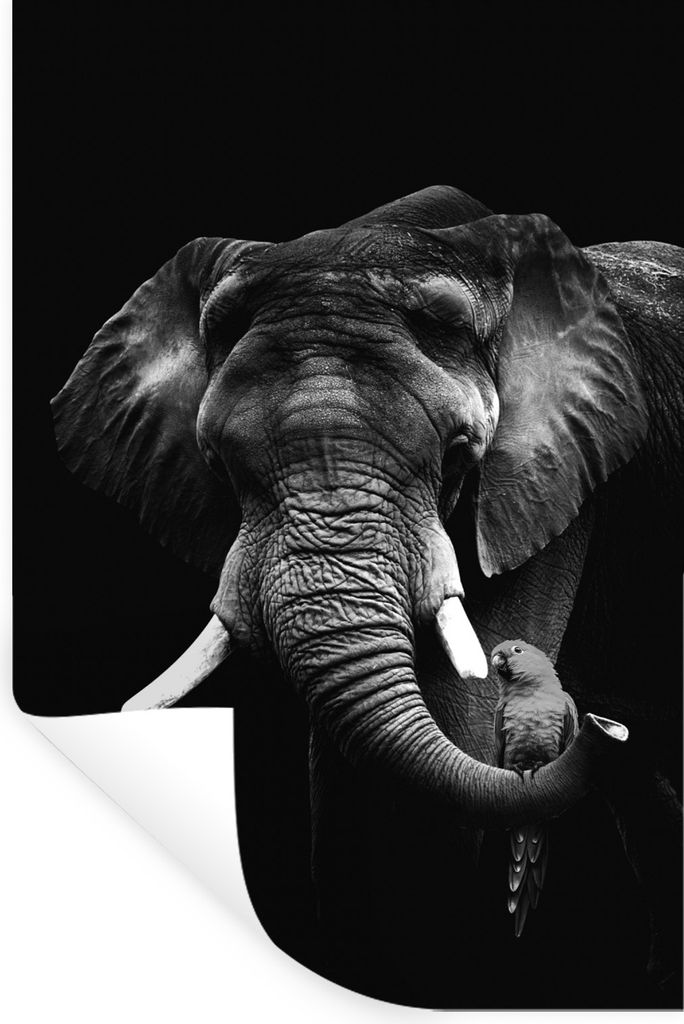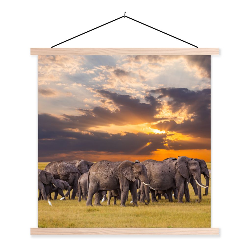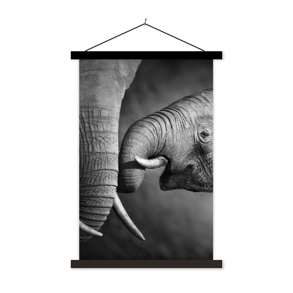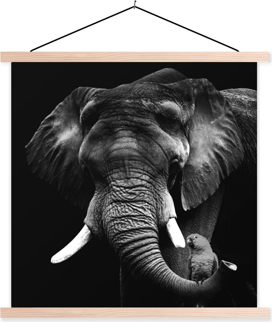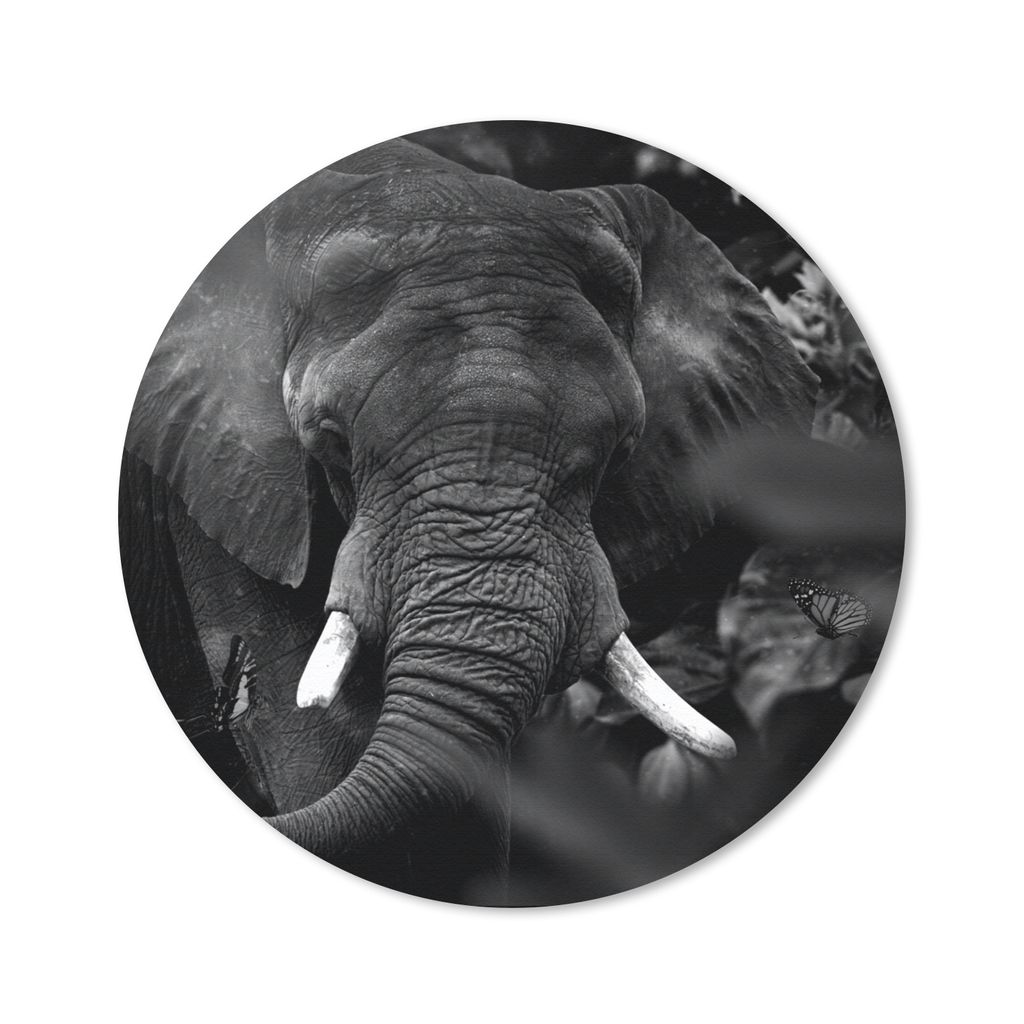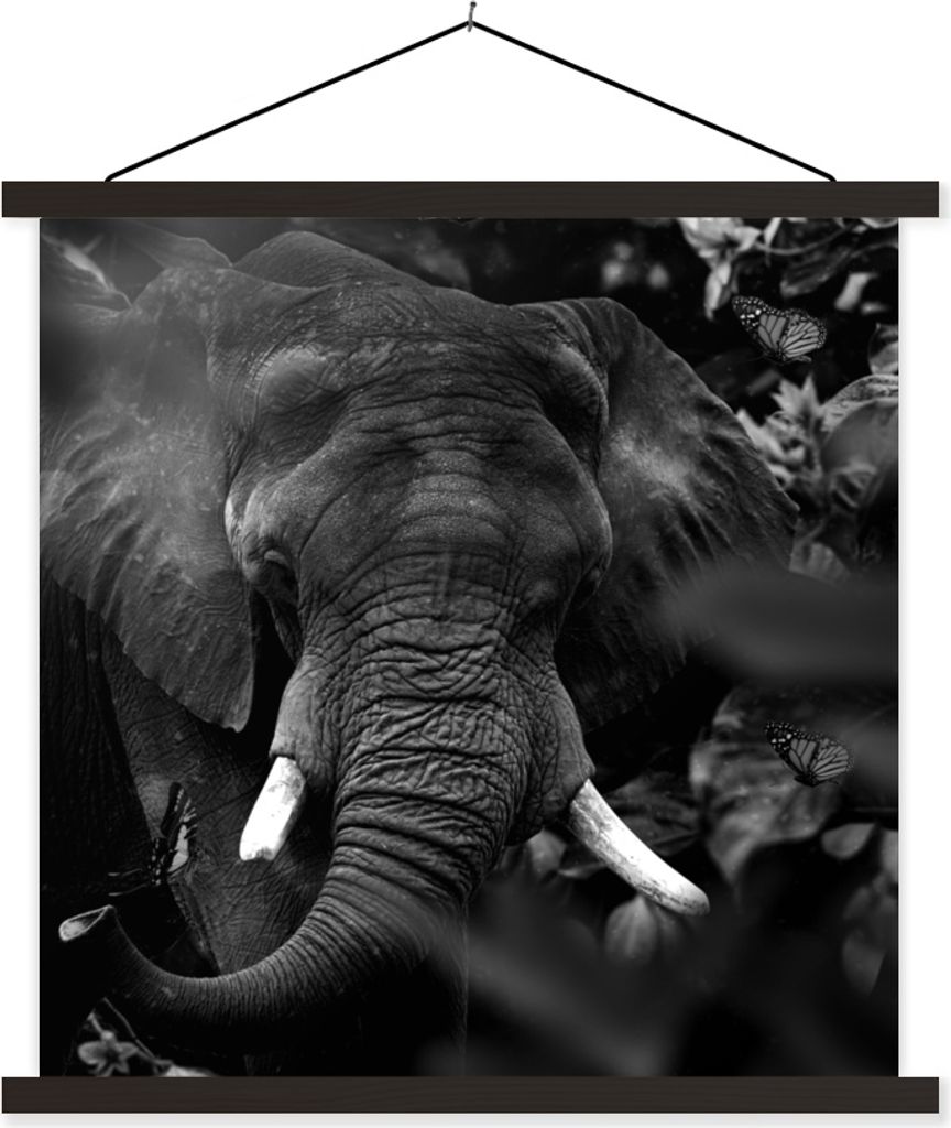 MuchoWow Textilposter Tiere - Elefant - Schmetterlinge - Schwarz - Weiß 90x90 cm mit schwarzem Rahmen - Magnetisches