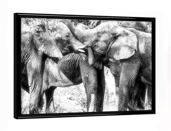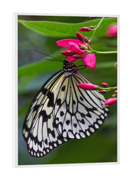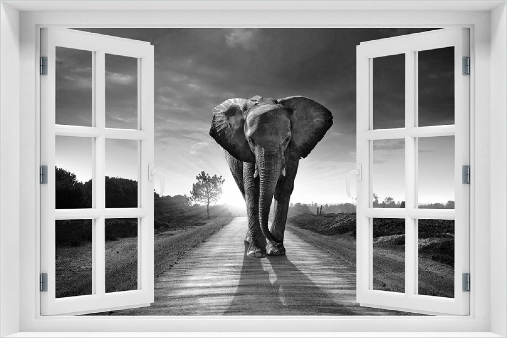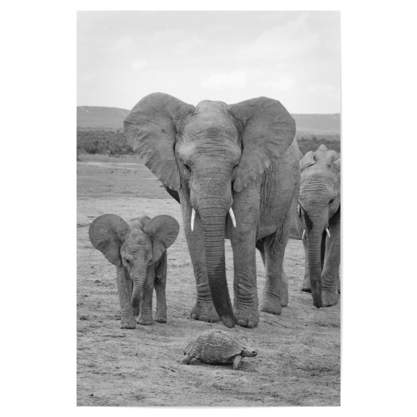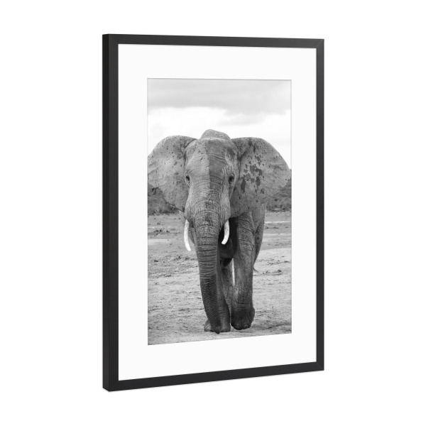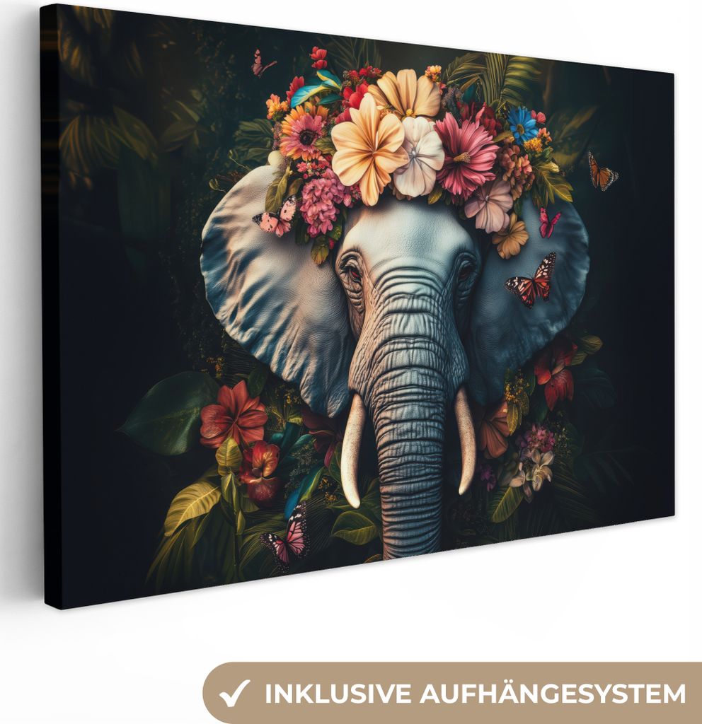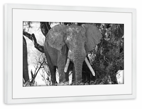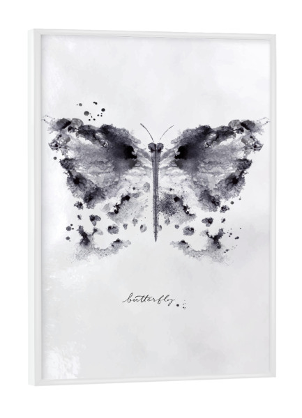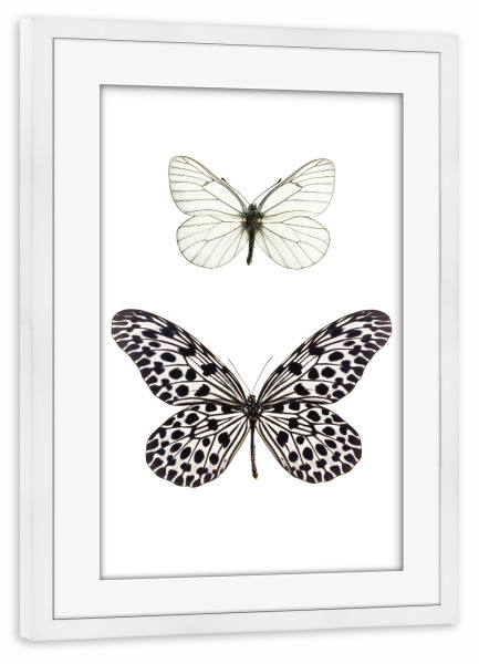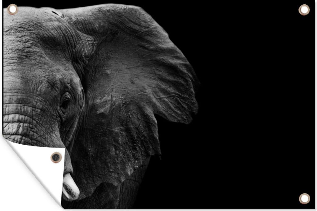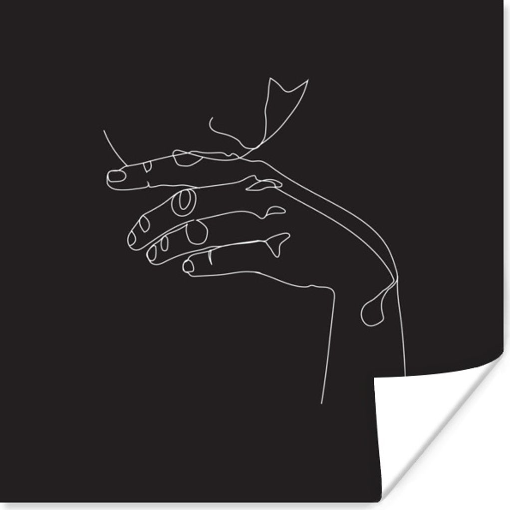 MuchoWow Textilposter Tiere - Elefant - Schmetterlinge - Schwarz - Weiß 90x90 cm mit schwarzem Rahmen - Magnetisches