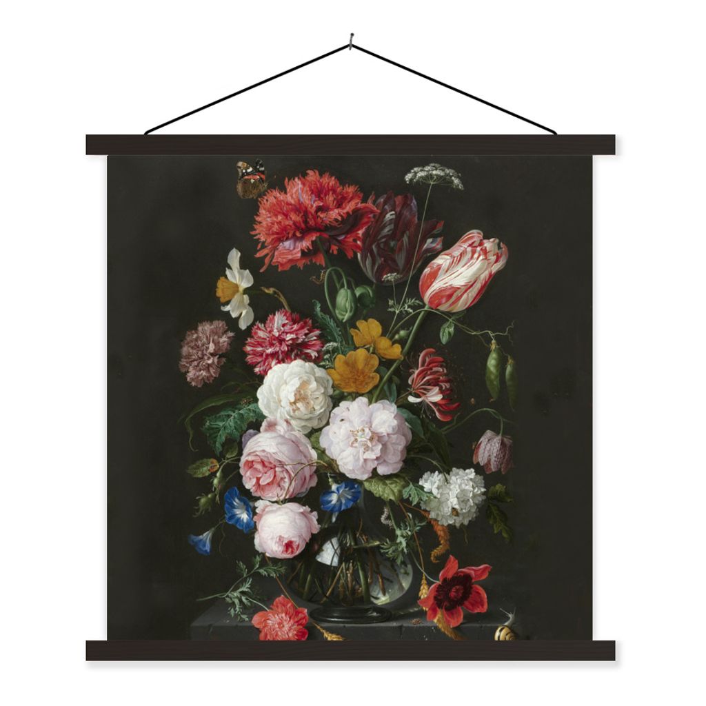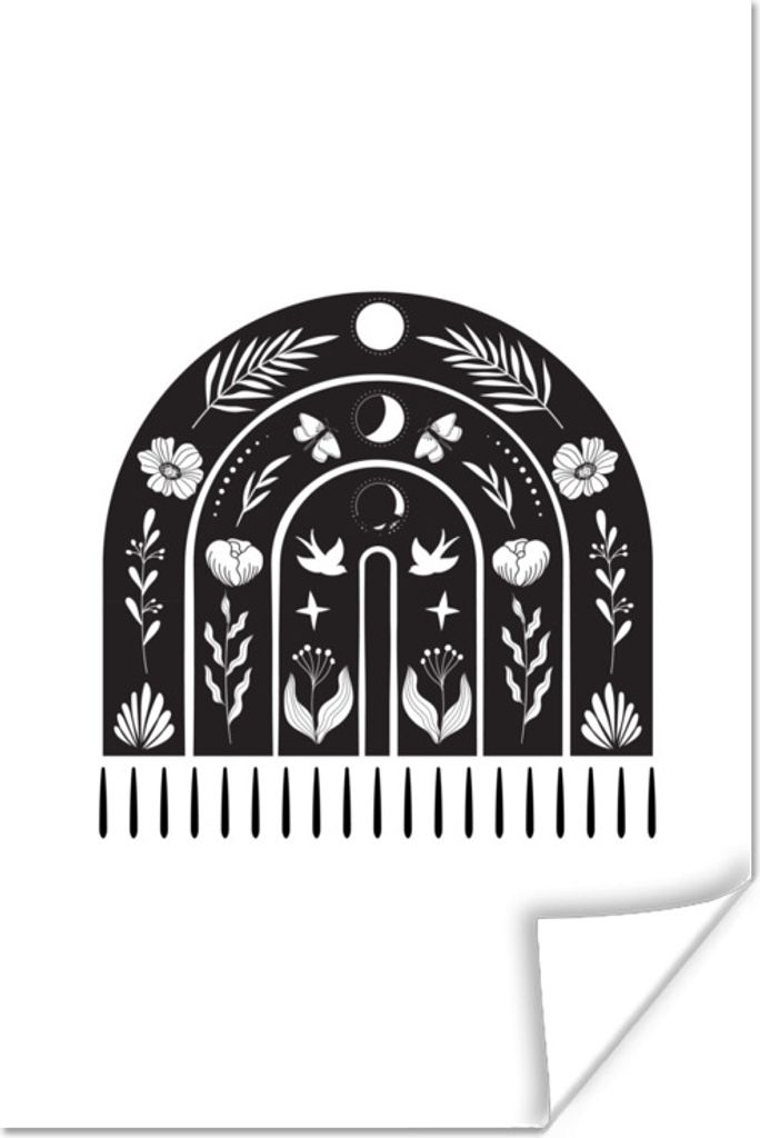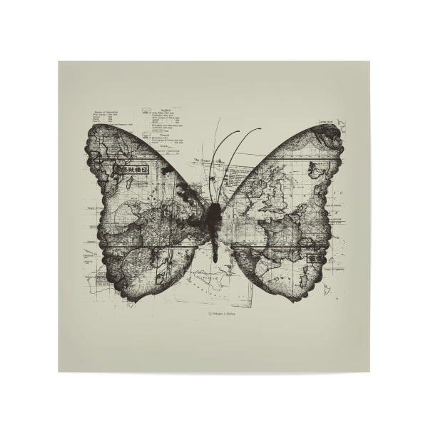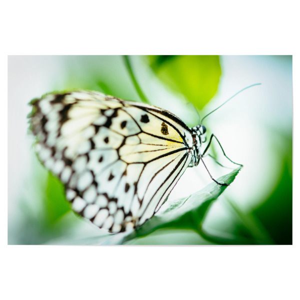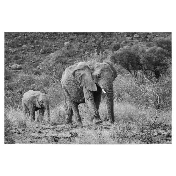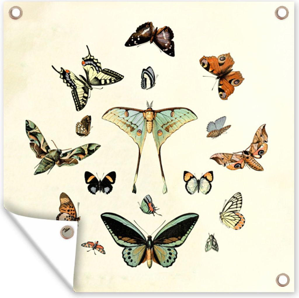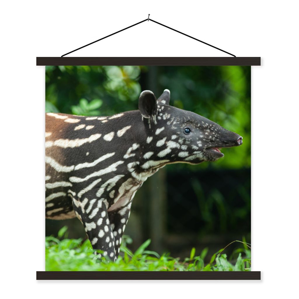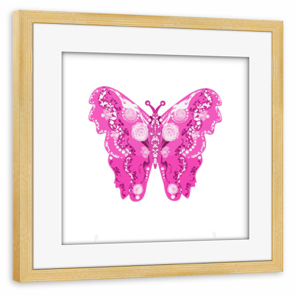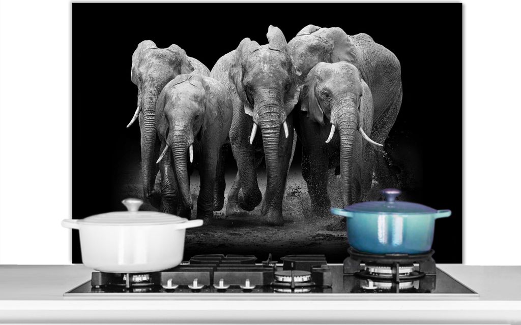 MuchoWow Textilposter Tiere - Elefant - Schmetterlinge - Schwarz - Weiß 90x90 cm mit schwarzem Rahmen - Magnetisches