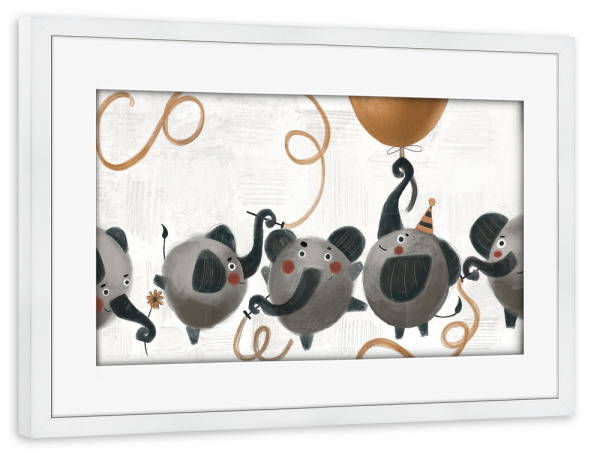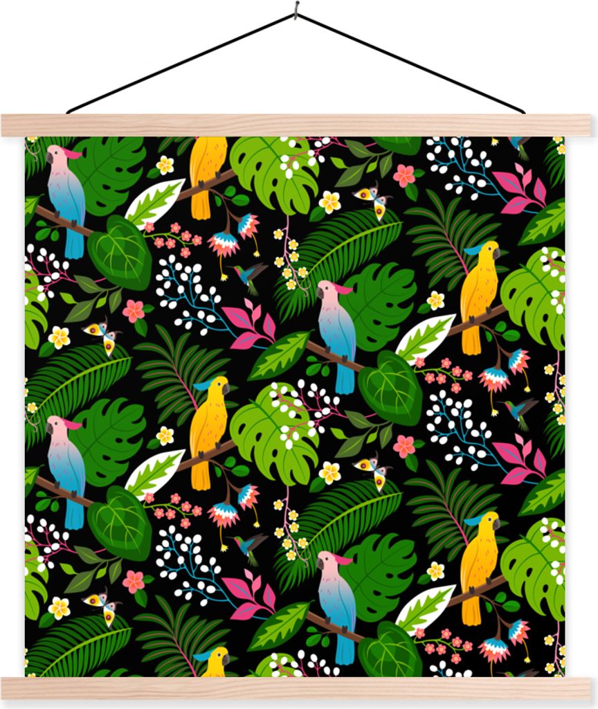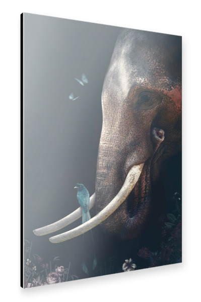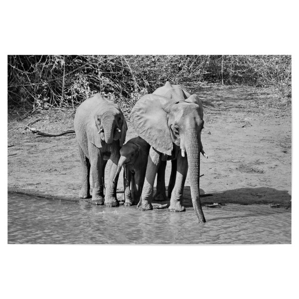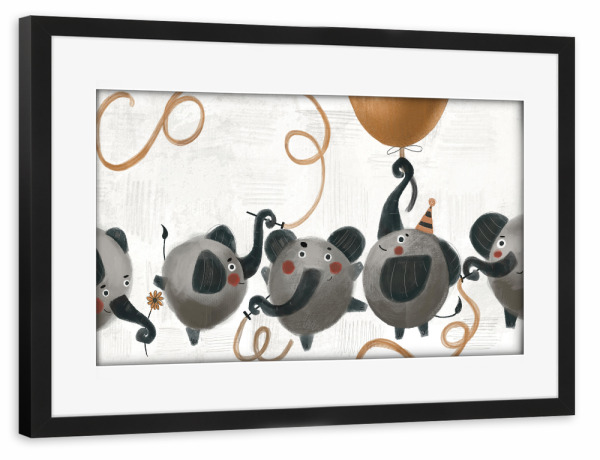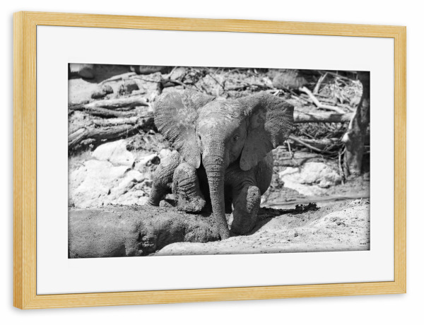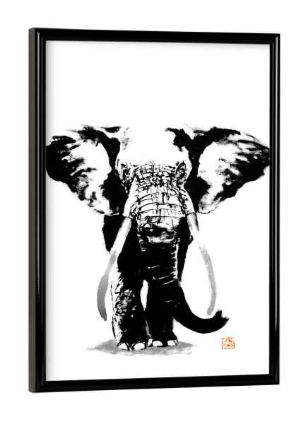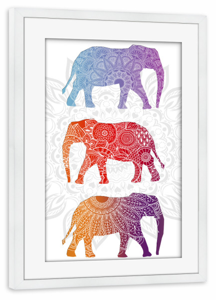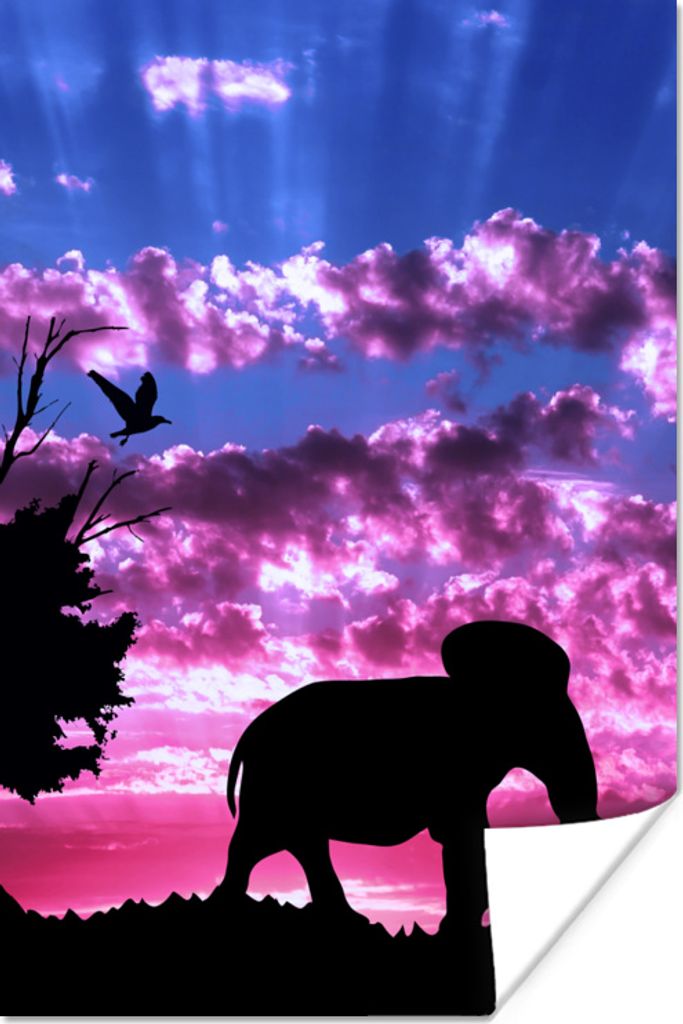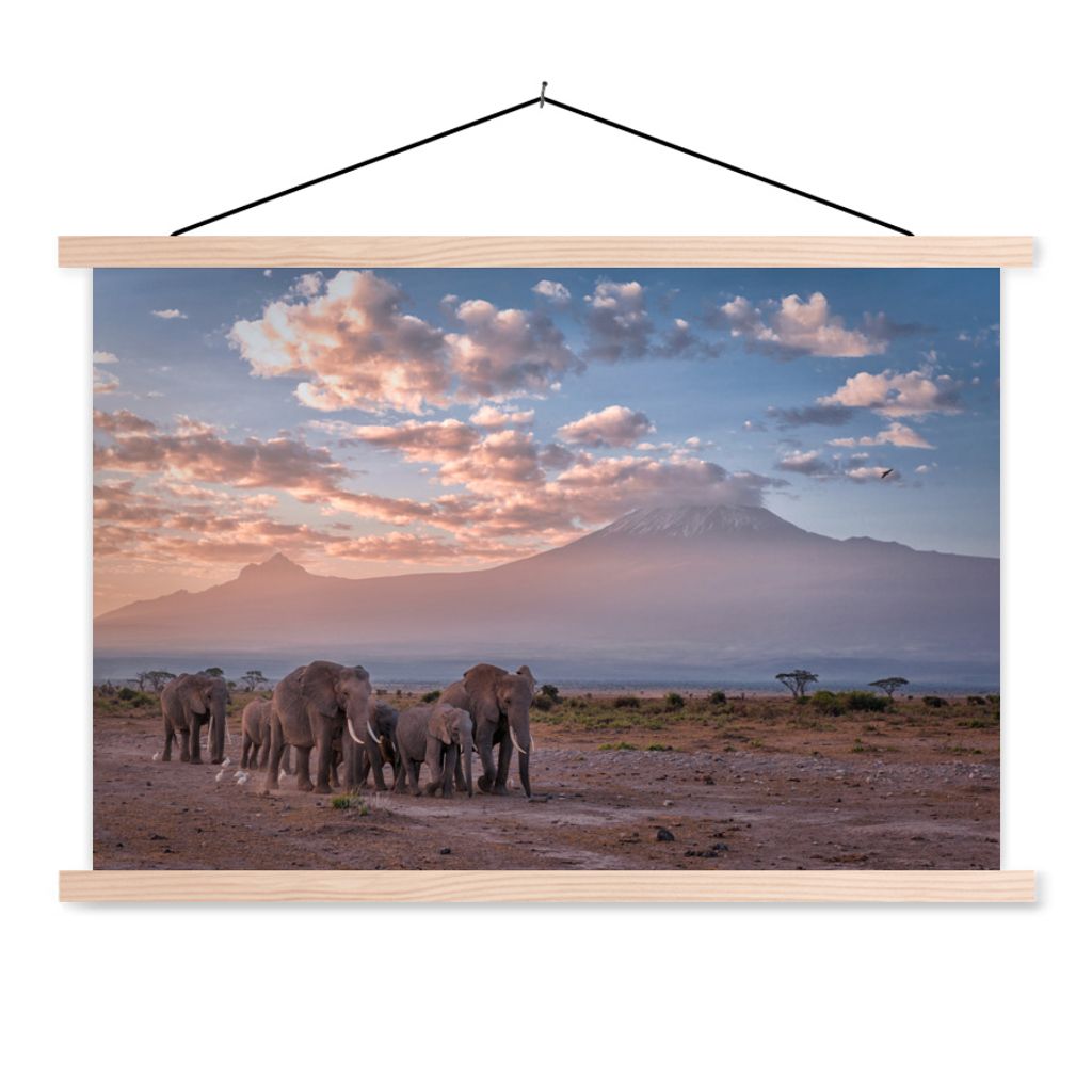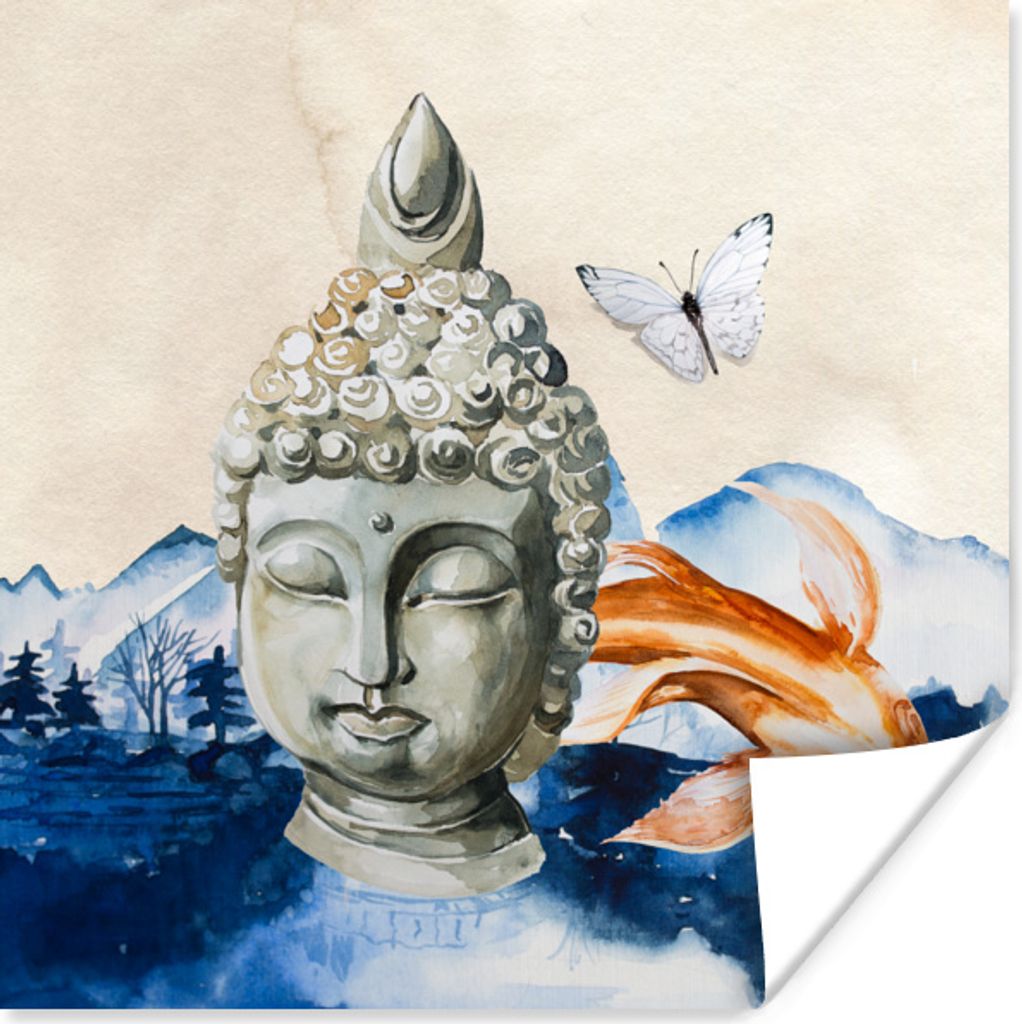 MuchoWow Textilposter Tiere - Elefant - Schmetterlinge - Schwarz - Weiß 90x90 cm mit schwarzem Rahmen - Magnetisches