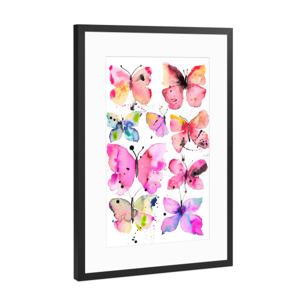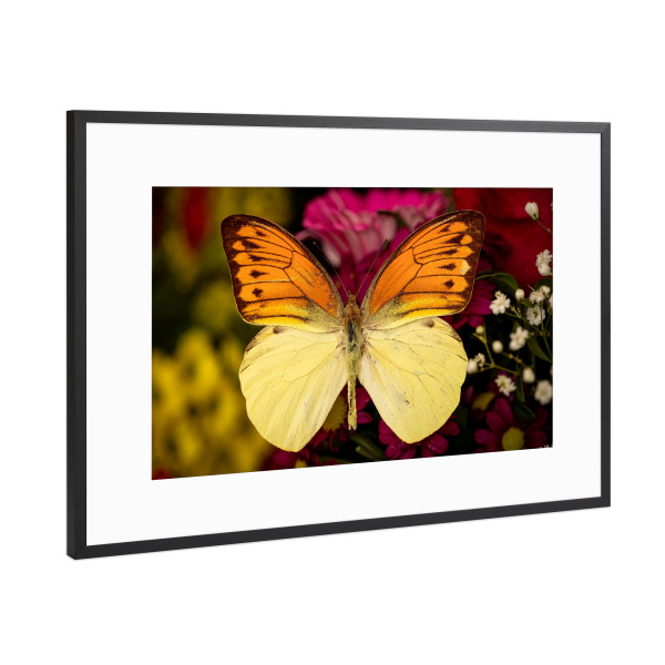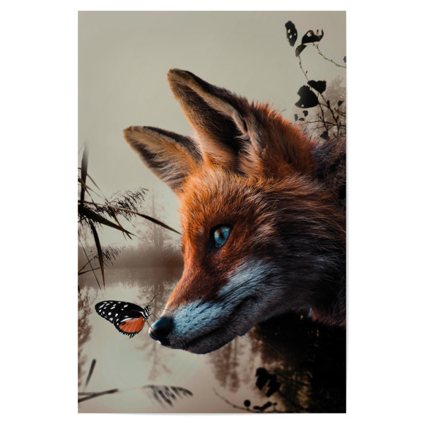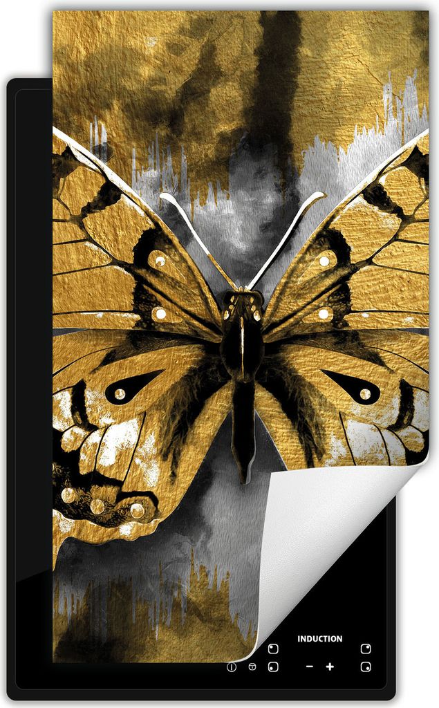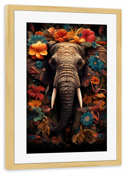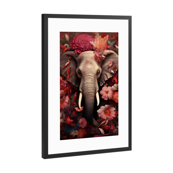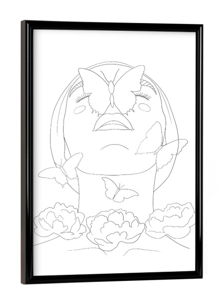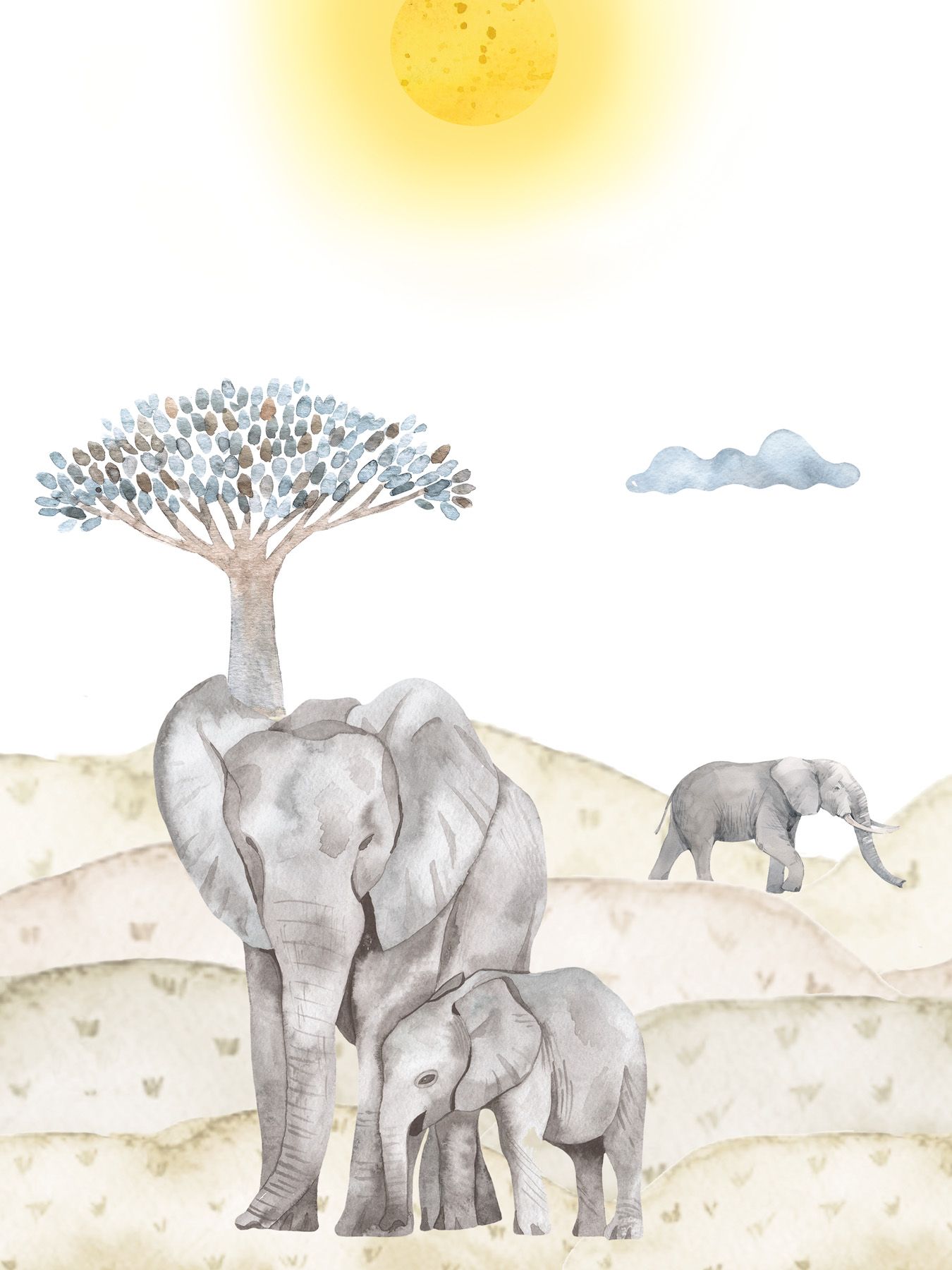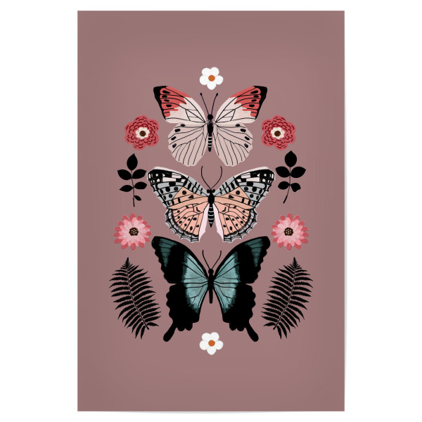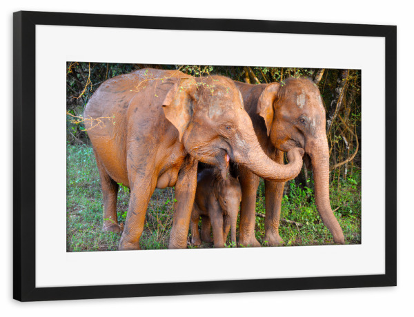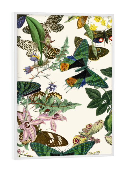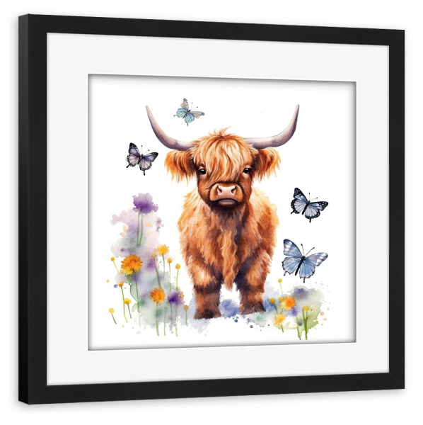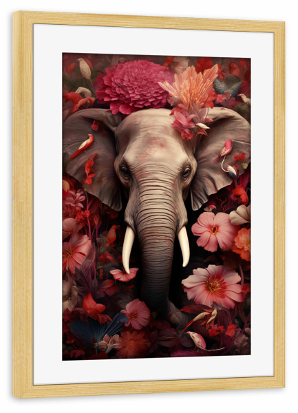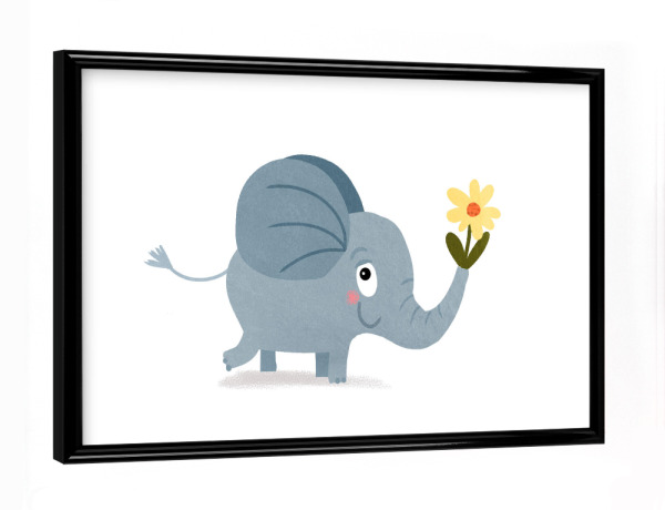 MuchoWow Textilposter Tiere - Elefant - Schmetterlinge - Schwarz - Weiß 90x90 cm mit schwarzem Rahmen - Magnetisches