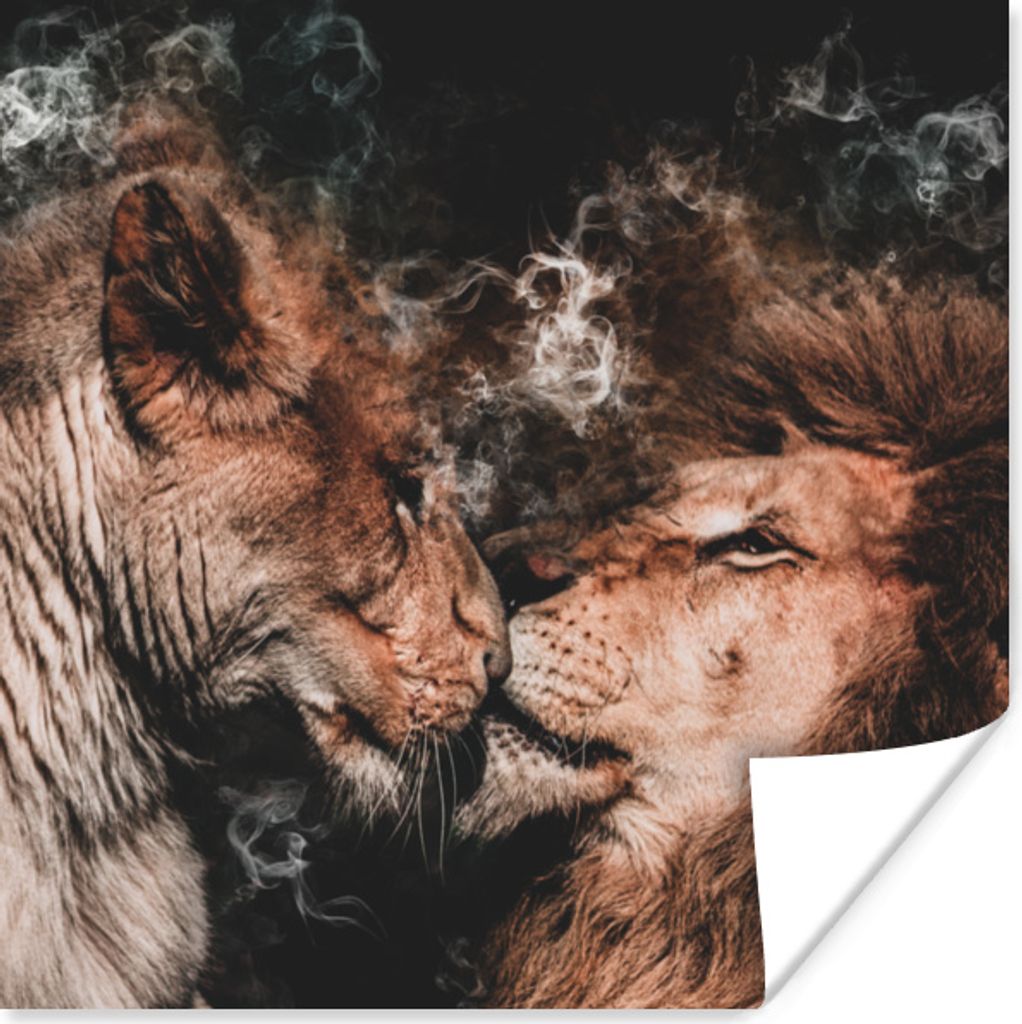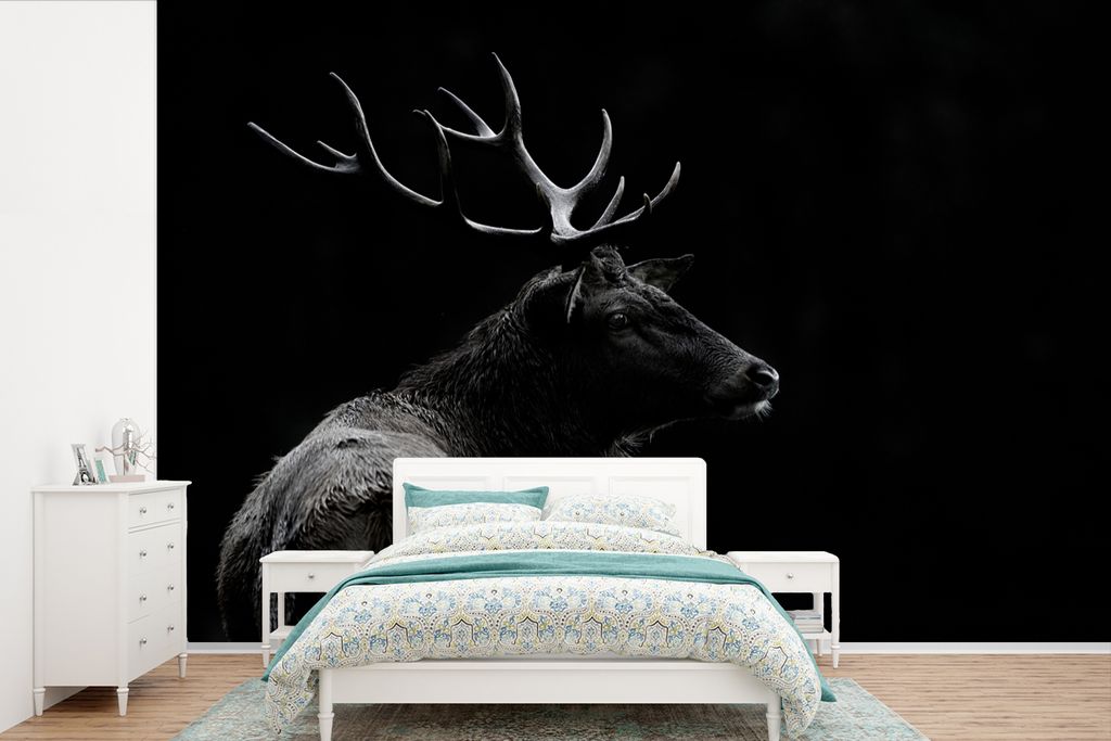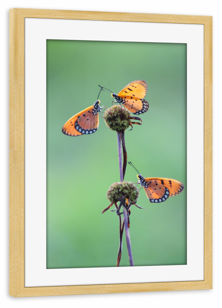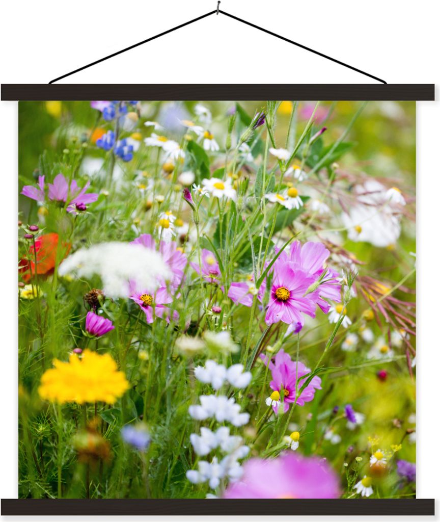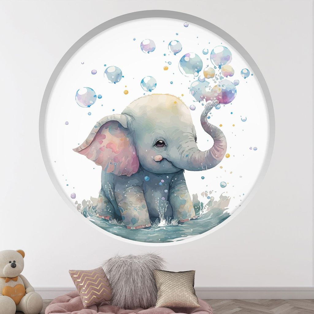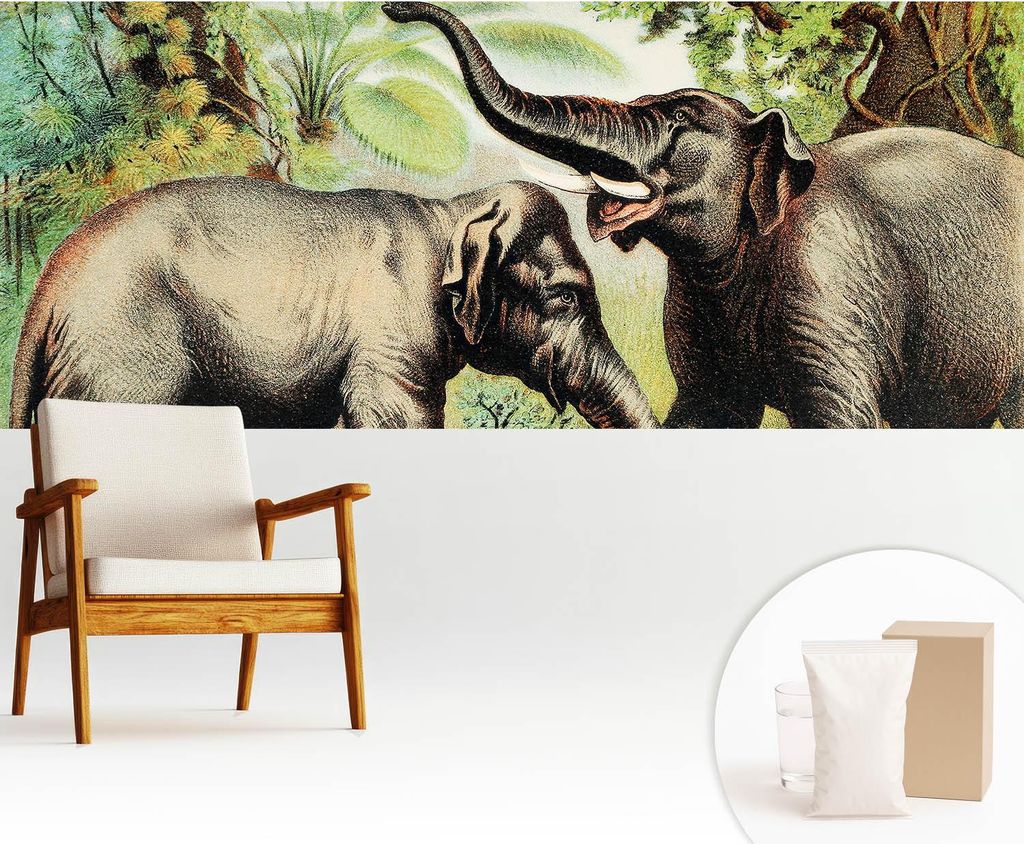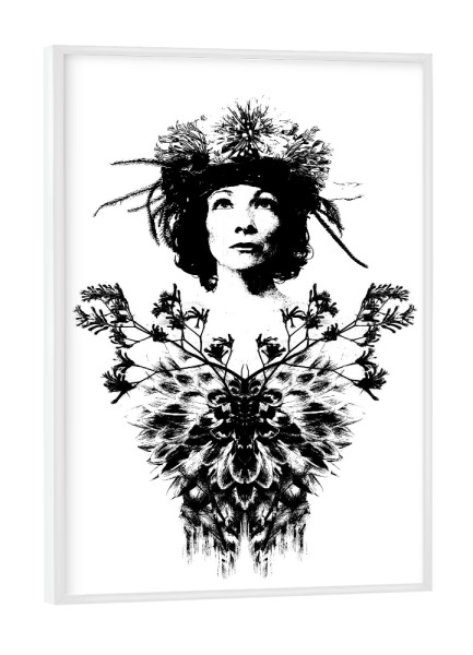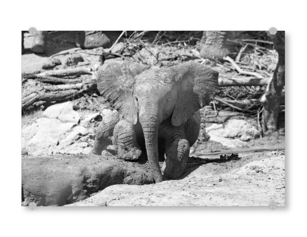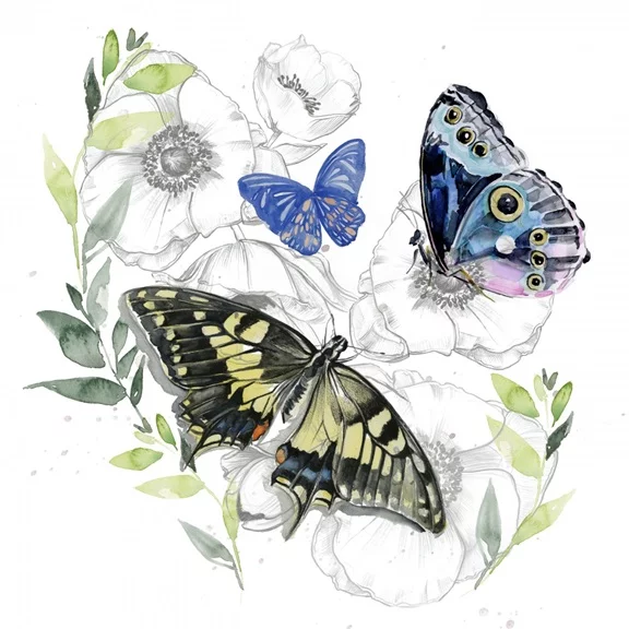 MuchoWow Textilposter Tiere - Elefant - Schmetterlinge - Schwarz - Weiß 90x90 cm mit schwarzem Rahmen - Magnetisches