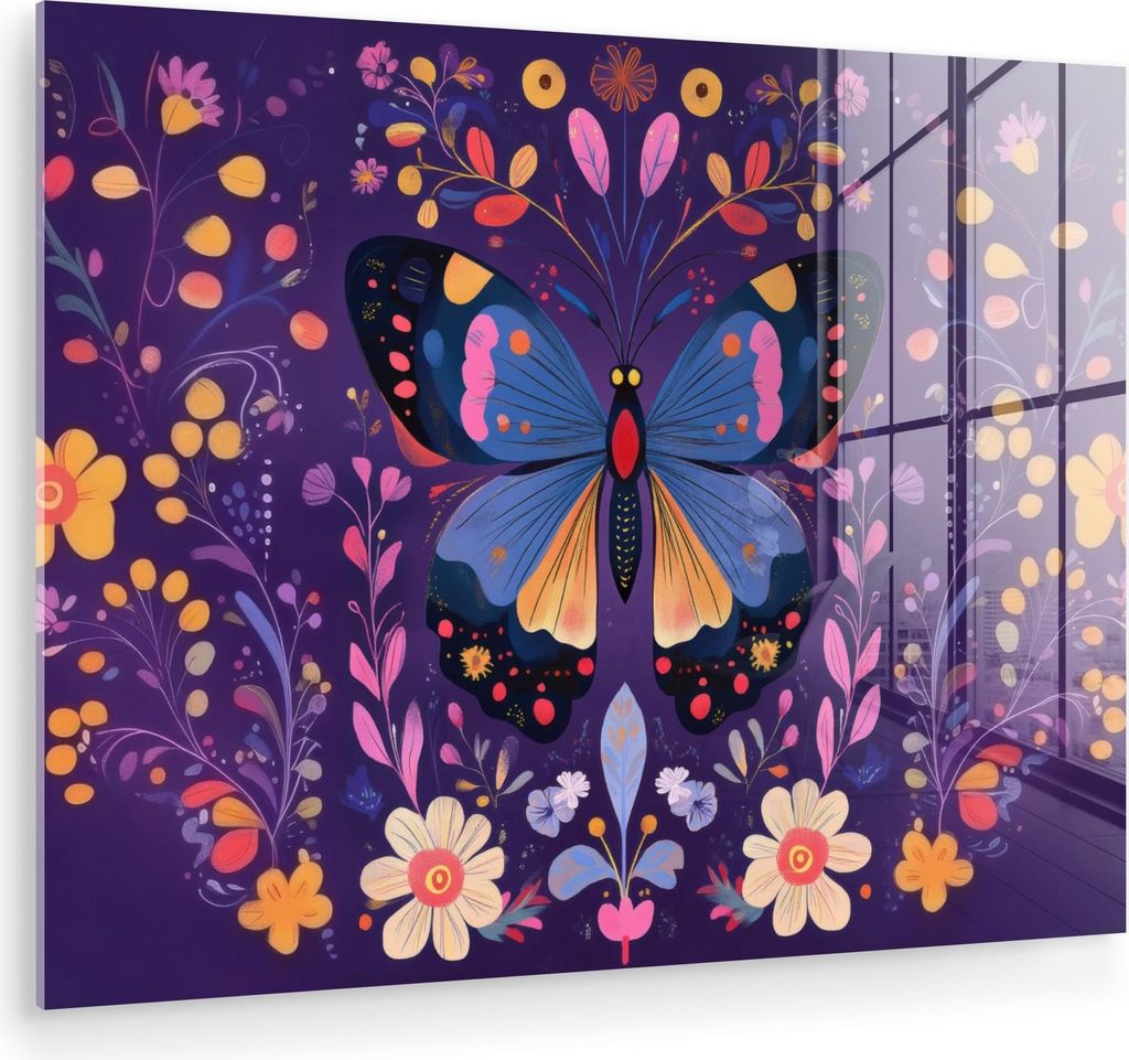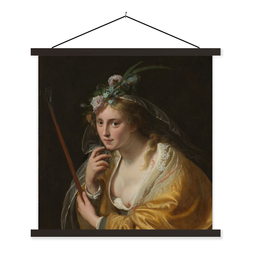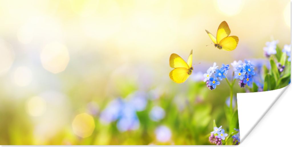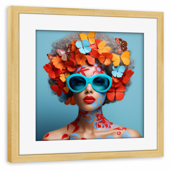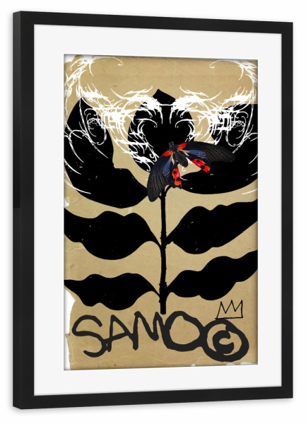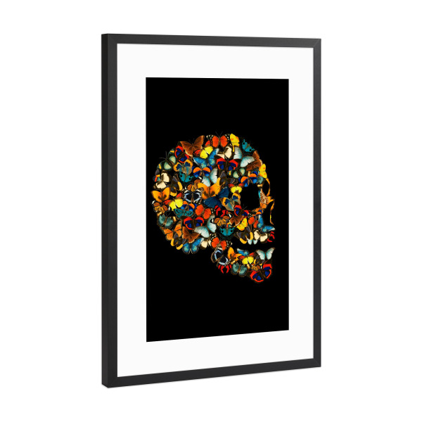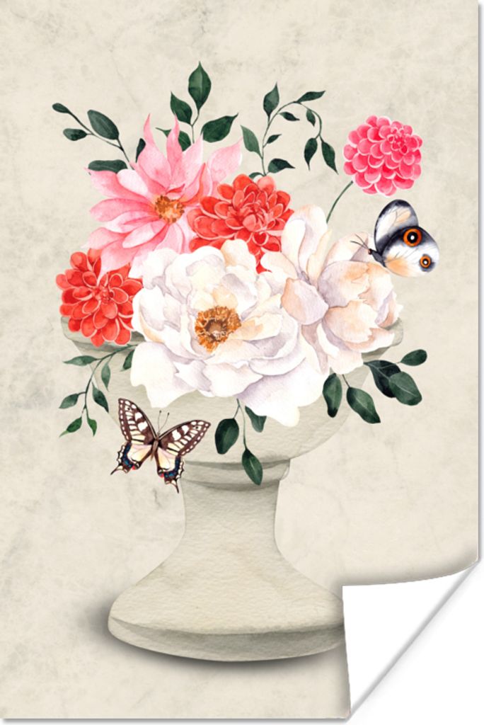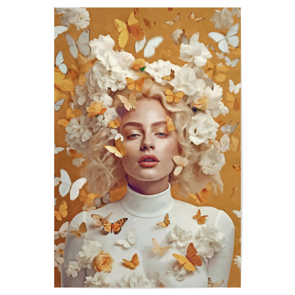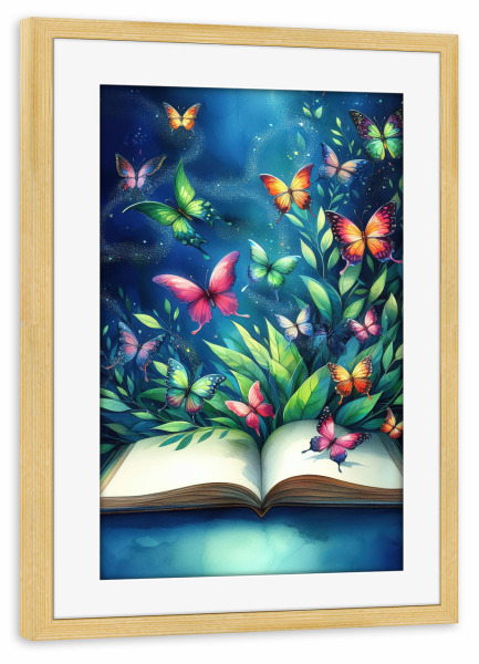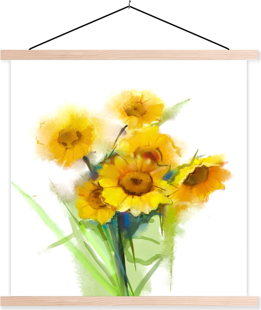 MuchoWow Textilposter Tiere - Elefant - Schmetterlinge - Schwarz - Weiß 90x90 cm mit schwarzem Rahmen - Magnetisches