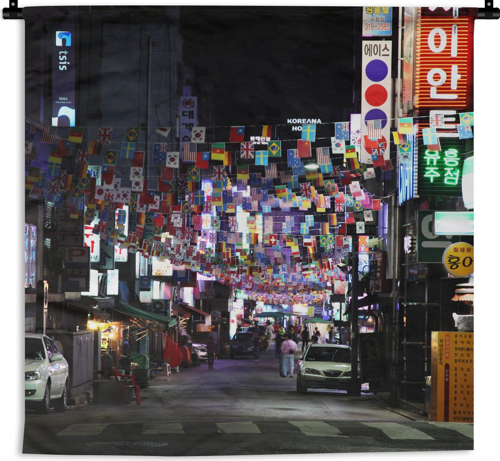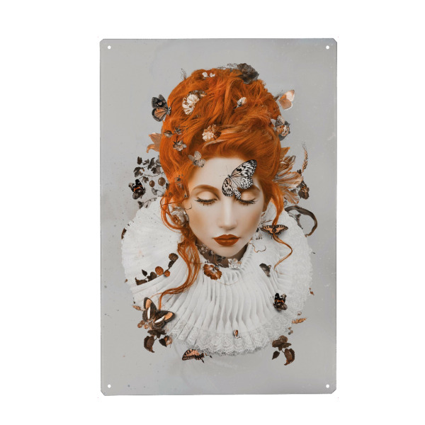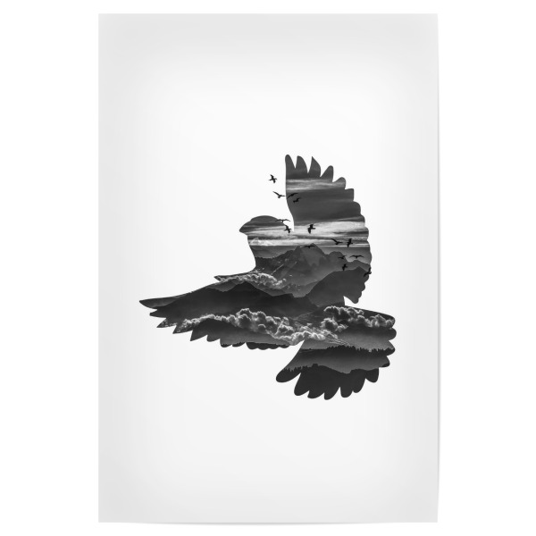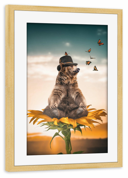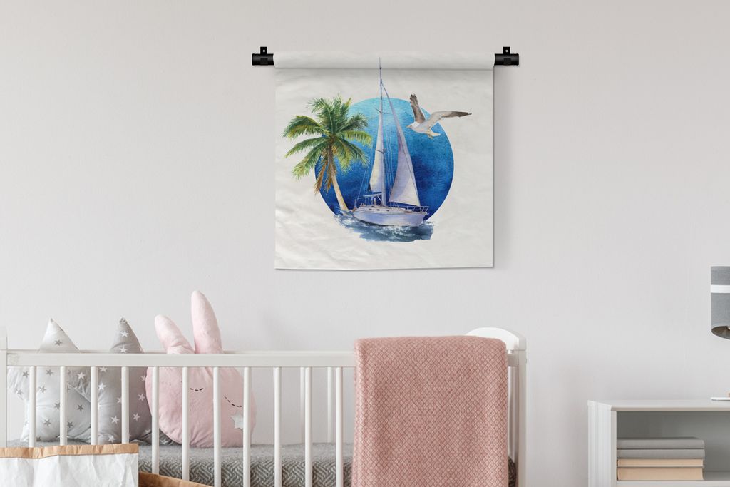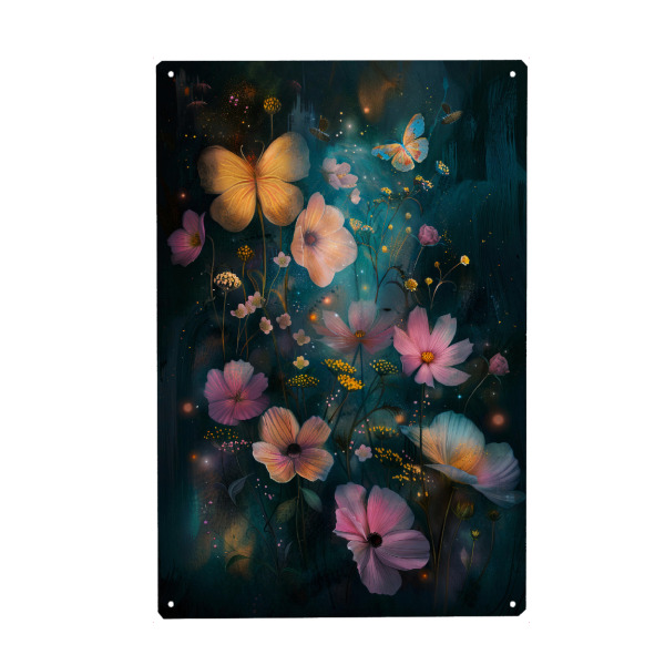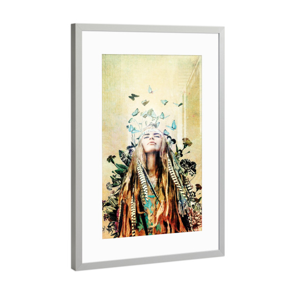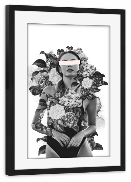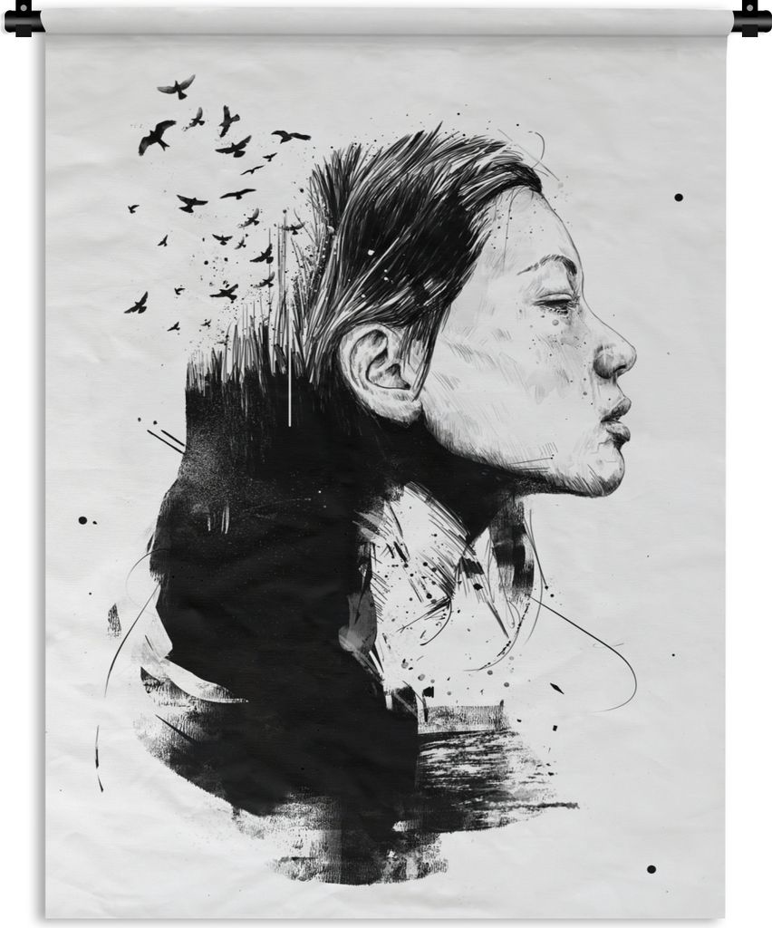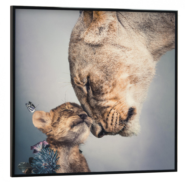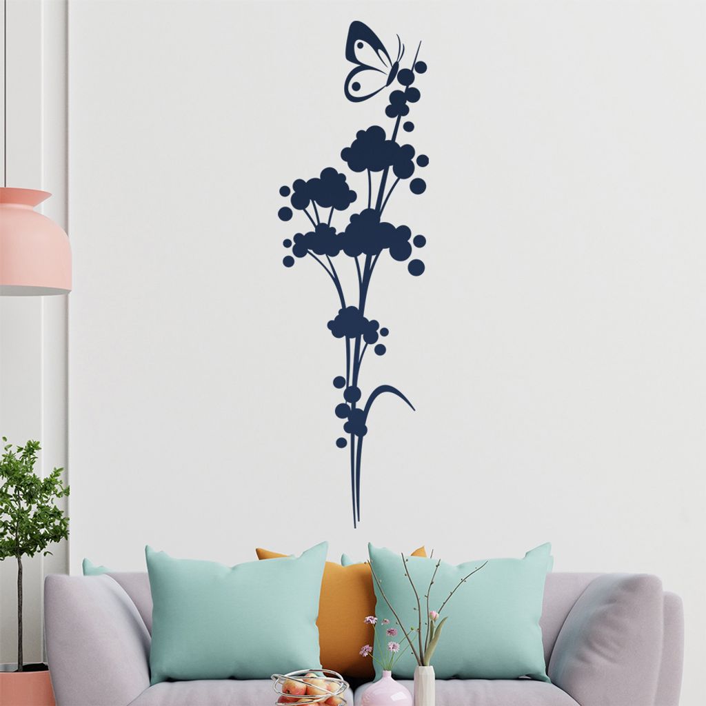 MuchoWow Textilposter Tiere - Elefant - Schmetterlinge - Schwarz - Weiß 90x90 cm mit schwarzem Rahmen - Magnetisches