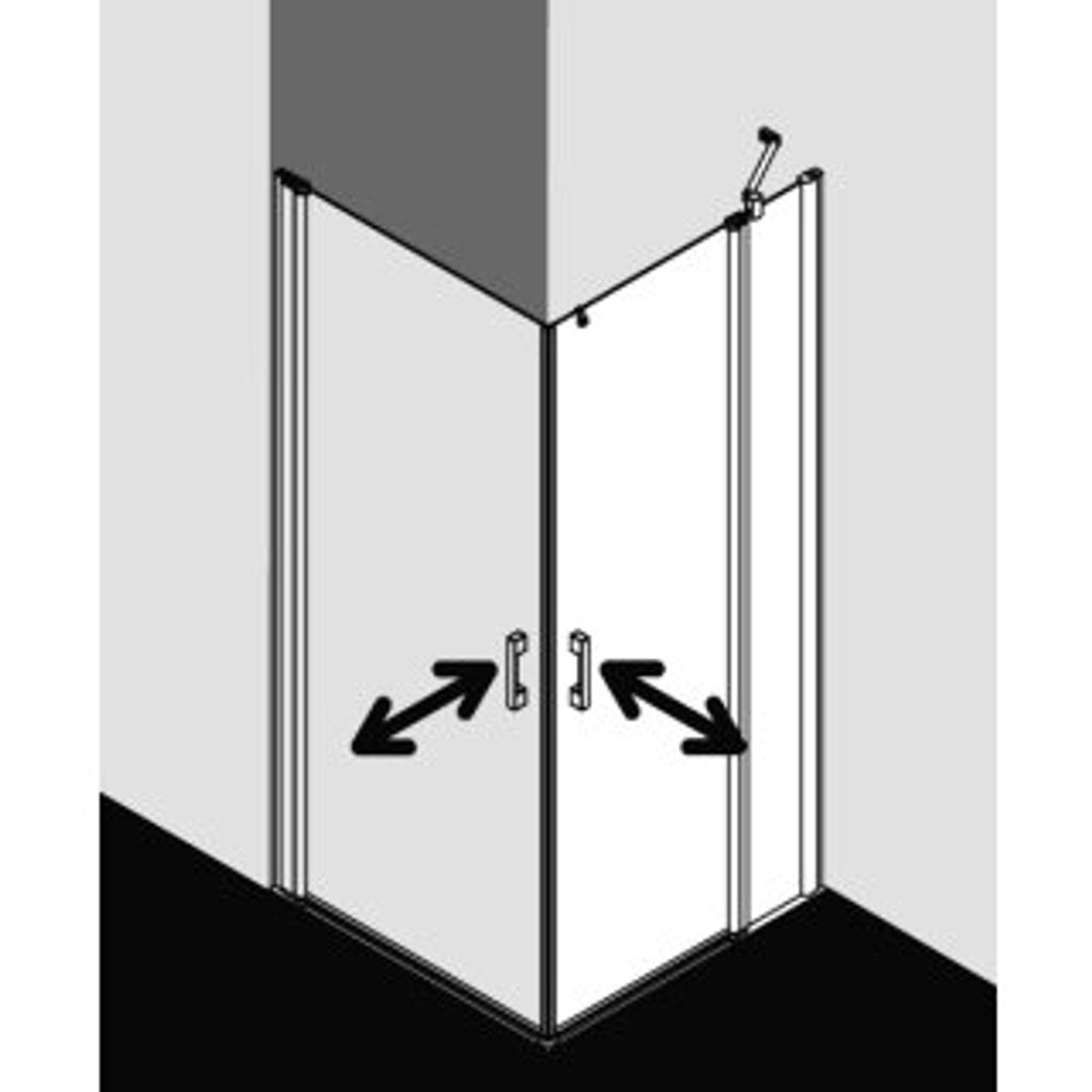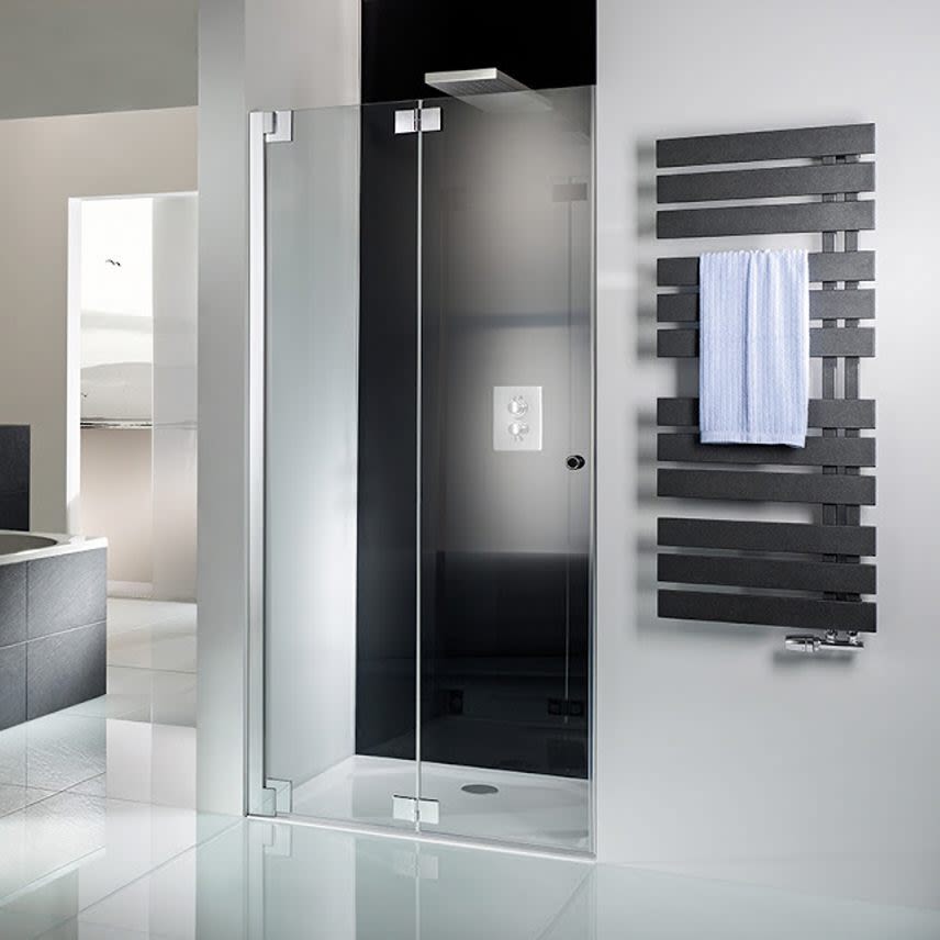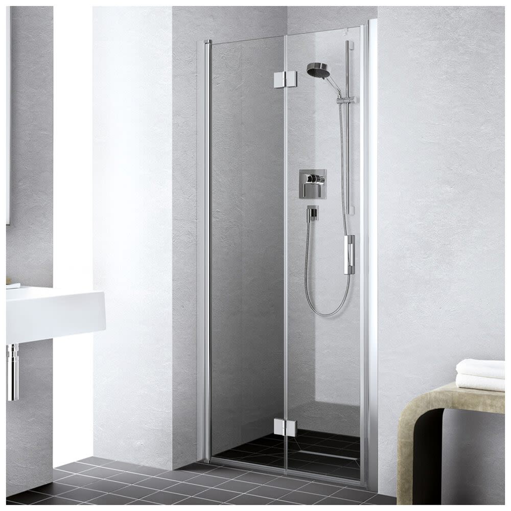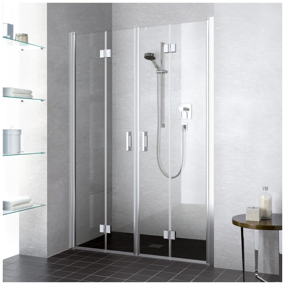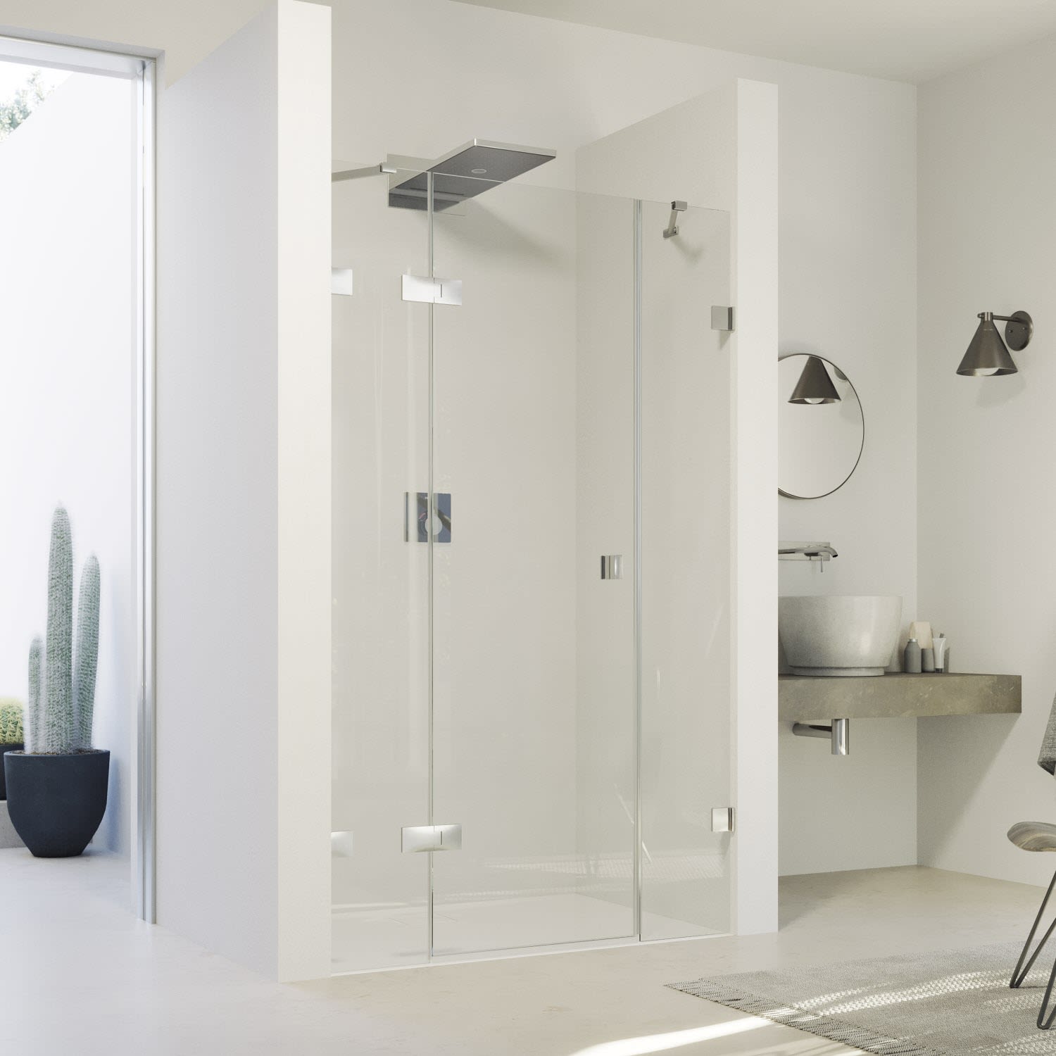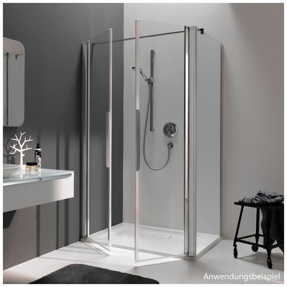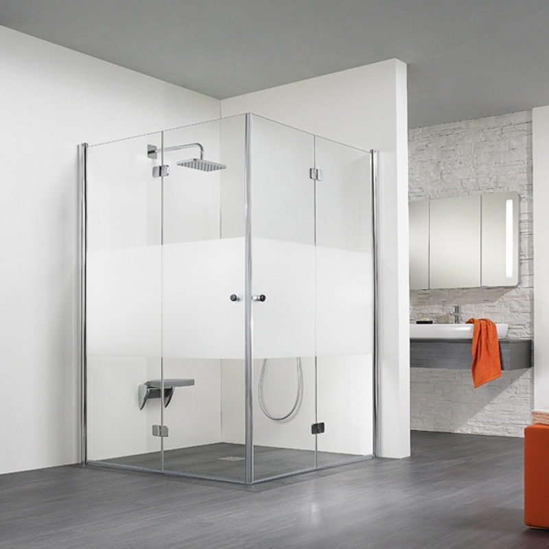 HSK teilgerahmte Drehfalttür pendelbar „Exklusiv 2.0“ für Seitenwand Glas Nebel, Profile Chromoptik (Alu Hochglanz poliert), Scharniere Premium