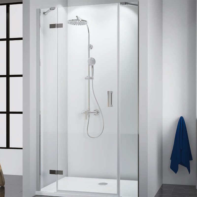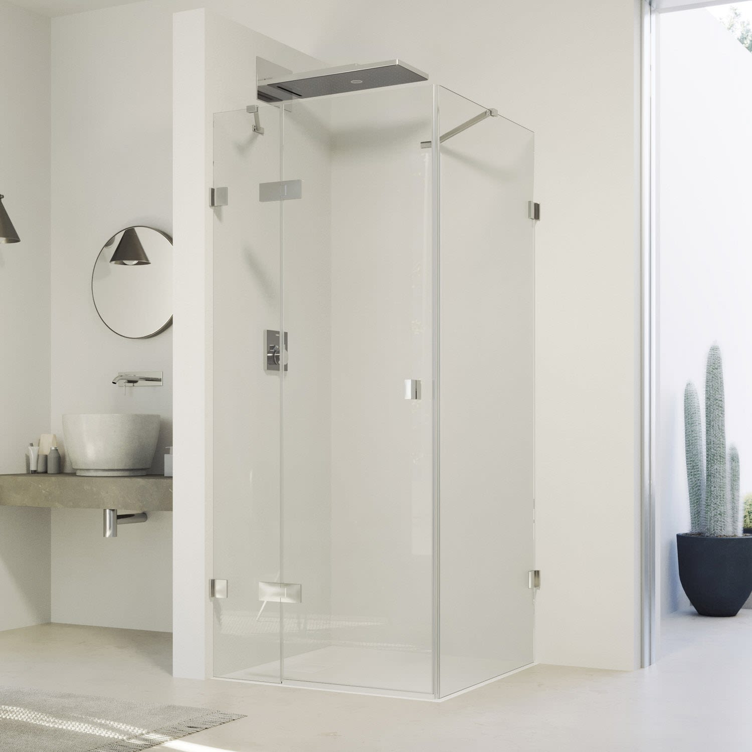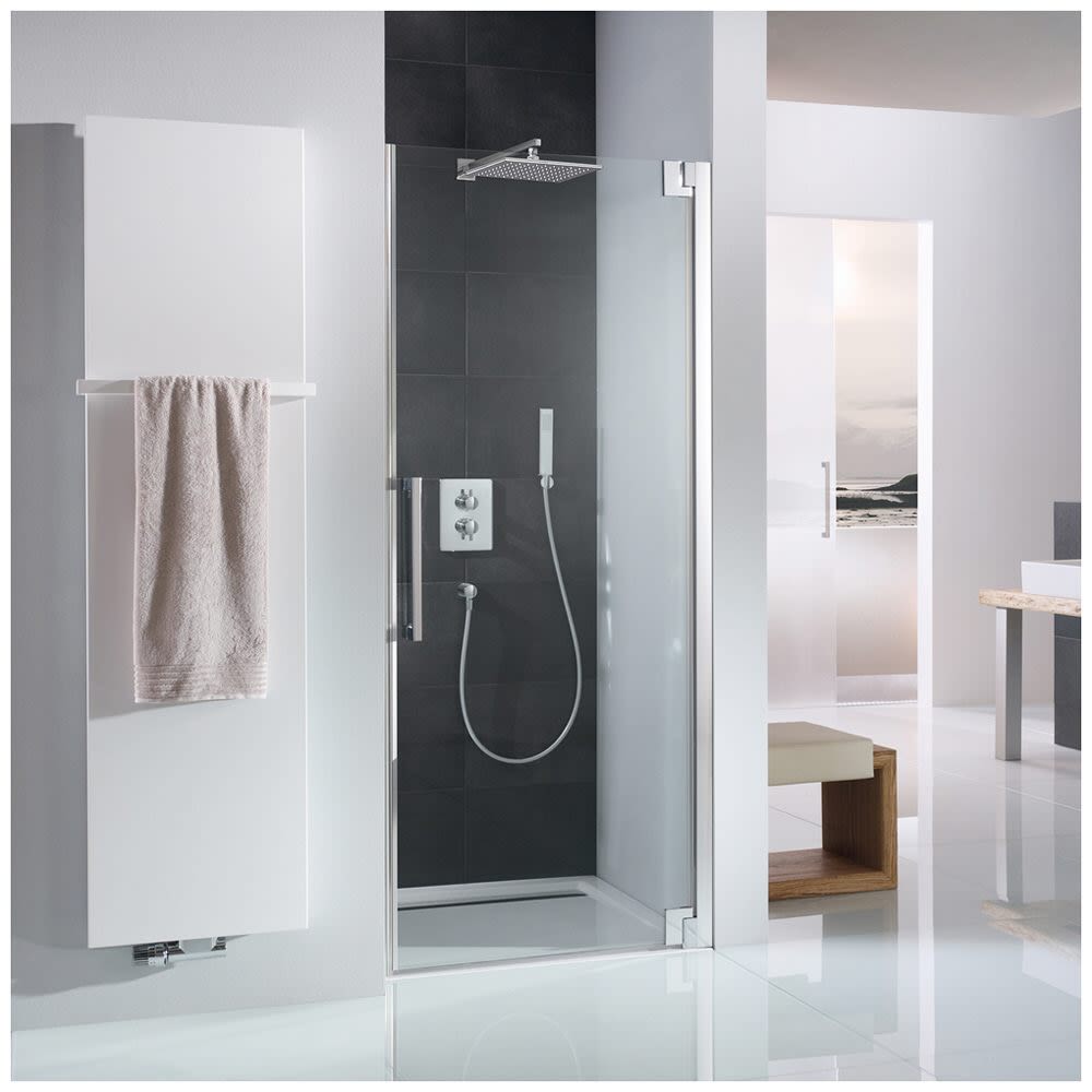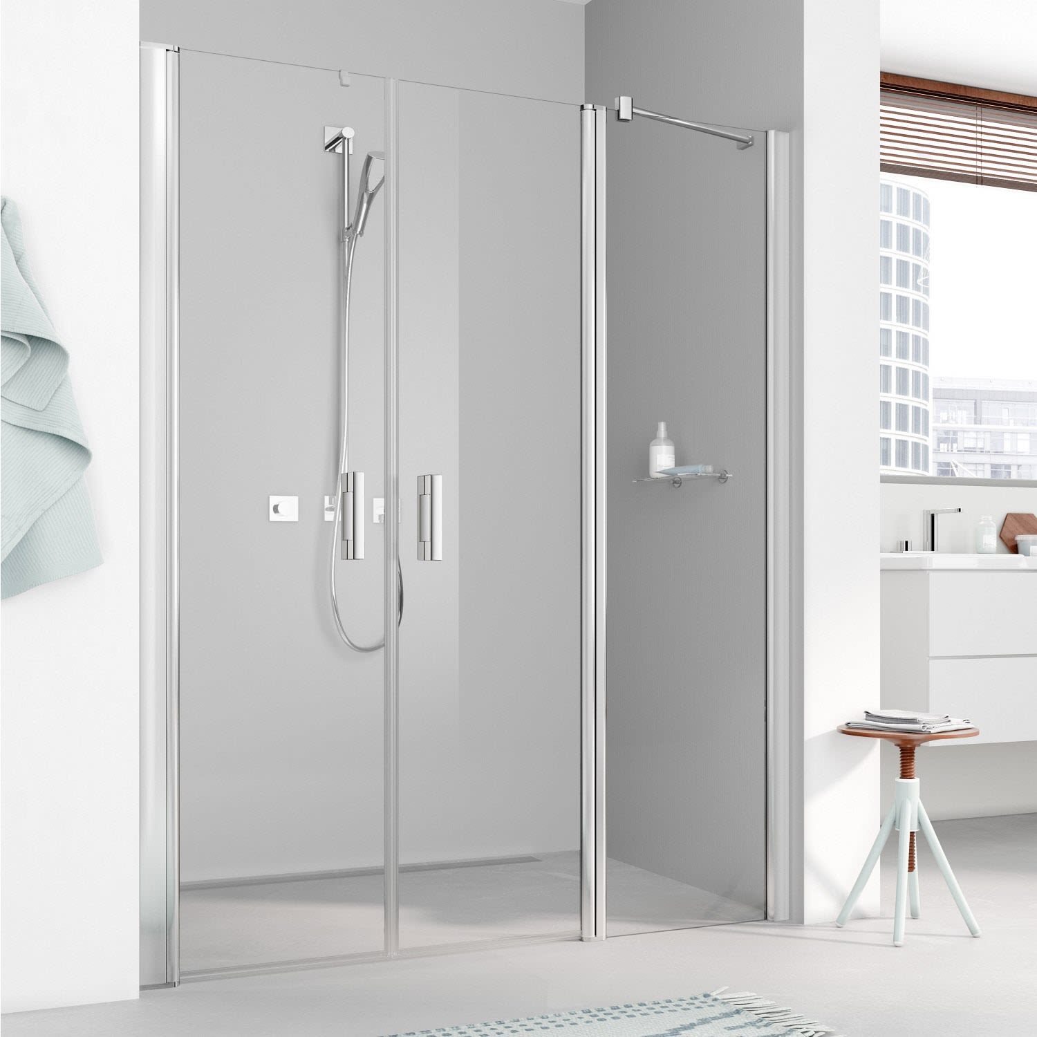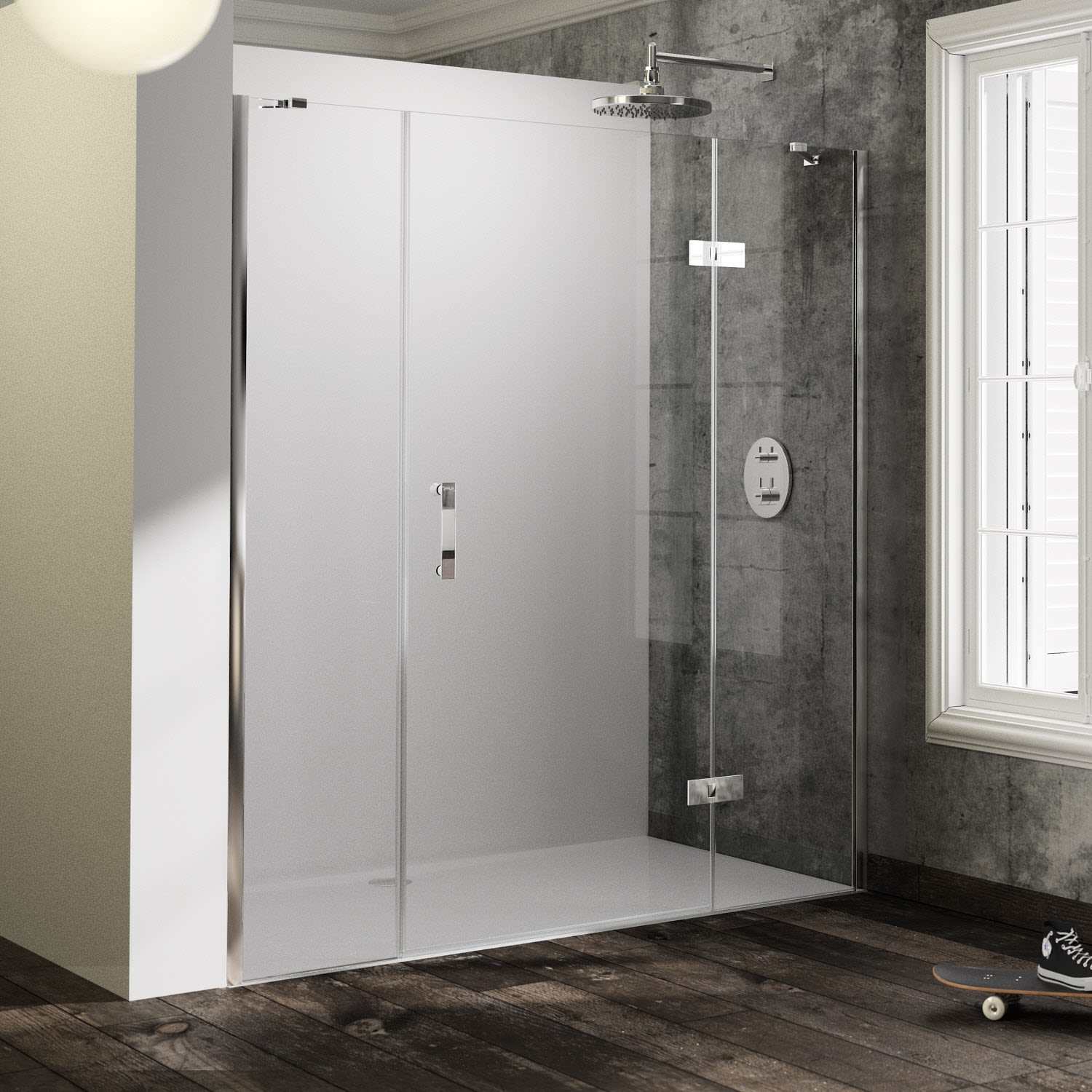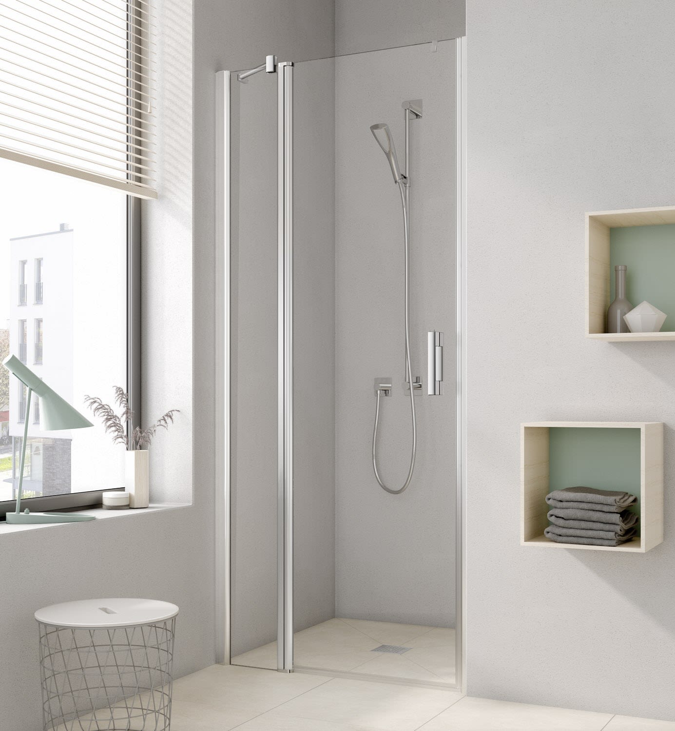 HSK teilgerahmte Drehfalttür pendelbar „Exklusiv 2.0“ für Seitenwand Glas Nebel, Profile Chromoptik (Alu Hochglanz poliert), Scharniere Premium