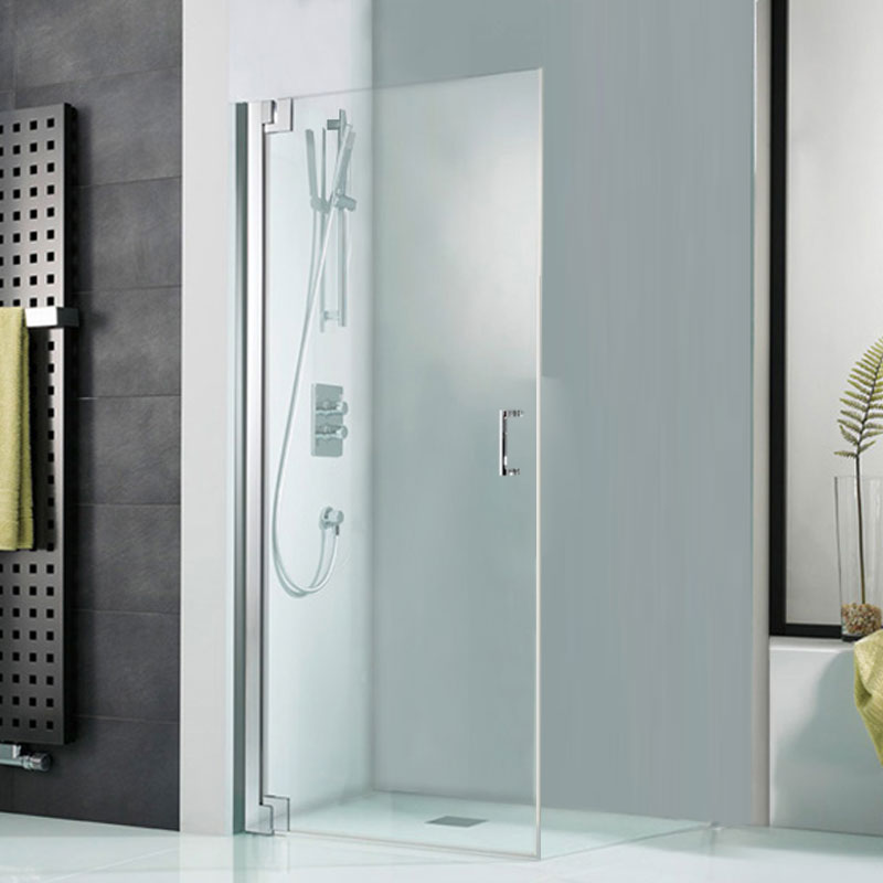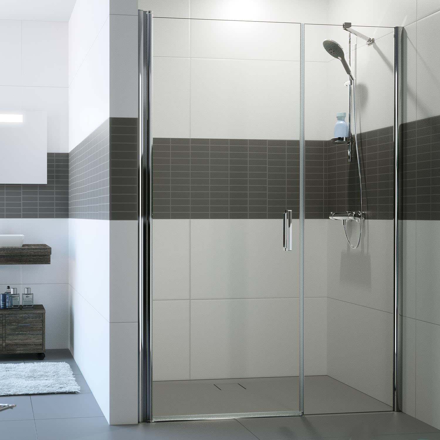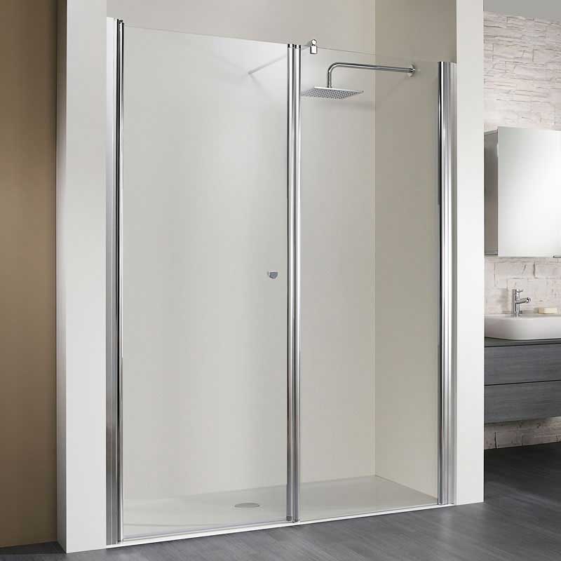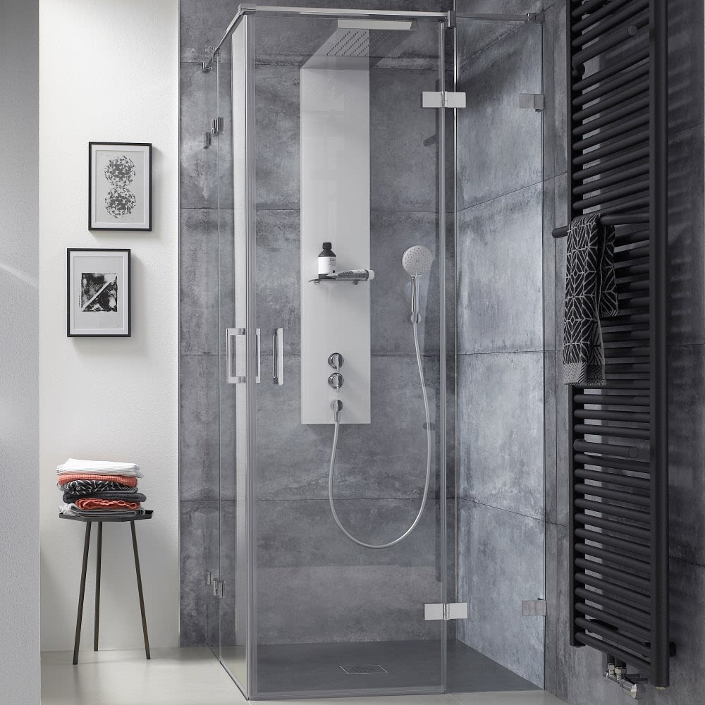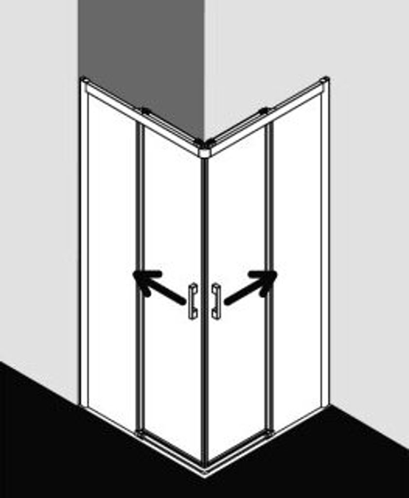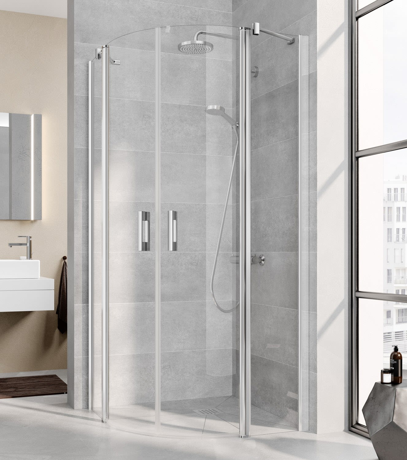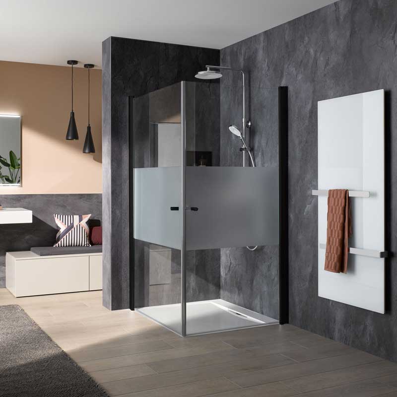 HSK teilgerahmte Drehfalttür pendelbar „Exklusiv 2.0“ für Seitenwand Glas Nebel, Profile Chromoptik (Alu Hochglanz poliert), Scharniere Premium