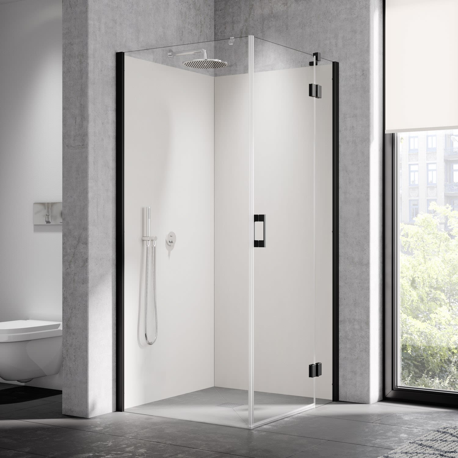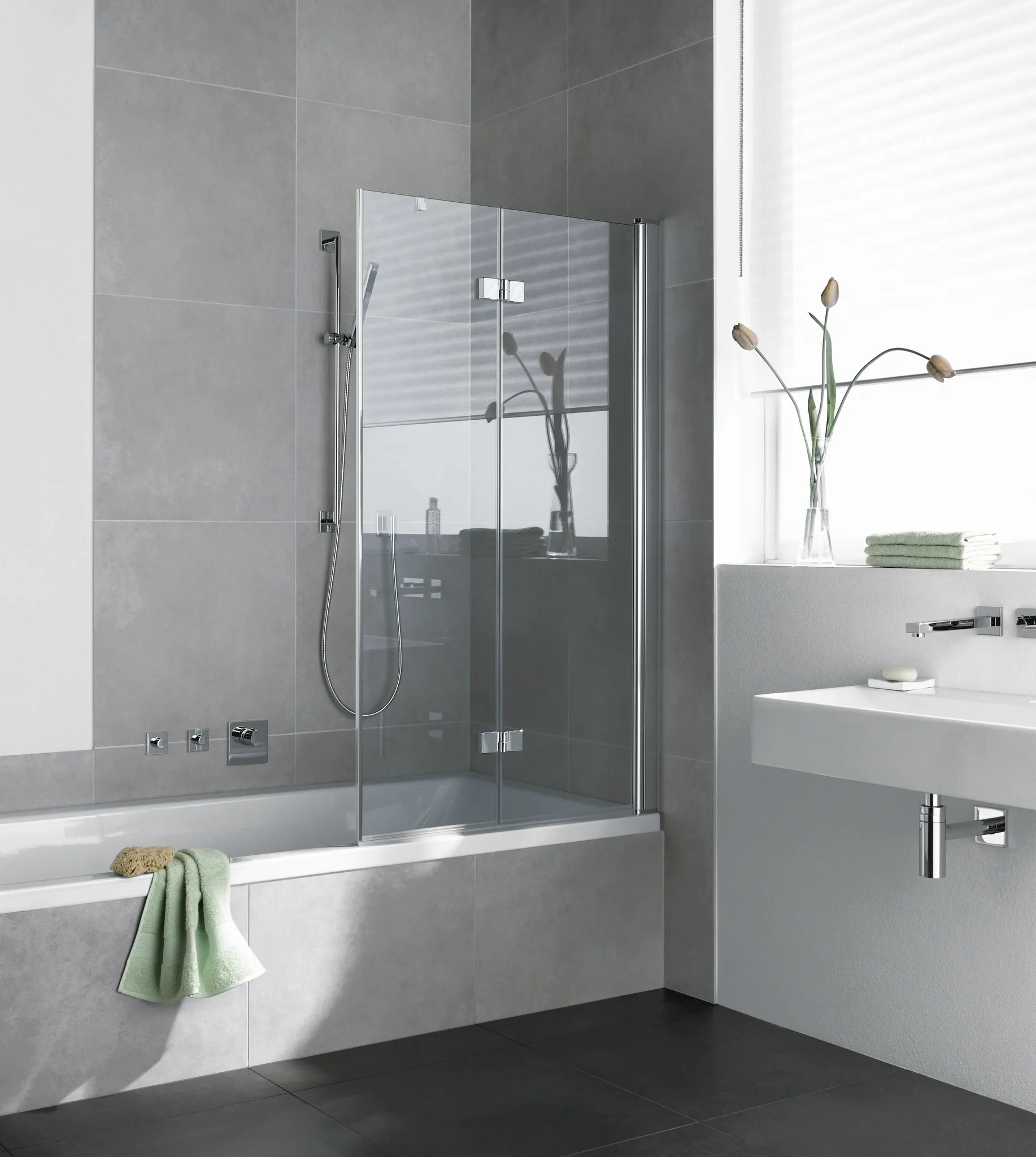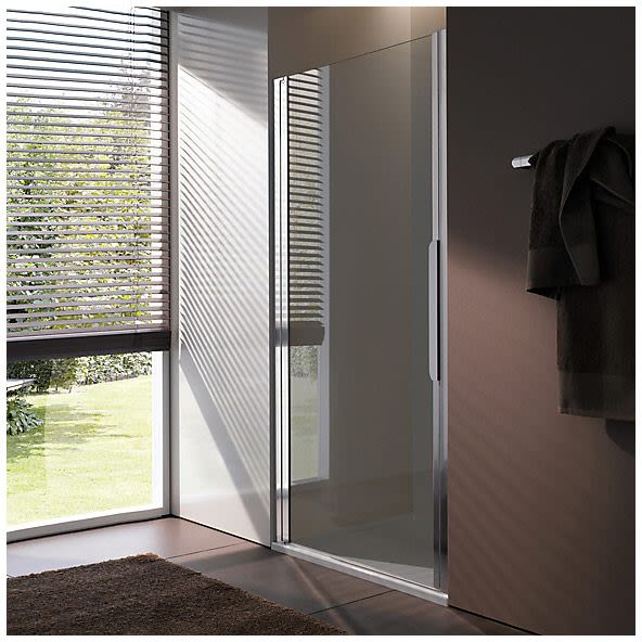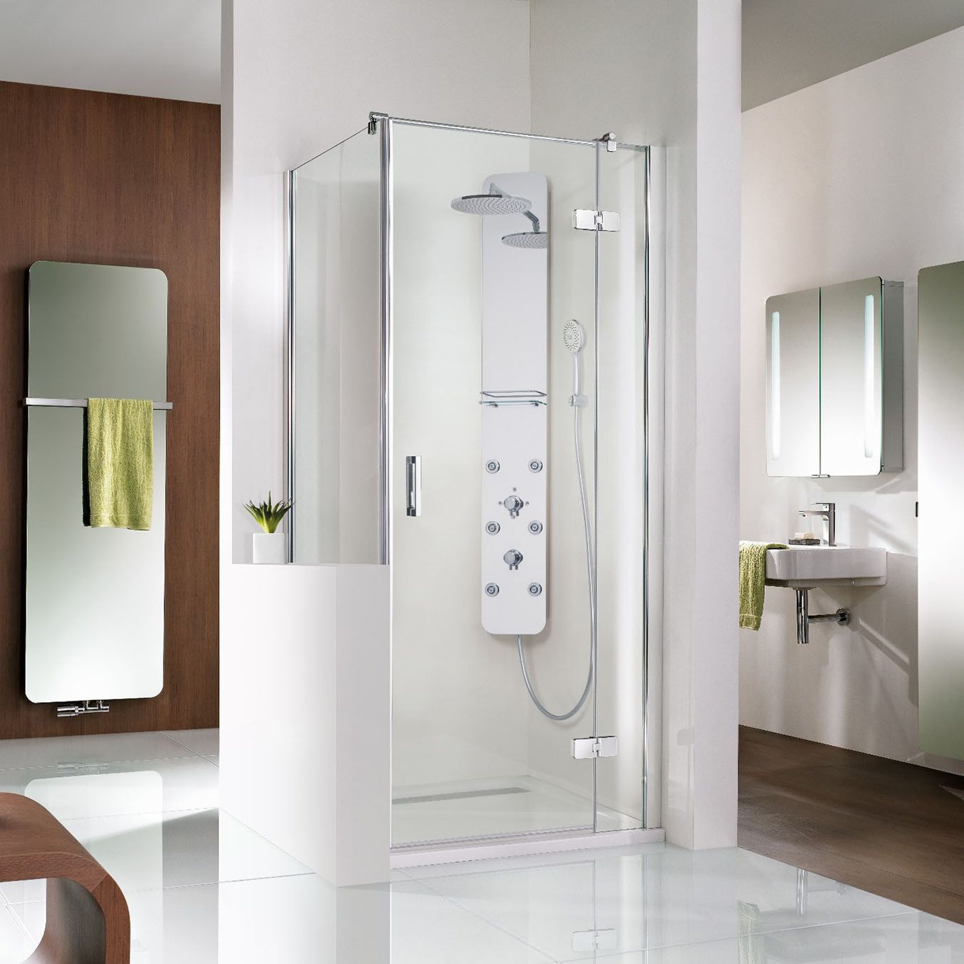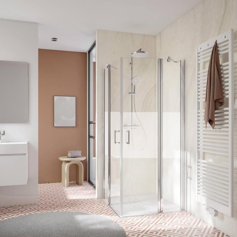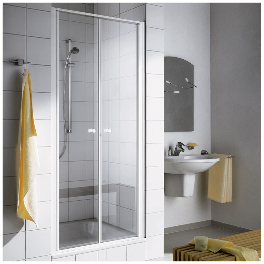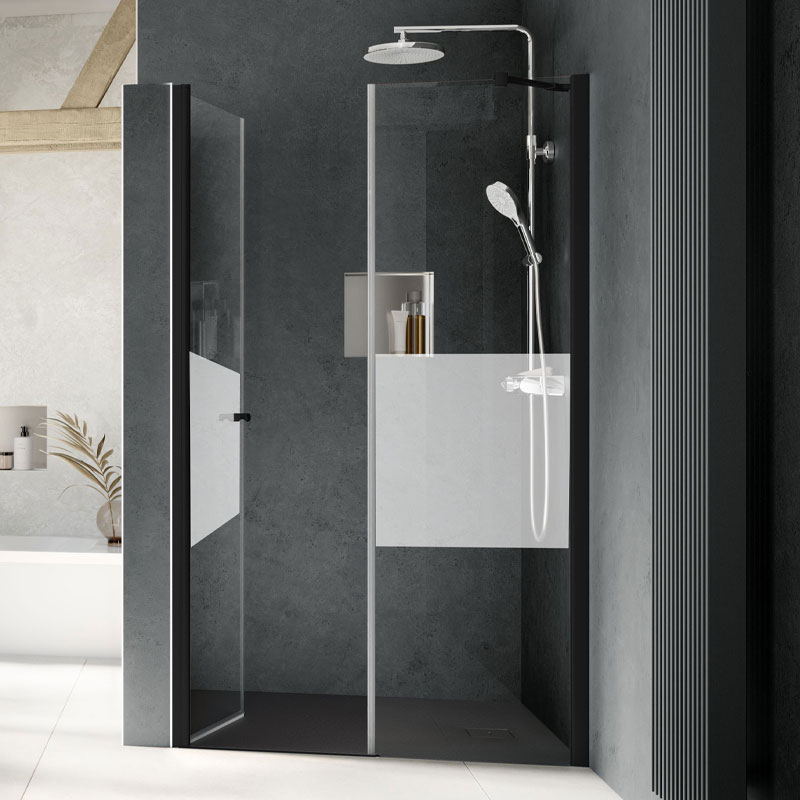 HSK teilgerahmte Drehfalttür pendelbar „Exklusiv 2.0“ für Seitenwand Glas Nebel, Profile Chromoptik (Alu Hochglanz poliert), Scharniere Premium