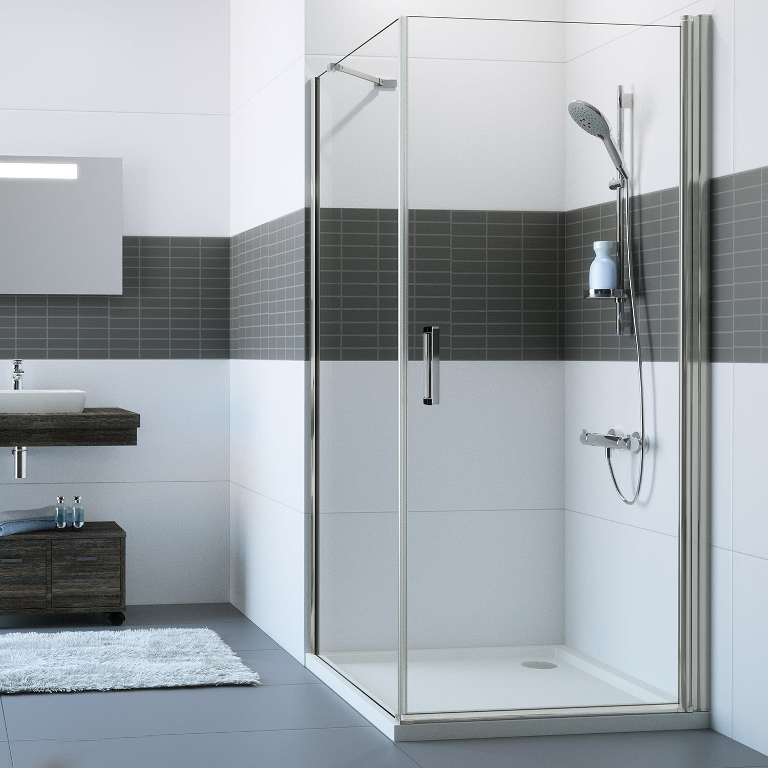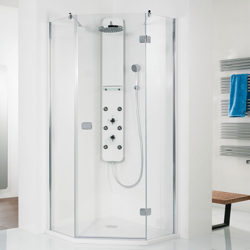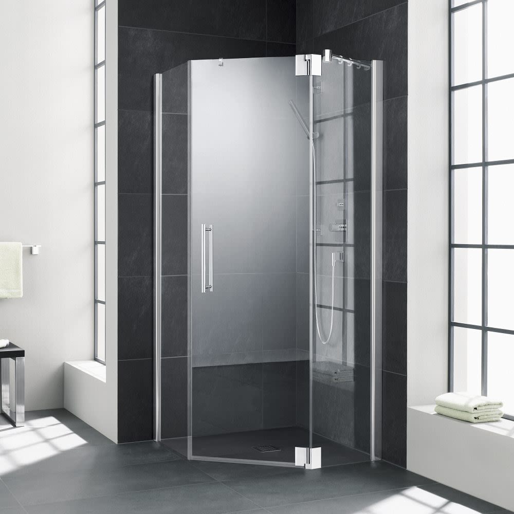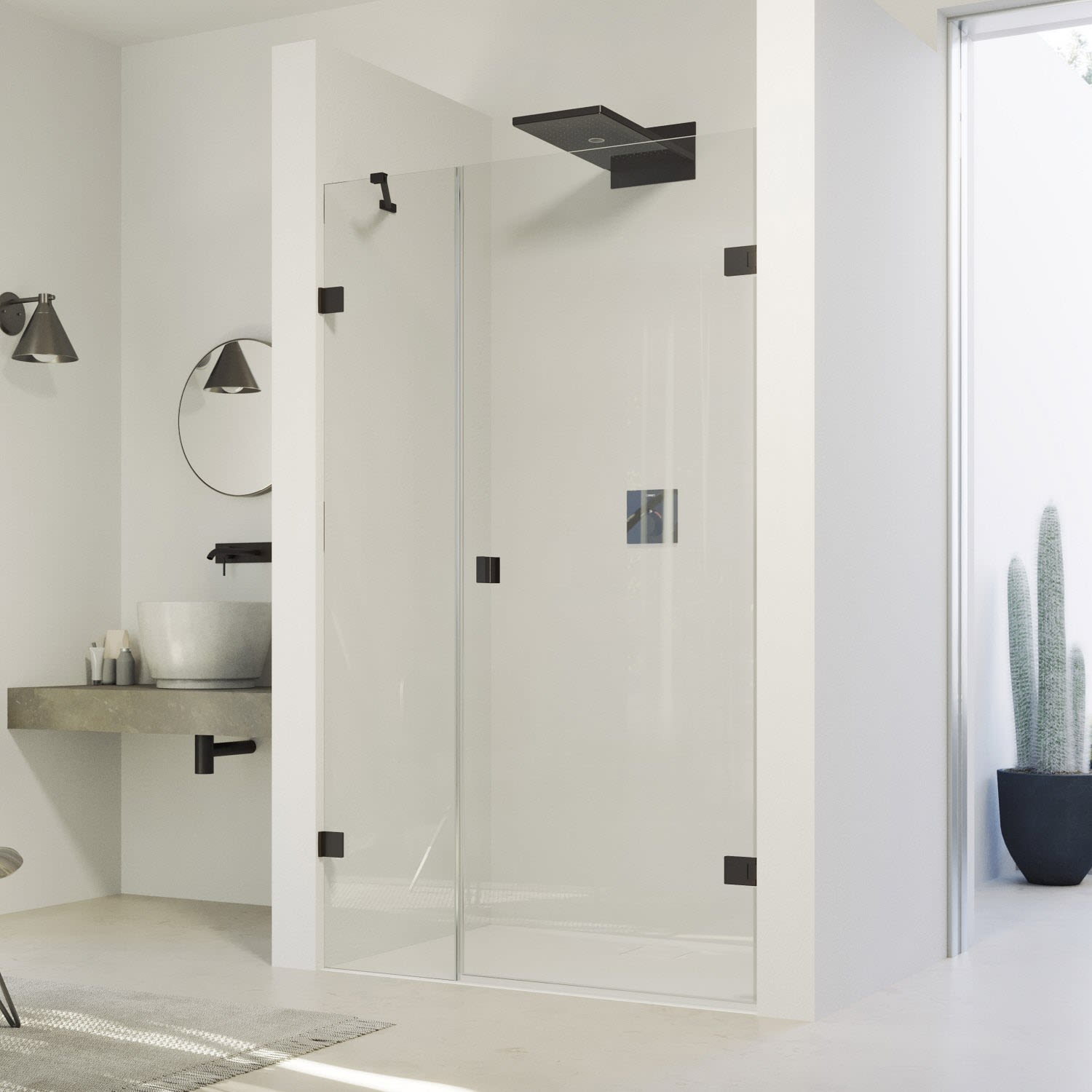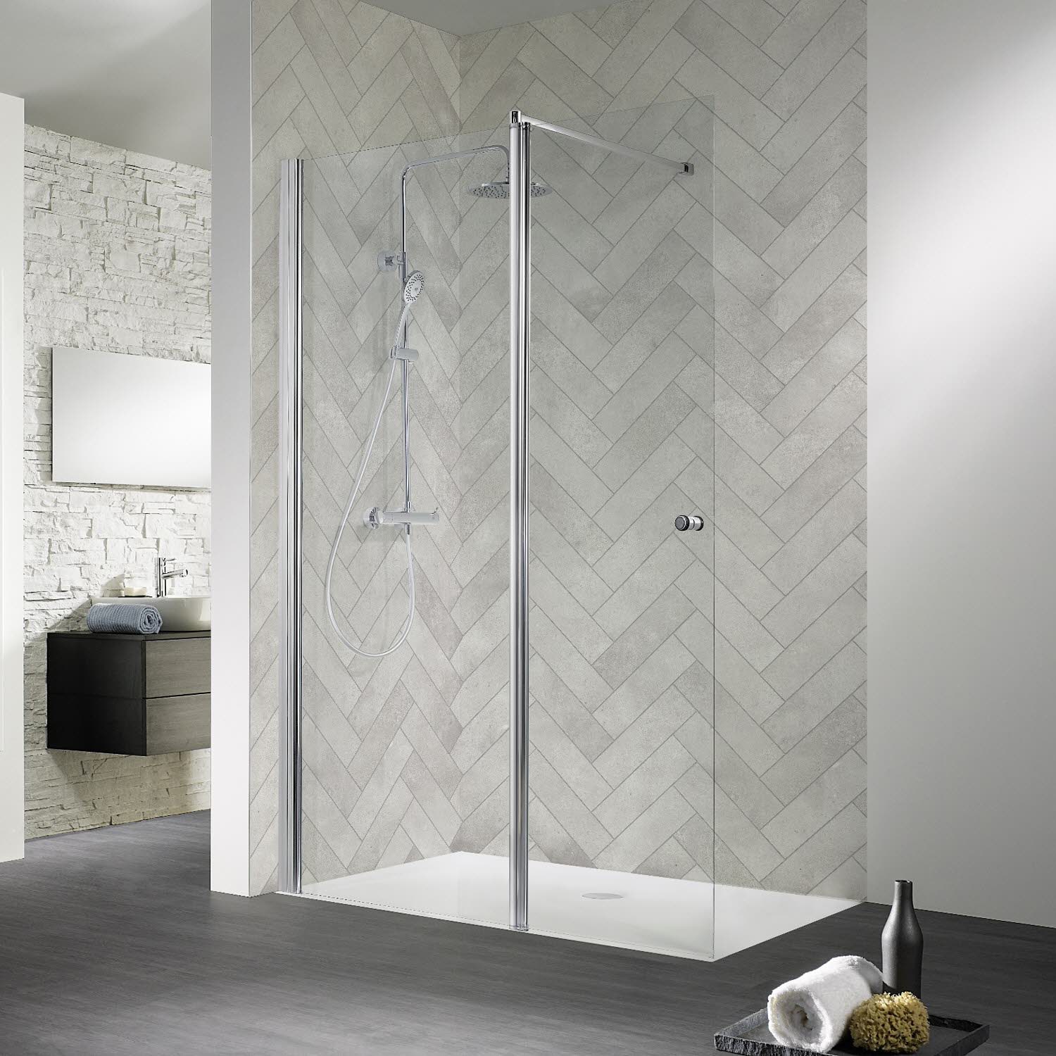 HSK teilgerahmte Drehfalttür pendelbar „Exklusiv 2.0“ für Seitenwand Glas Nebel, Profile Chromoptik (Alu Hochglanz poliert), Scharniere Premium