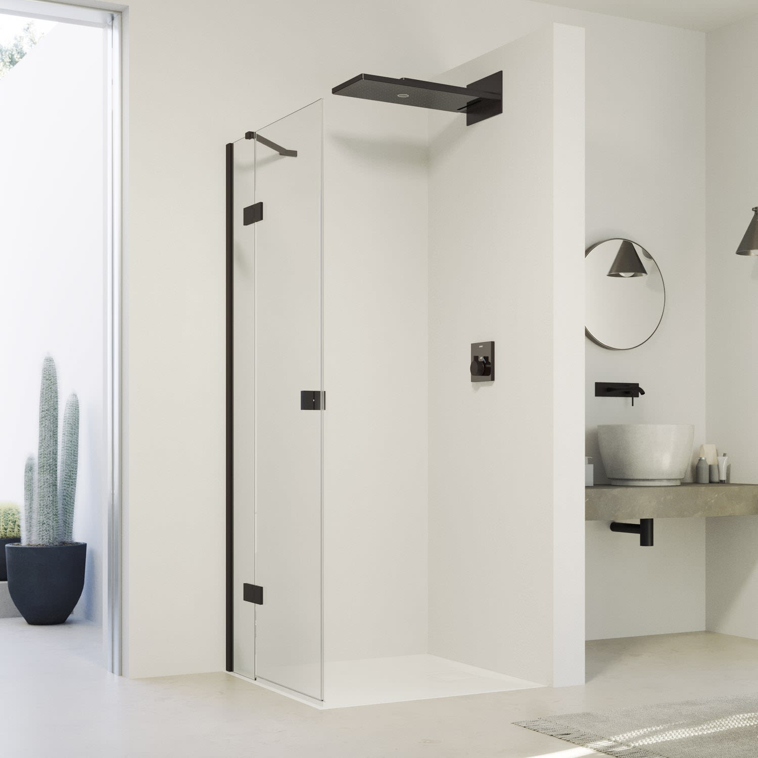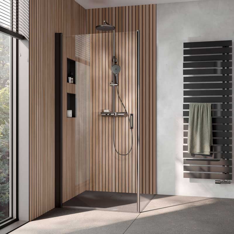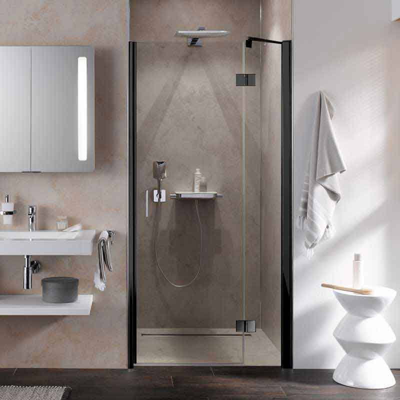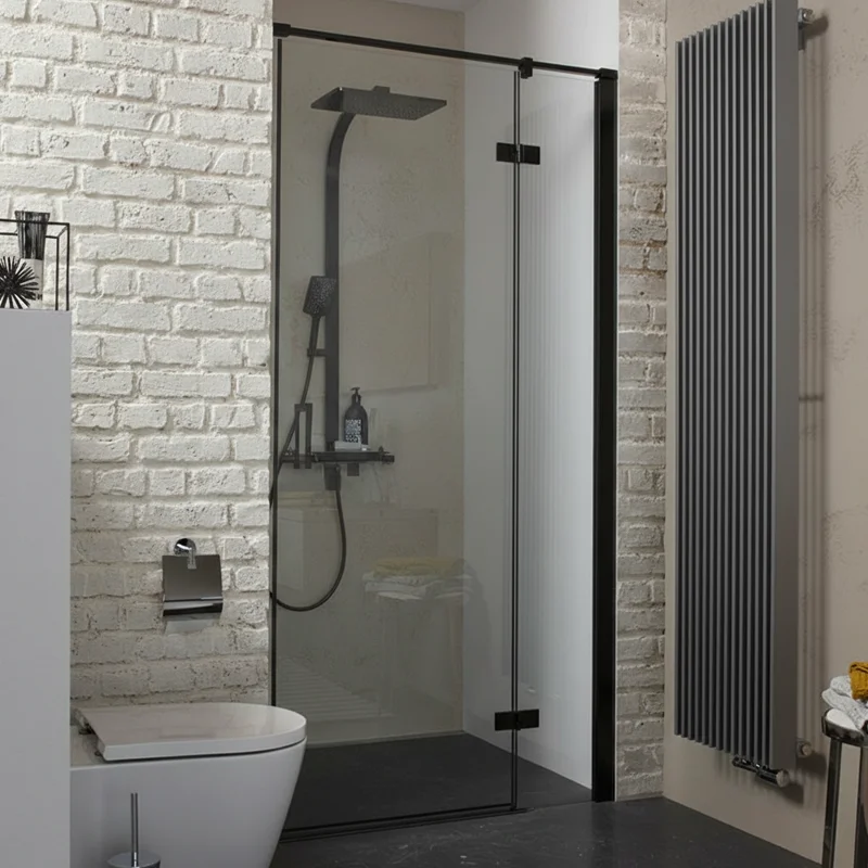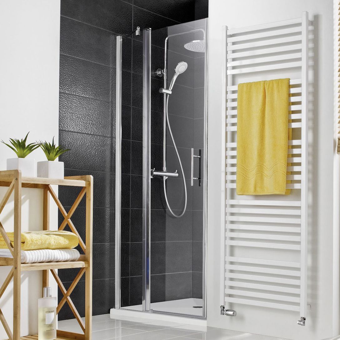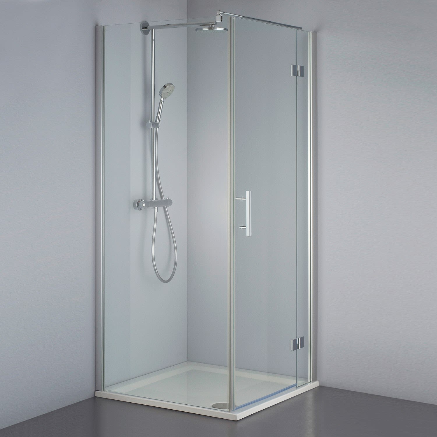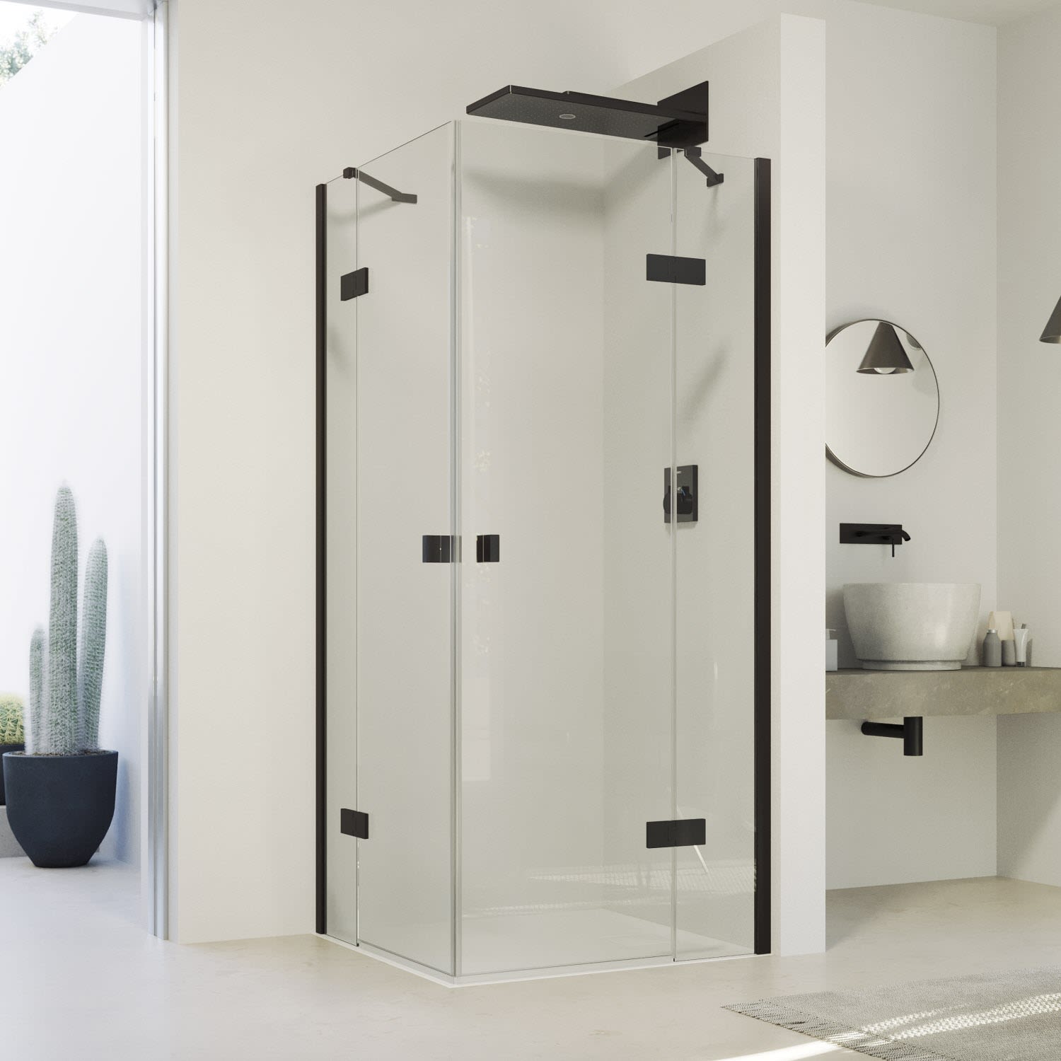 HSK teilgerahmte Drehfalttür pendelbar „Exklusiv 2.0“ für Seitenwand Glas Nebel, Profile Chromoptik (Alu Hochglanz poliert), Scharniere Premium