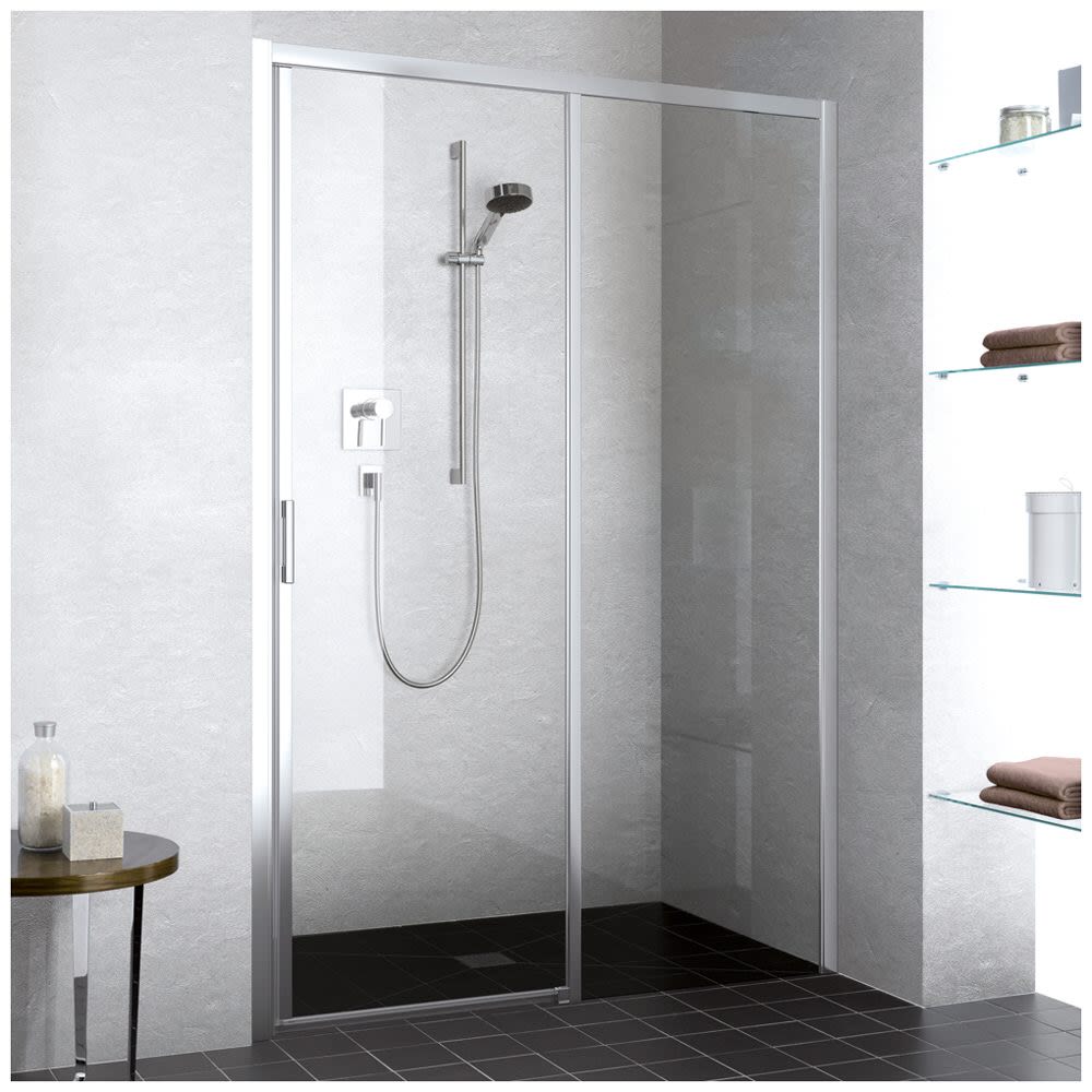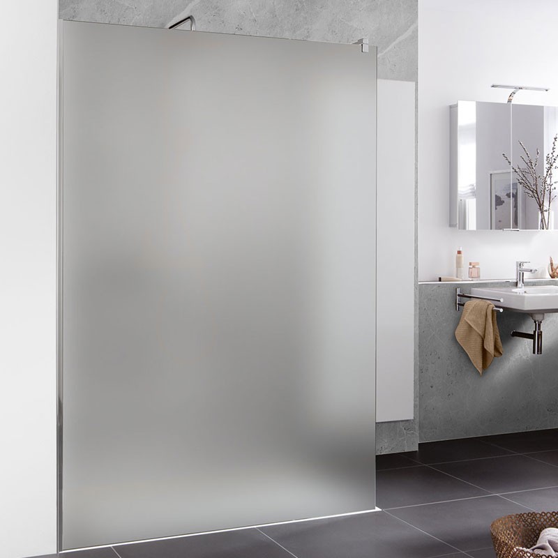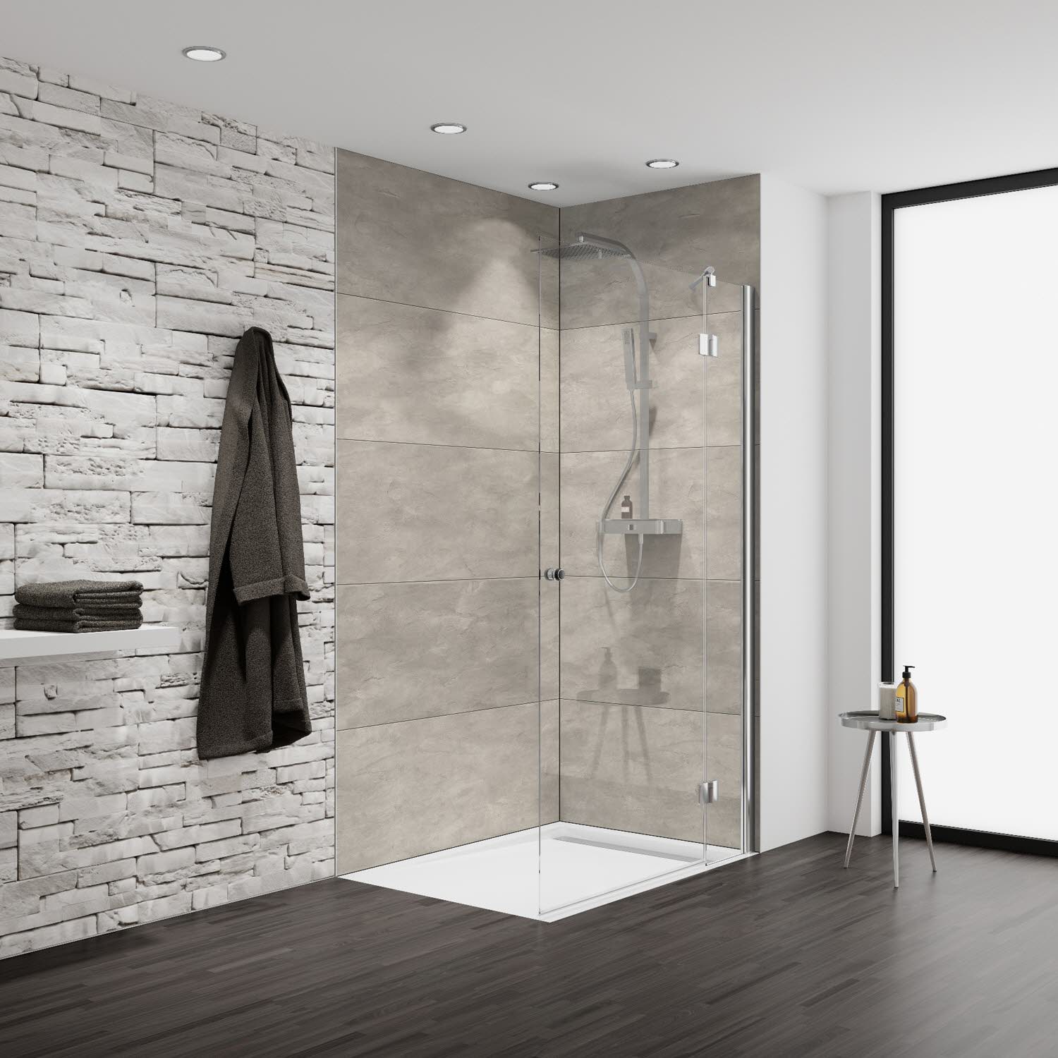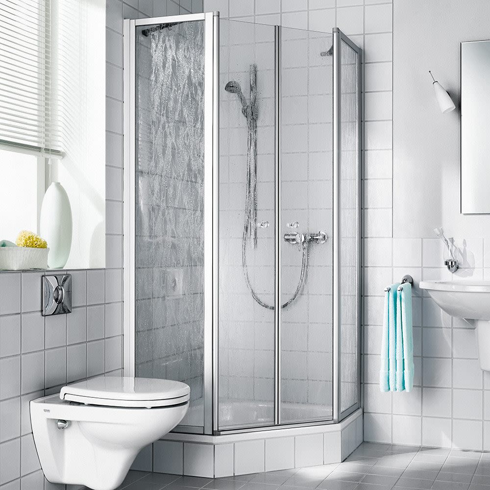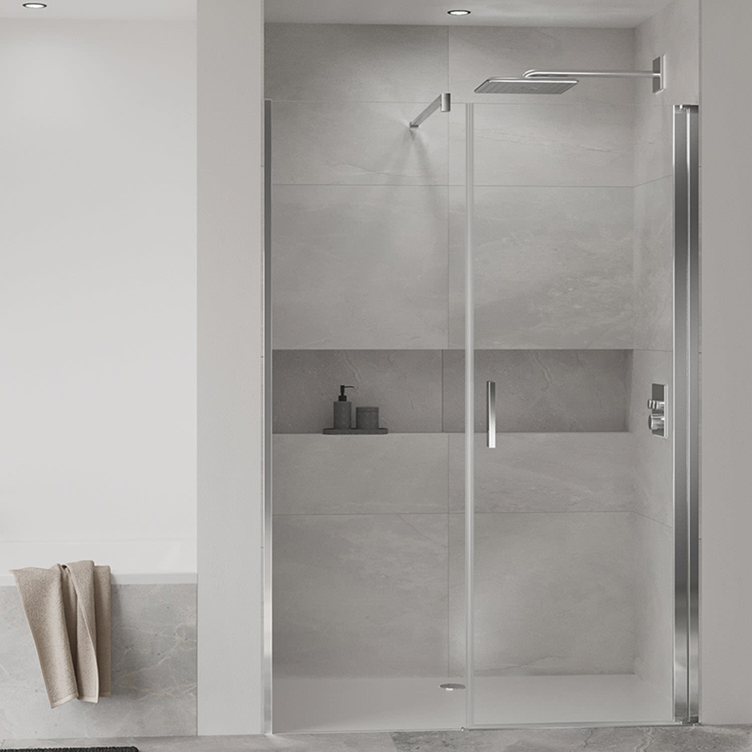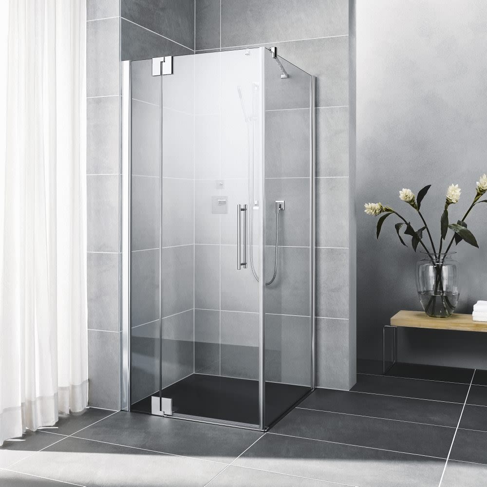 HSK teilgerahmte Drehfalttür pendelbar „Exklusiv 2.0“ für Seitenwand Glas Nebel, Profile Chromoptik (Alu Hochglanz poliert), Scharniere Premium