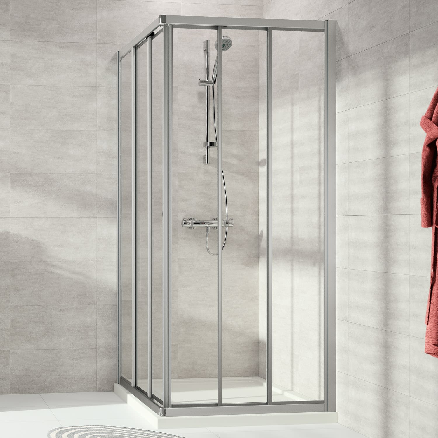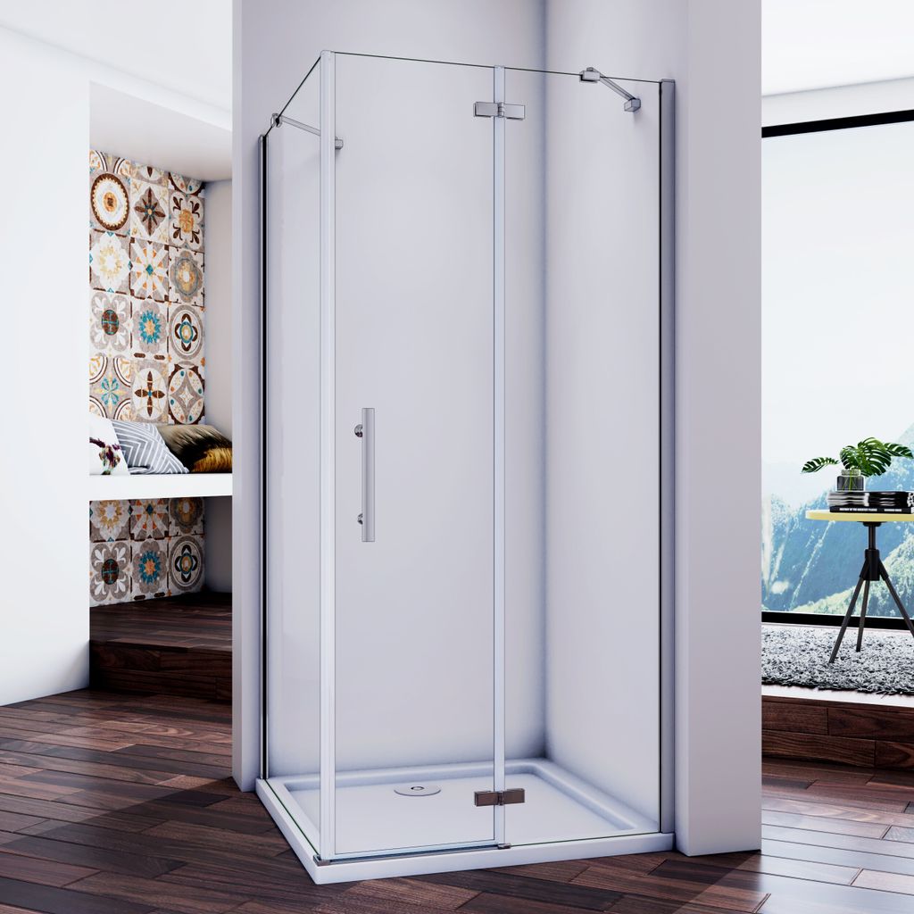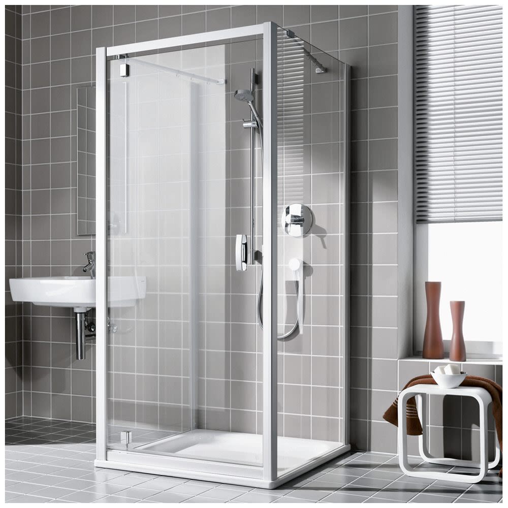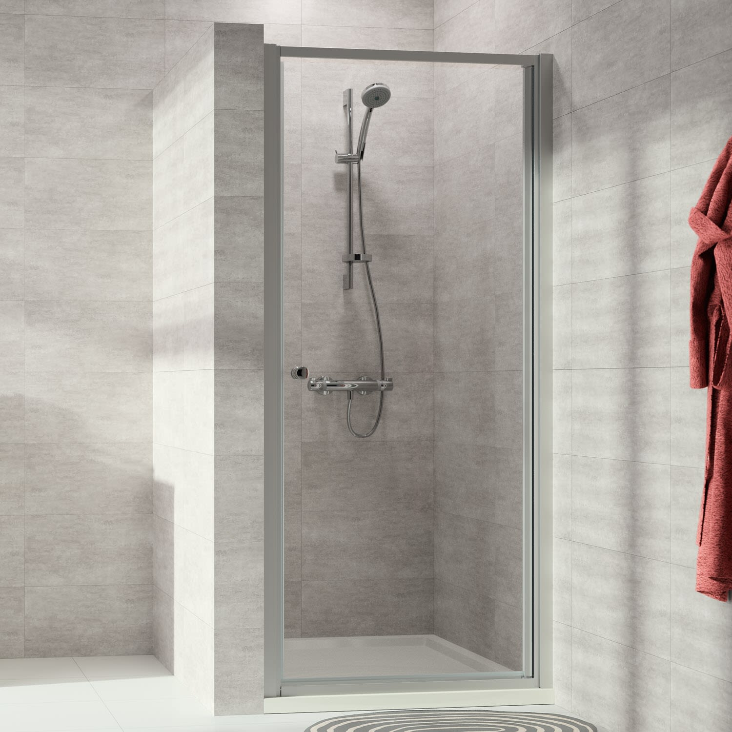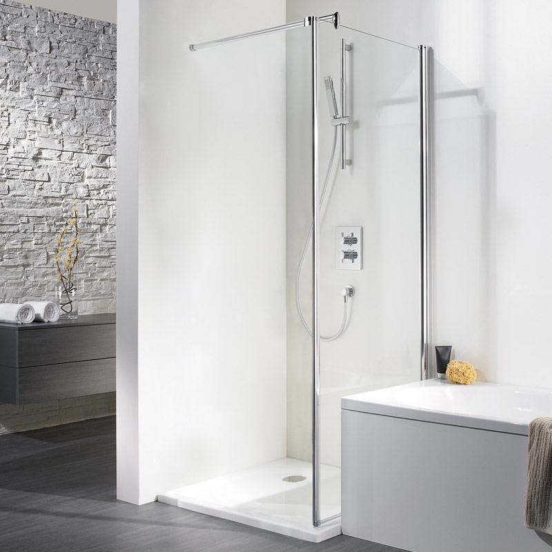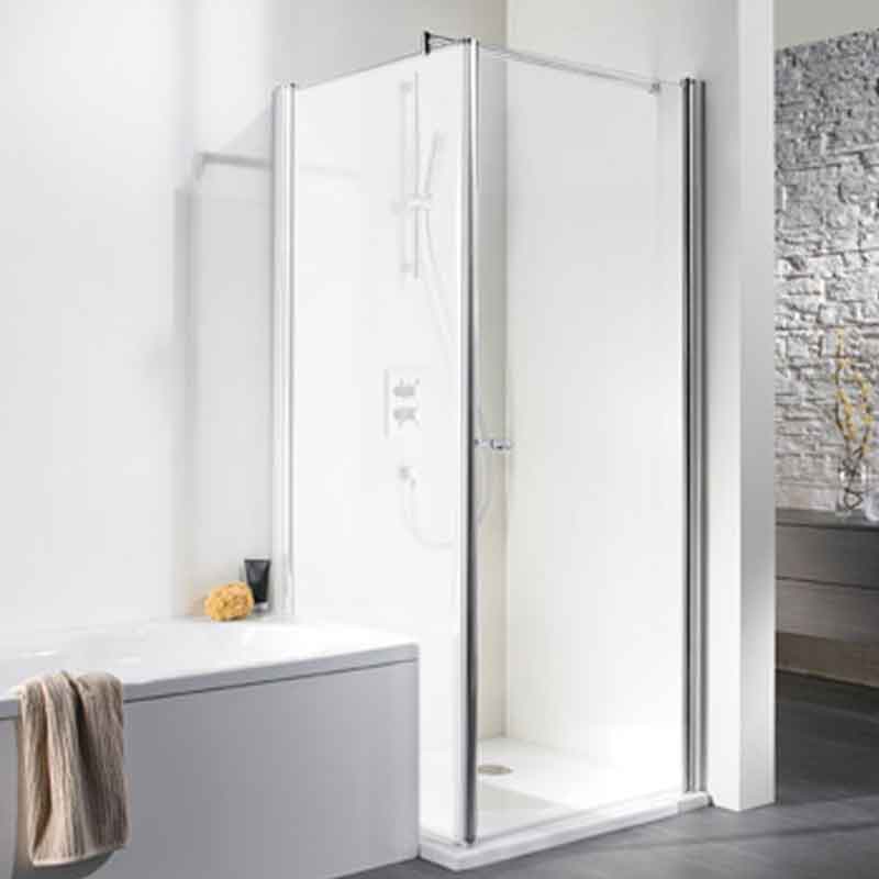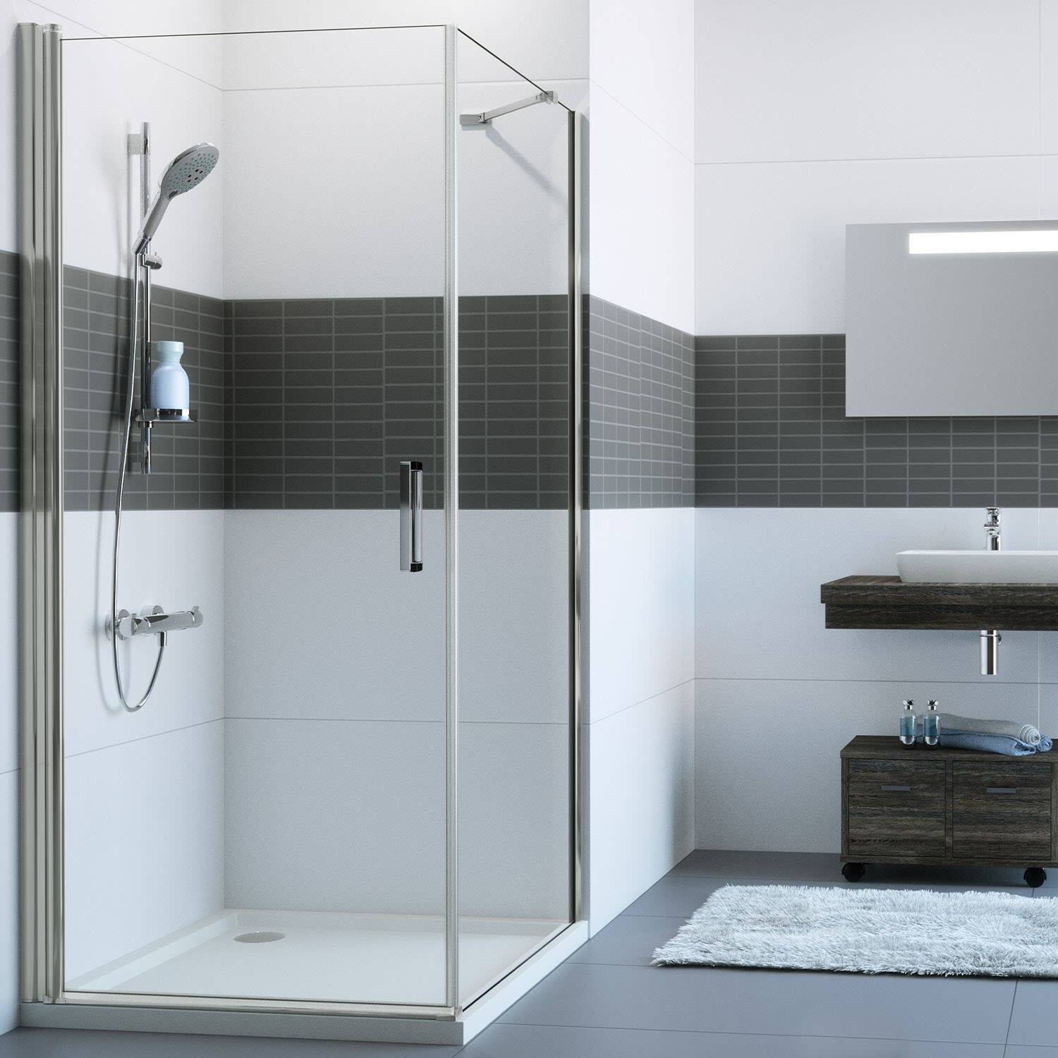 HSK teilgerahmte Drehfalttür pendelbar „Exklusiv 2.0“ für Seitenwand Glas Nebel, Profile Chromoptik (Alu Hochglanz poliert), Scharniere Premium