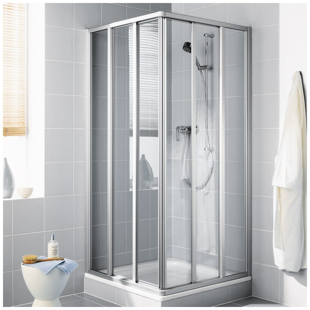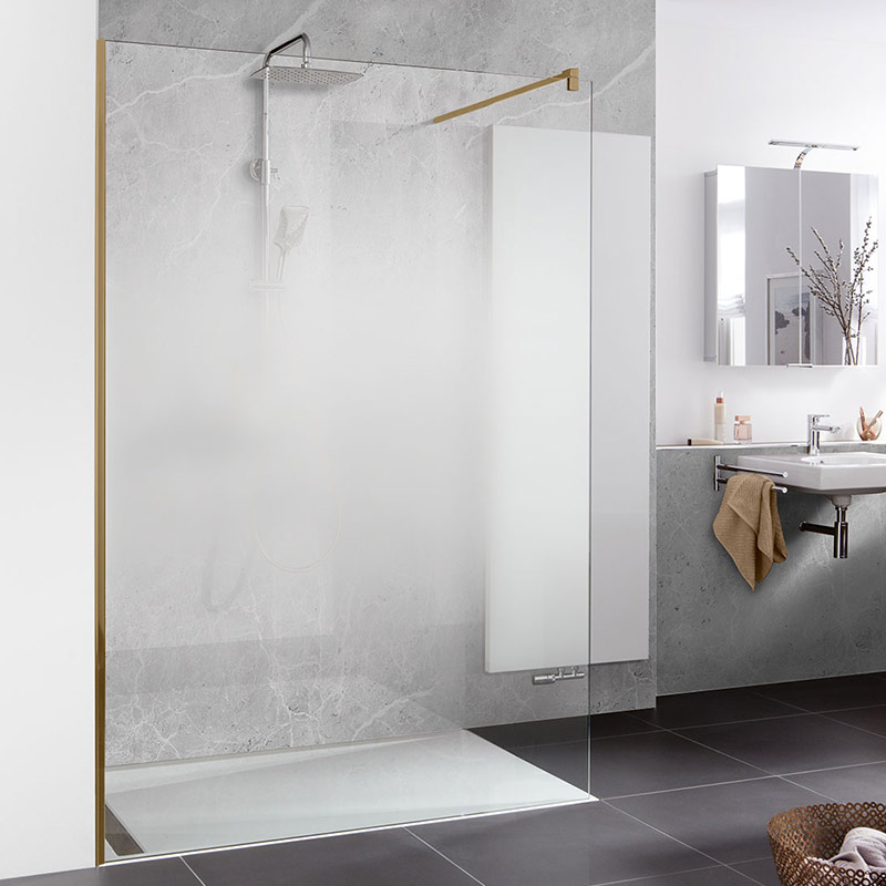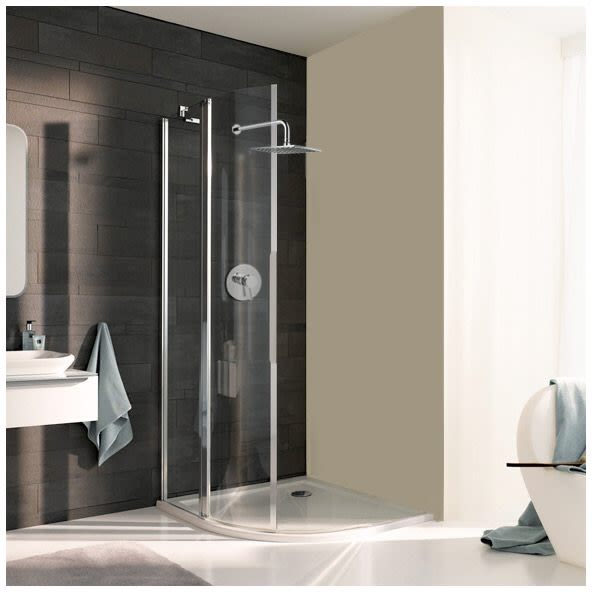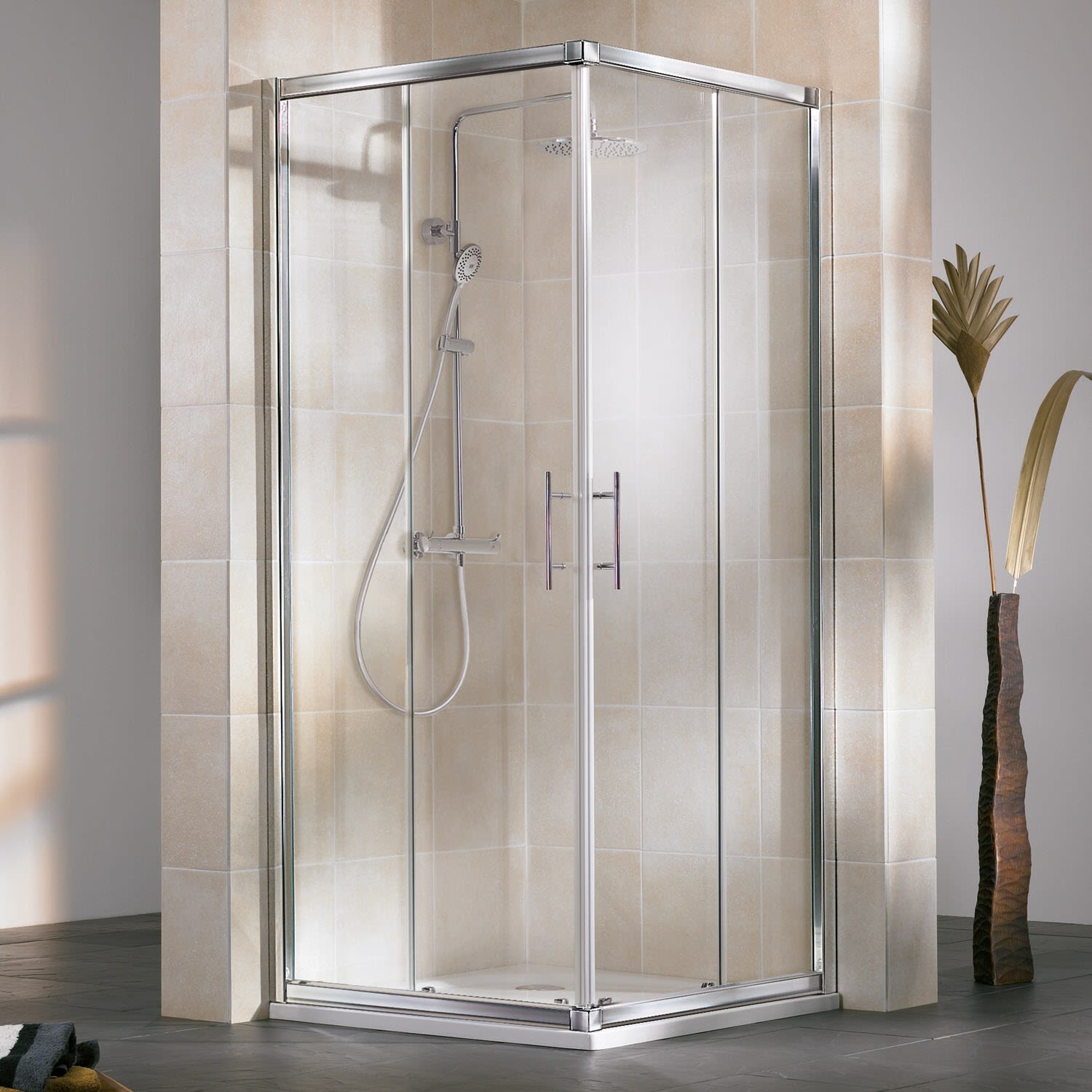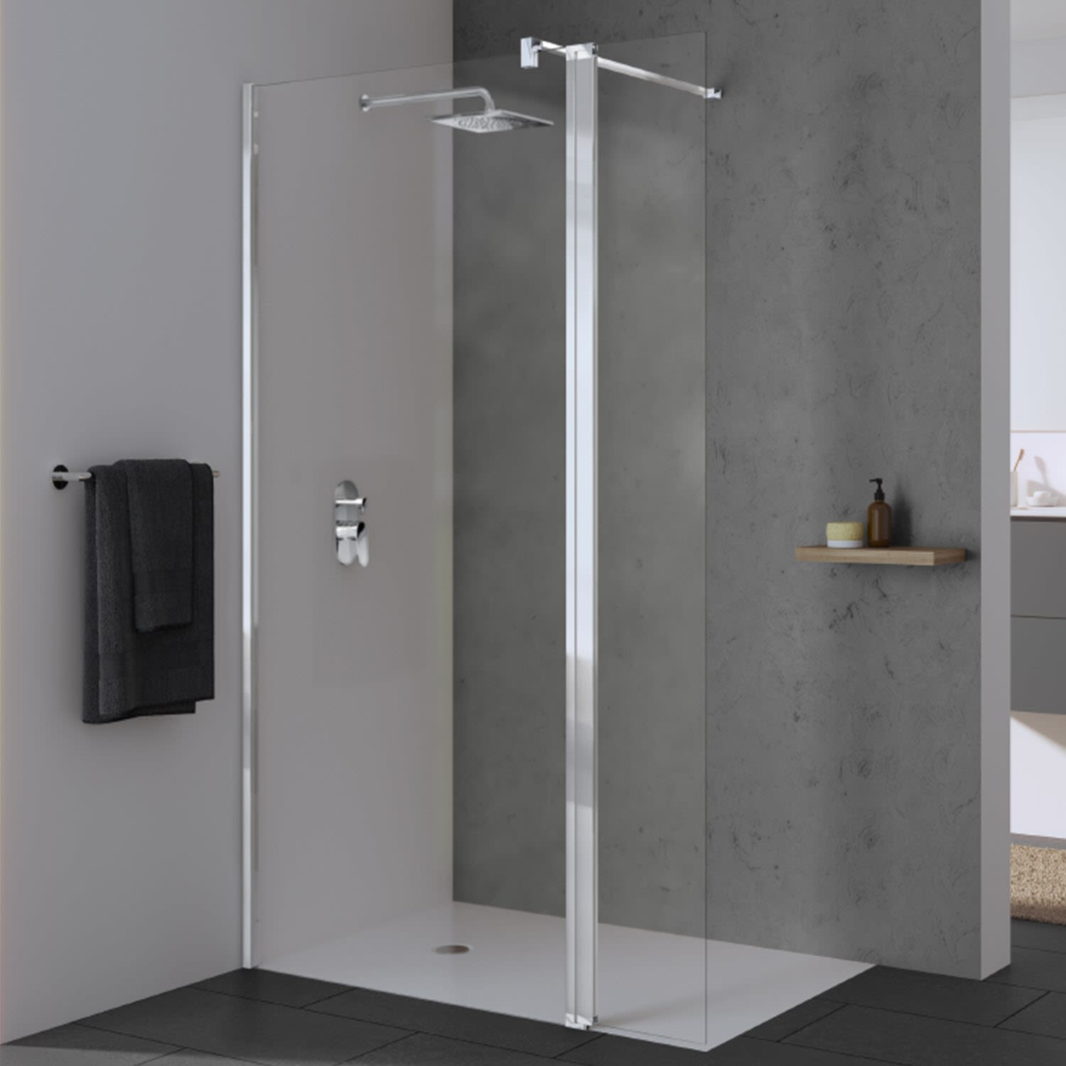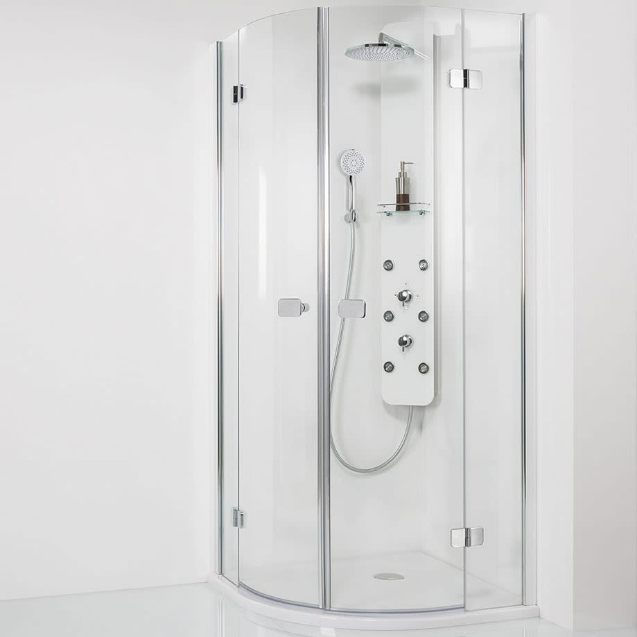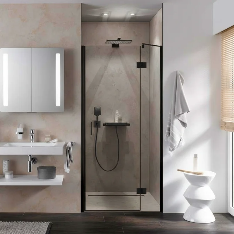 HSK teilgerahmte Drehfalttür pendelbar „Exklusiv 2.0“ für Seitenwand Glas Nebel, Profile Chromoptik (Alu Hochglanz poliert), Scharniere Premium