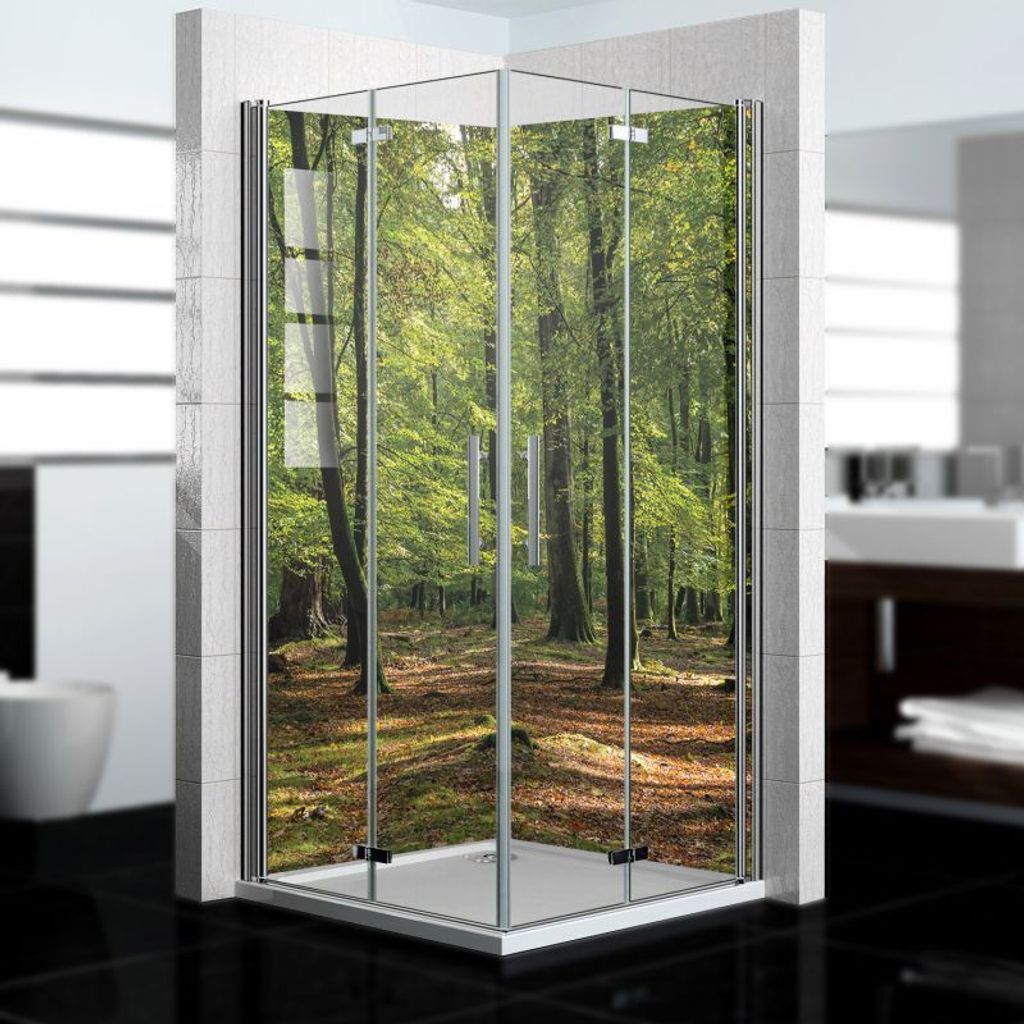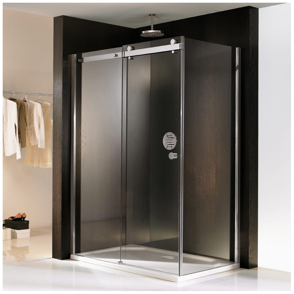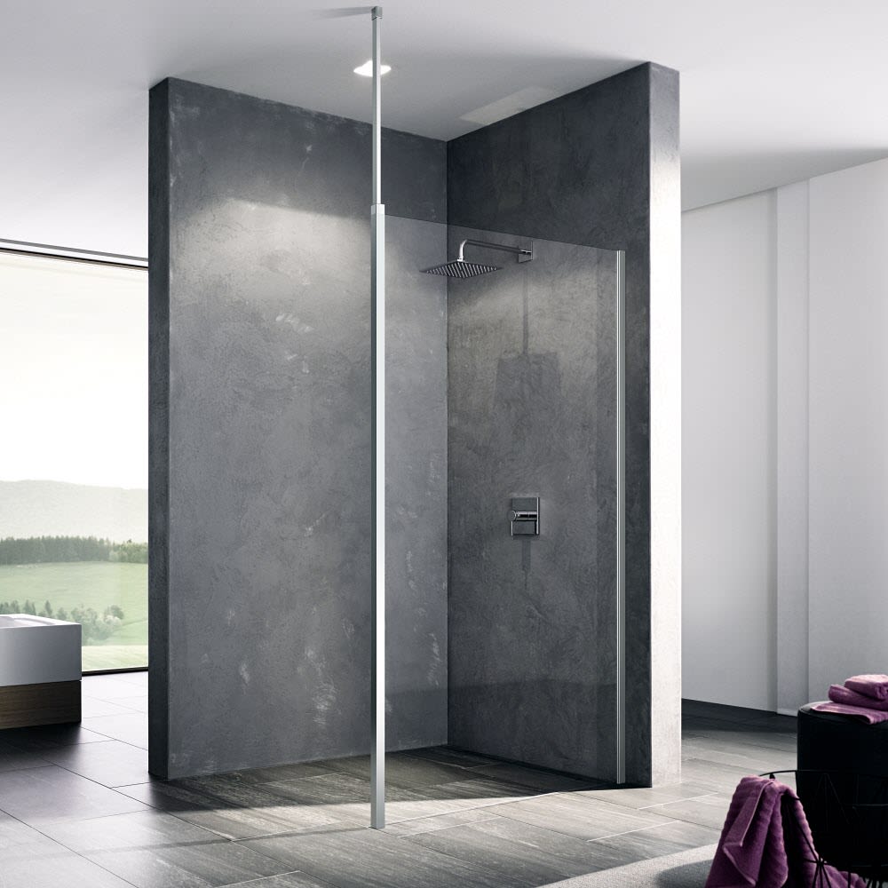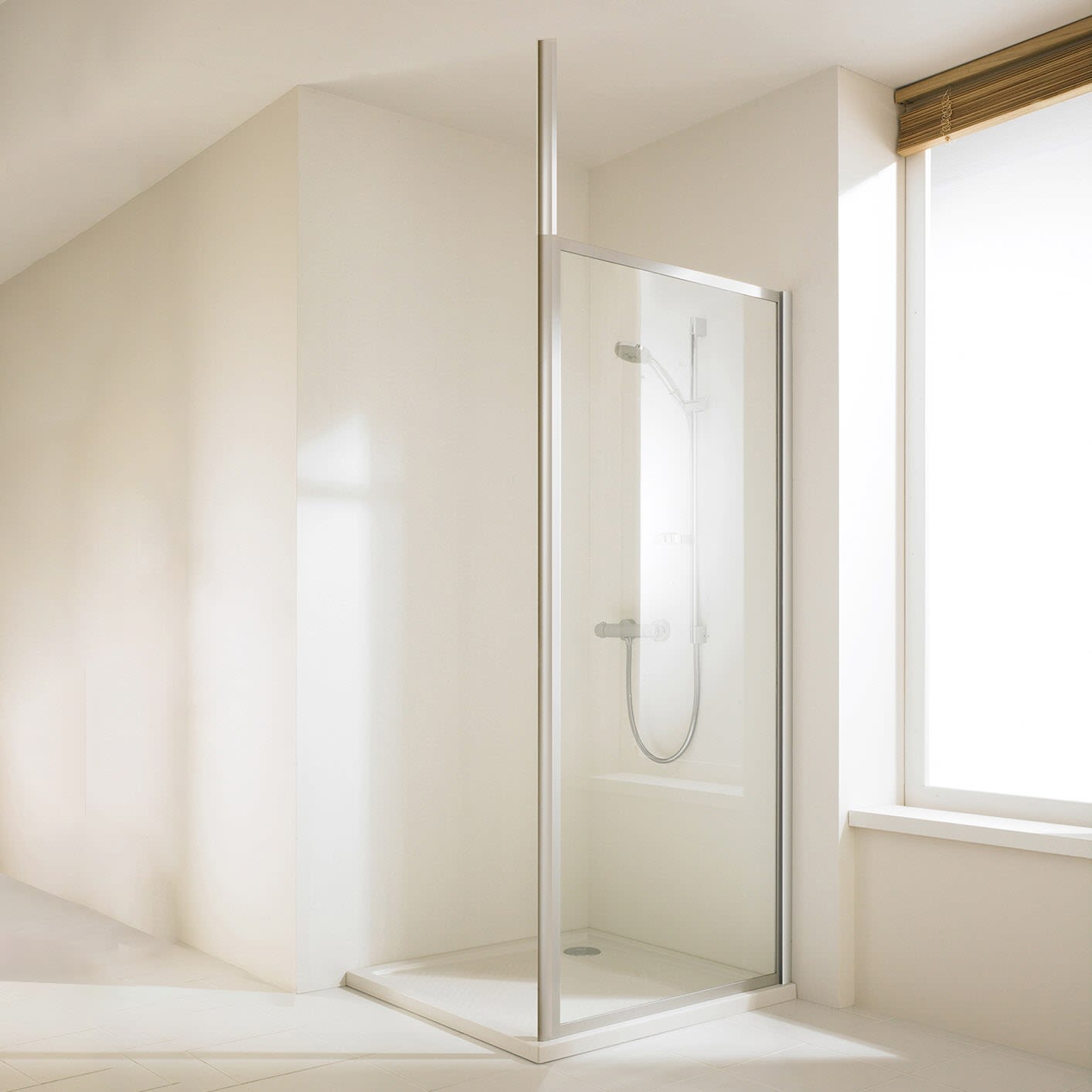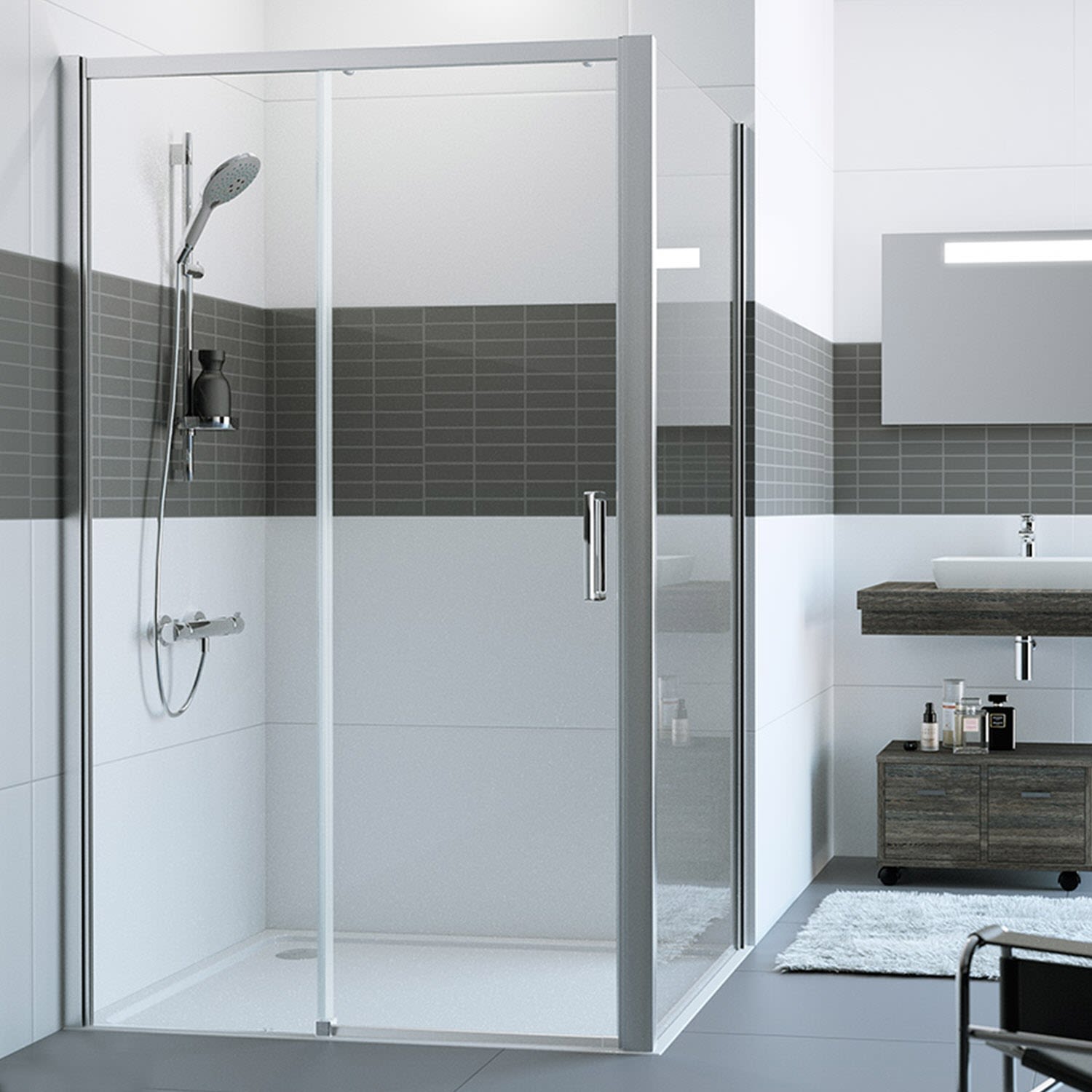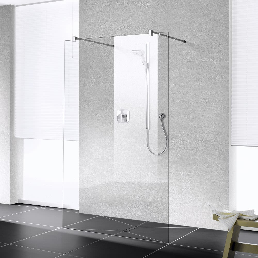 HSK teilgerahmte Drehfalttür pendelbar „Exklusiv 2.0“ für Seitenwand Glas Nebel, Profile Chromoptik (Alu Hochglanz poliert), Scharniere Premium