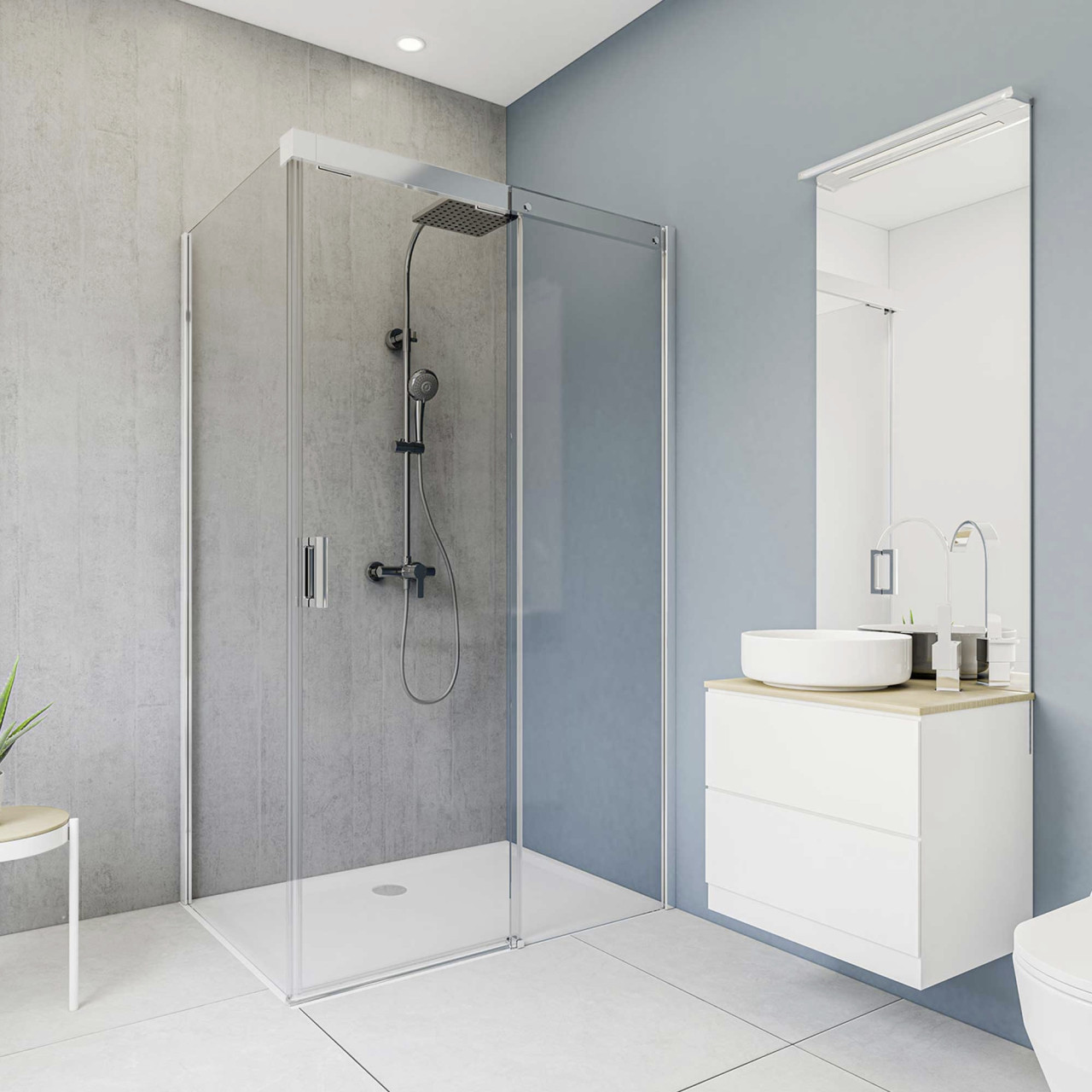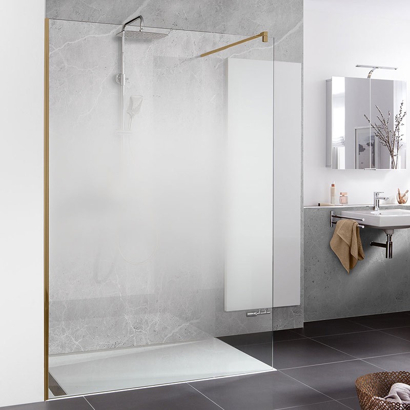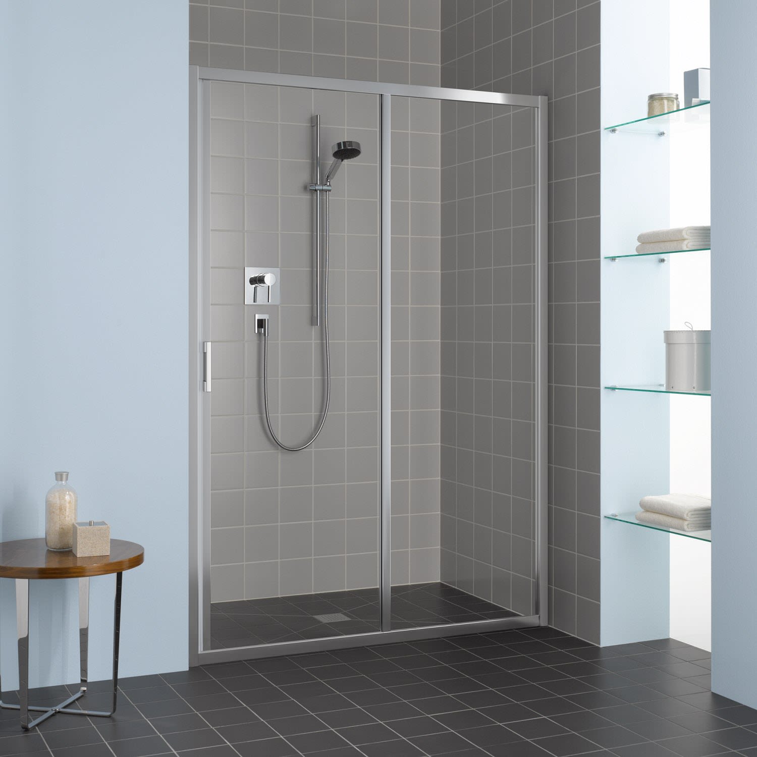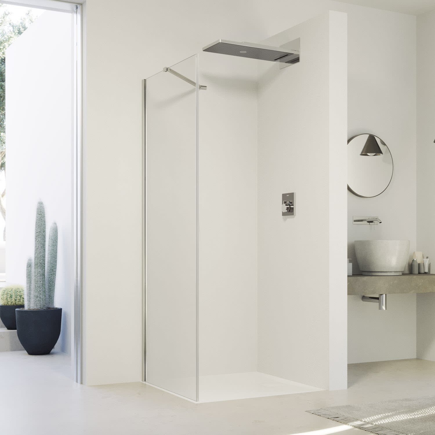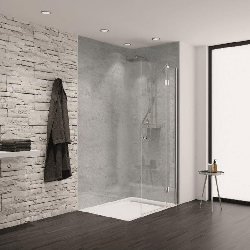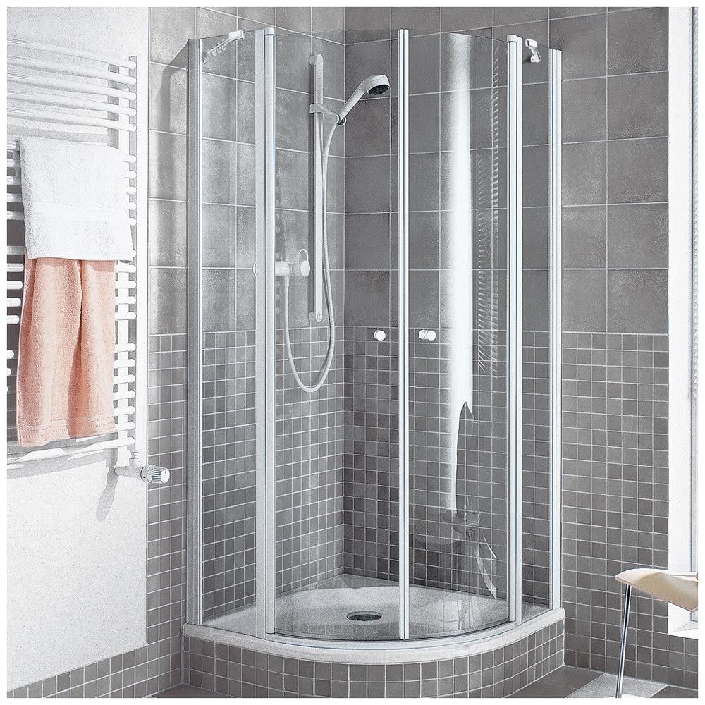 HSK teilgerahmte Drehfalttür pendelbar „Exklusiv 2.0“ für Seitenwand Glas Nebel, Profile Chromoptik (Alu Hochglanz poliert), Scharniere Premium