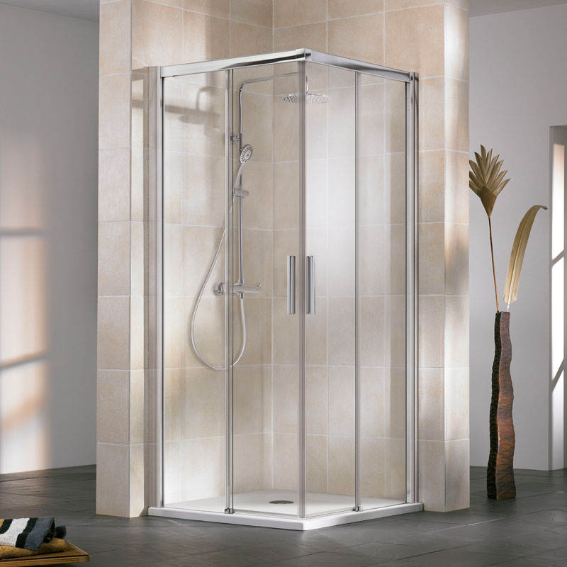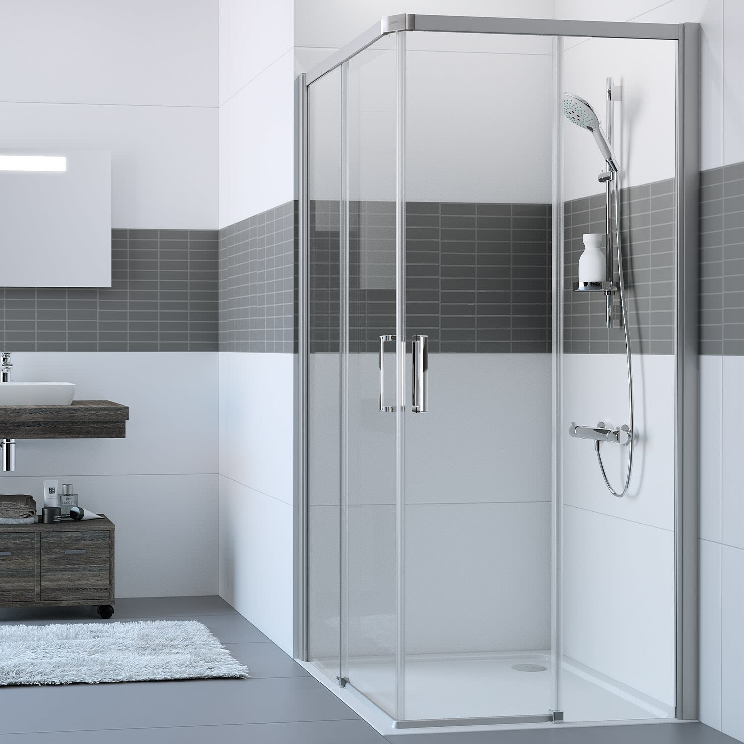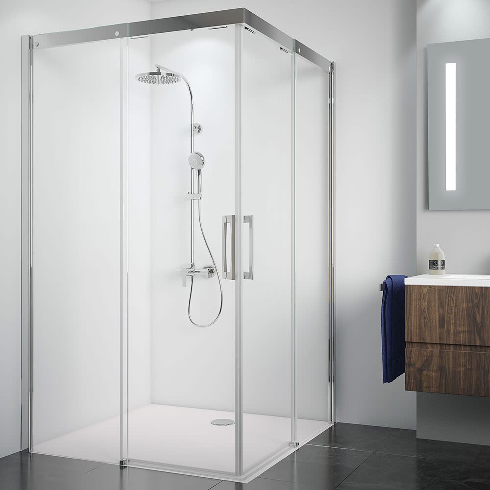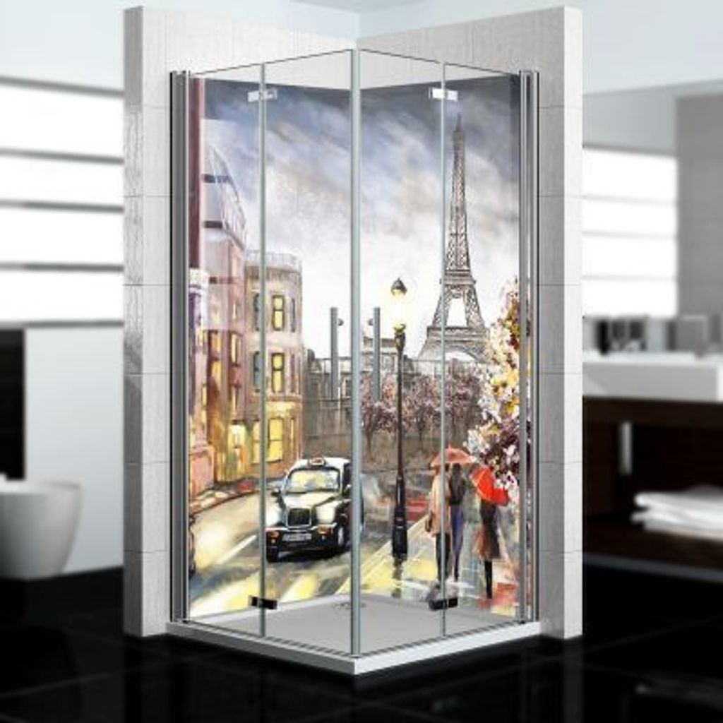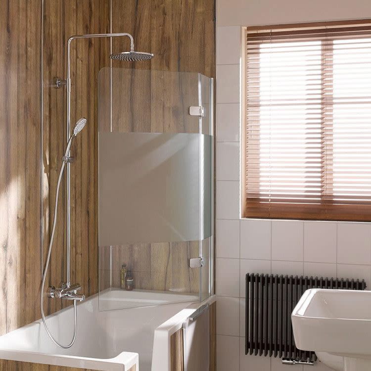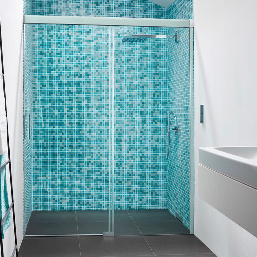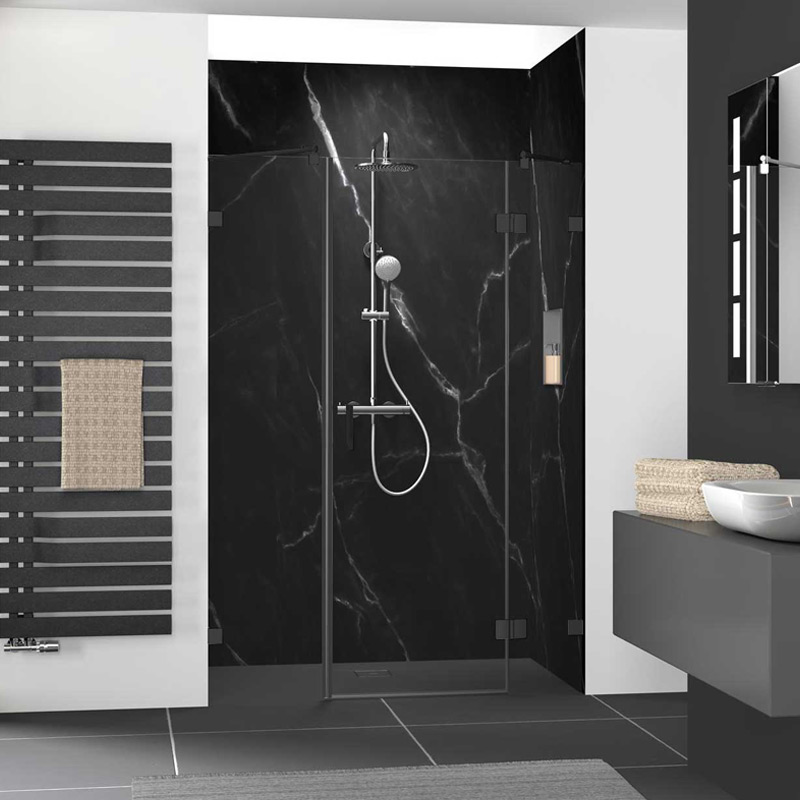 HSK teilgerahmte Drehfalttür pendelbar „Exklusiv 2.0“ für Seitenwand Glas Nebel, Profile Chromoptik (Alu Hochglanz poliert), Scharniere Premium