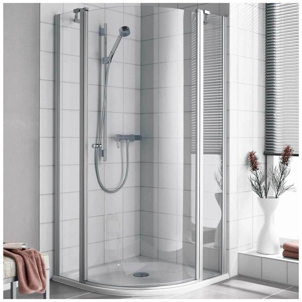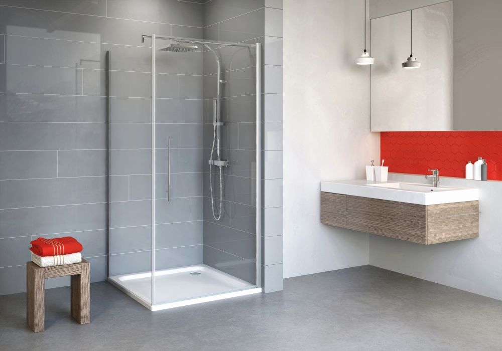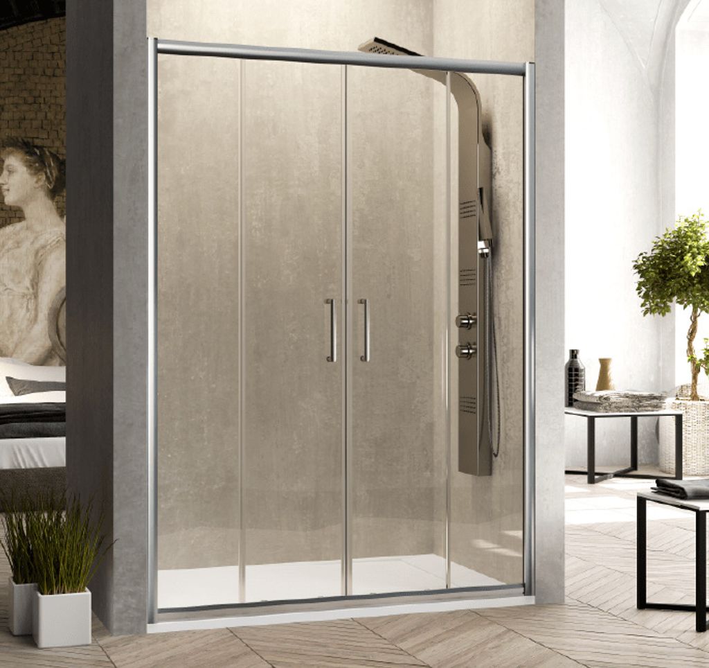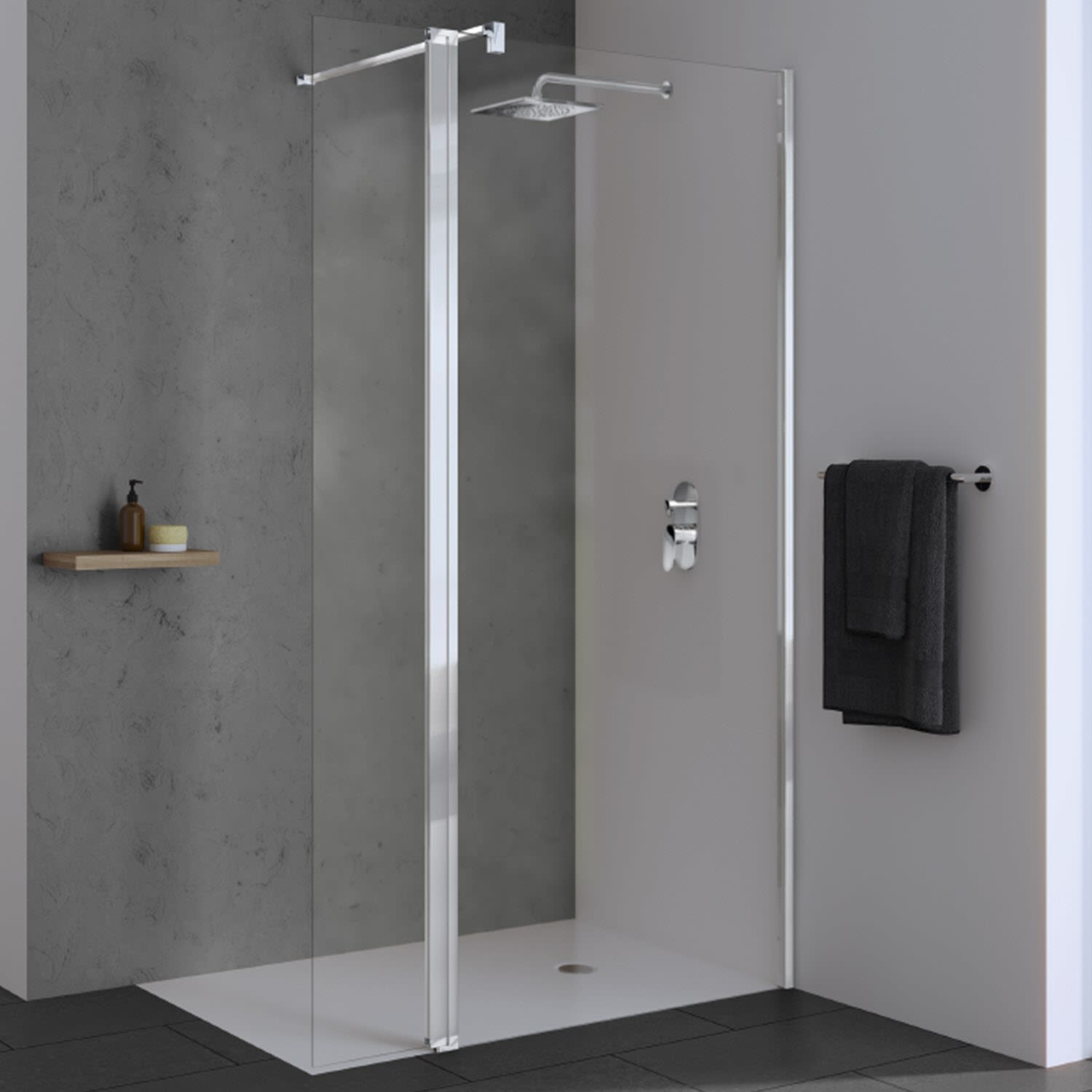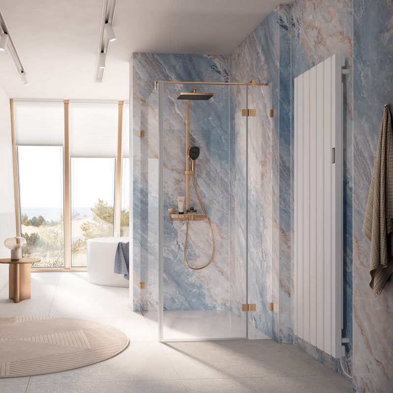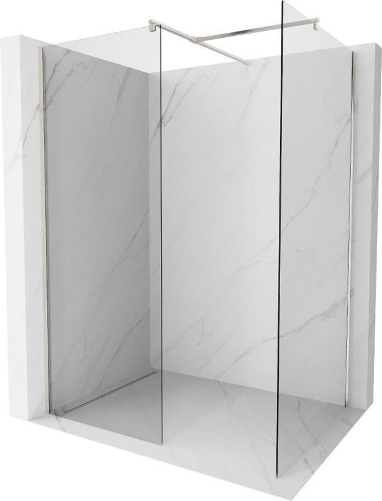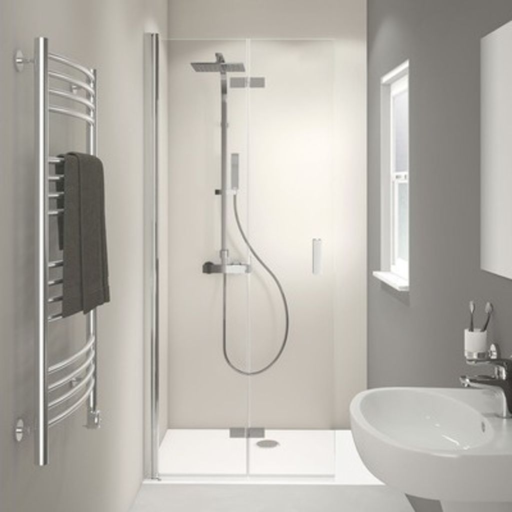 HSK teilgerahmte Drehfalttür pendelbar „Exklusiv 2.0“ für Seitenwand Glas Nebel, Profile Chromoptik (Alu Hochglanz poliert), Scharniere Premium