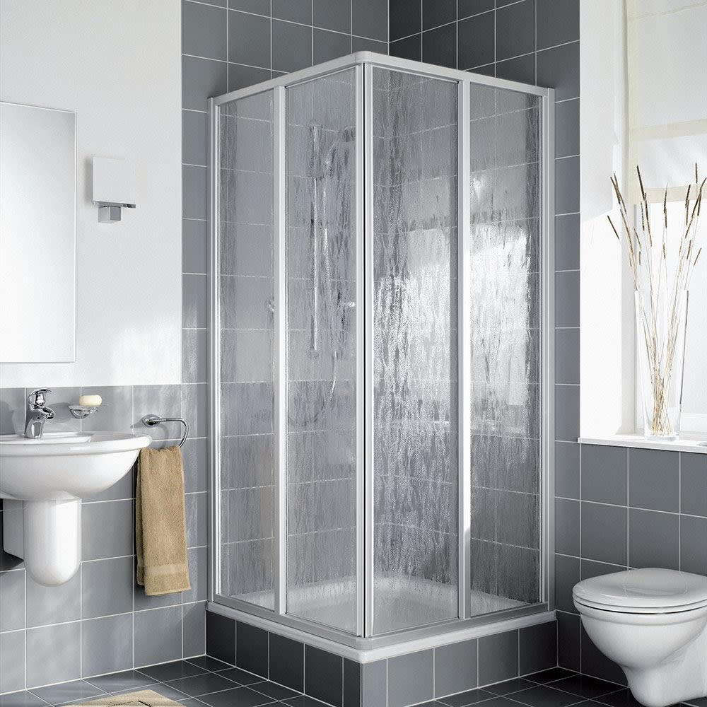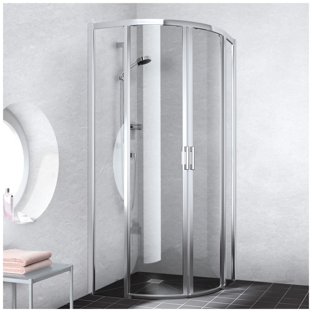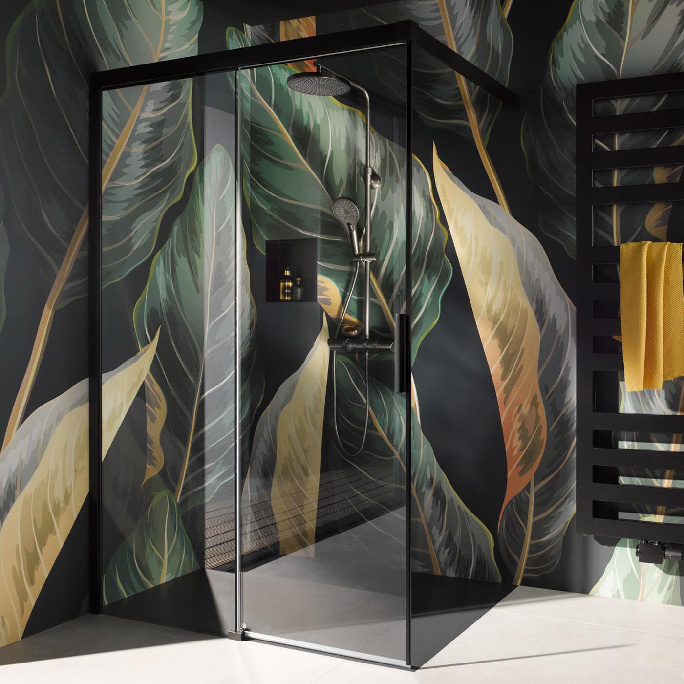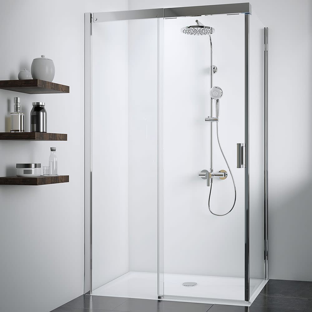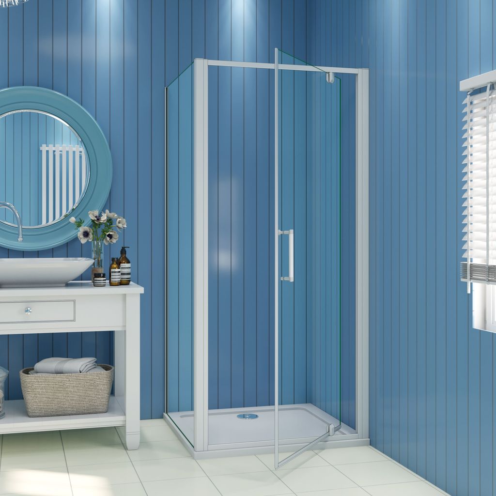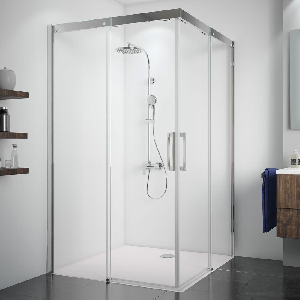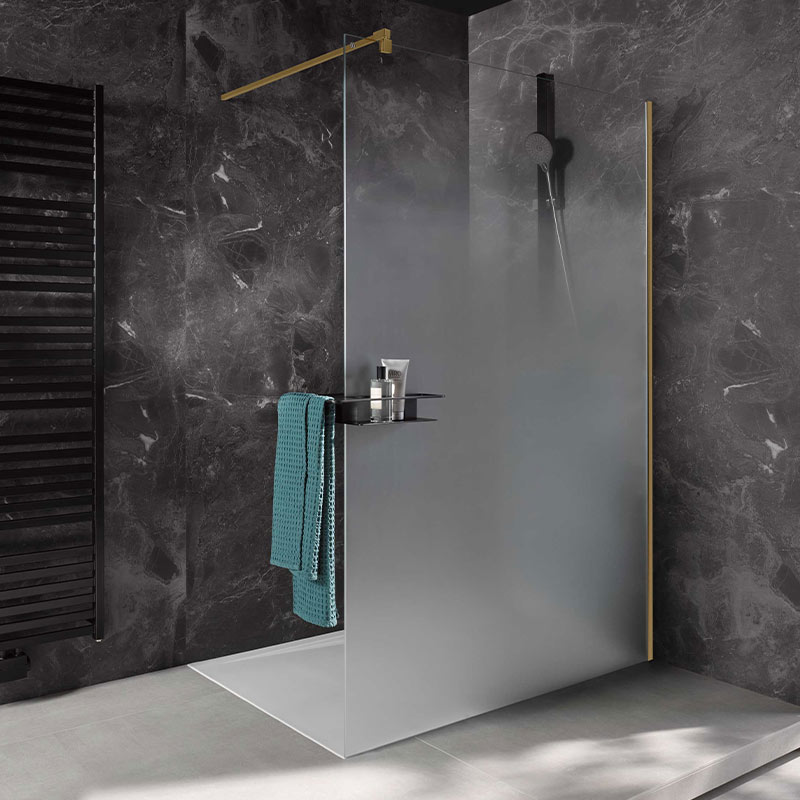 HSK teilgerahmte Drehfalttür pendelbar „Exklusiv 2.0“ für Seitenwand Glas Nebel, Profile Chromoptik (Alu Hochglanz poliert), Scharniere Premium