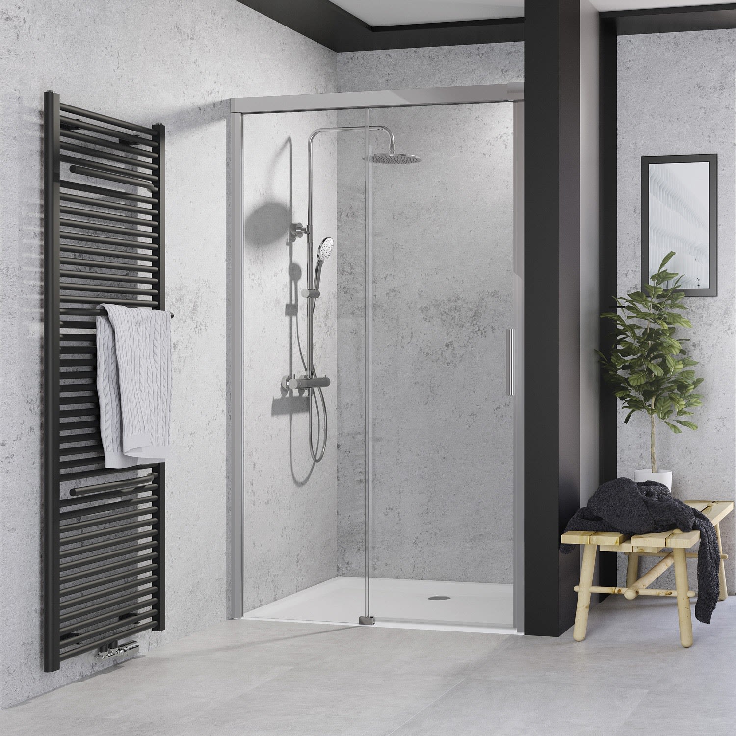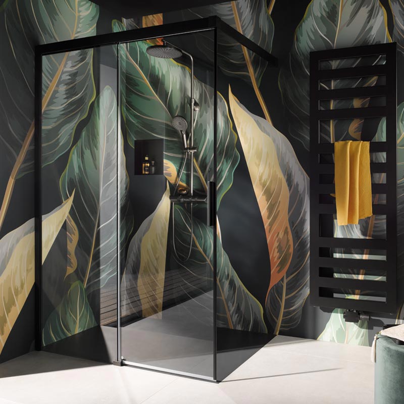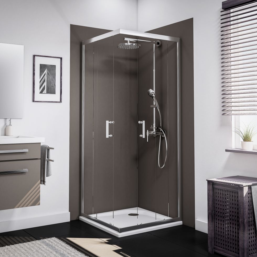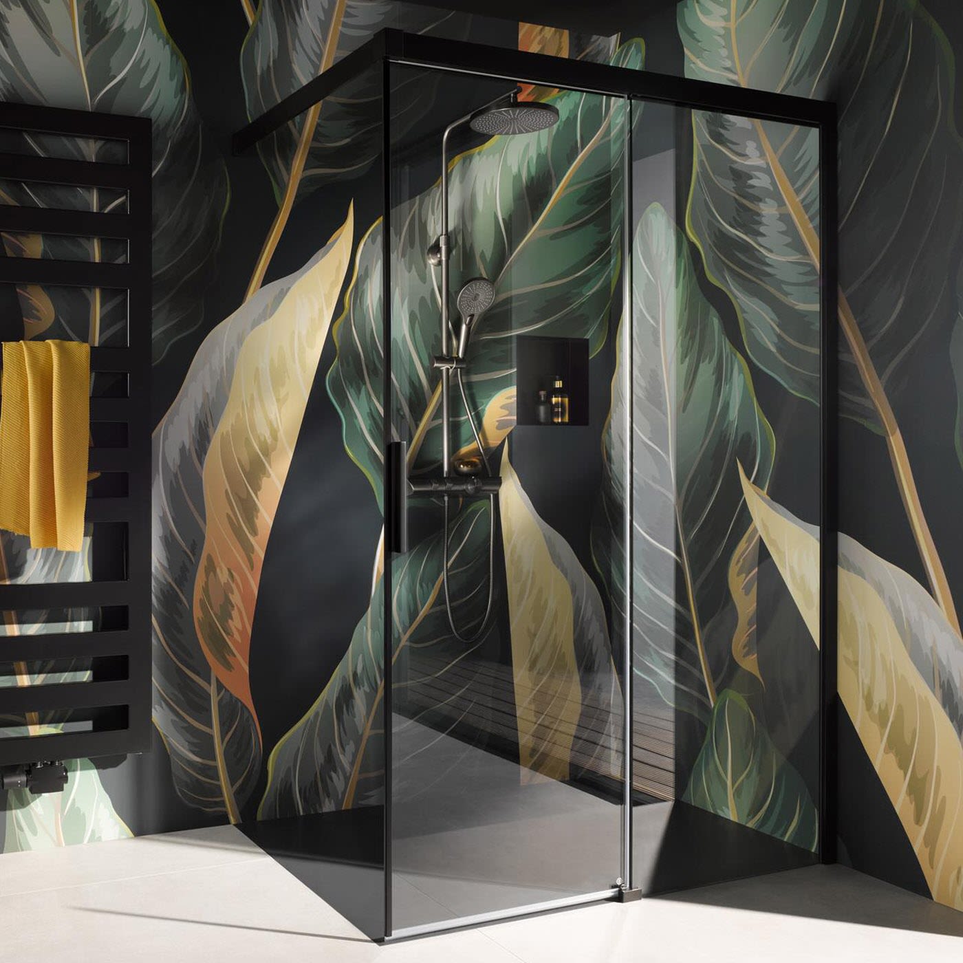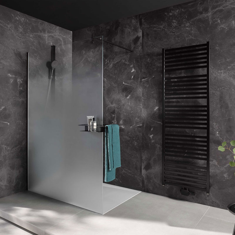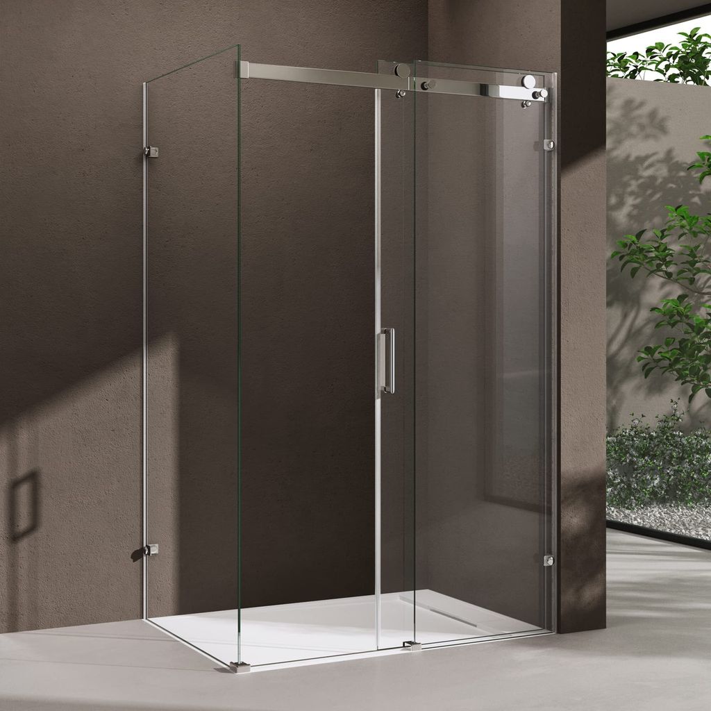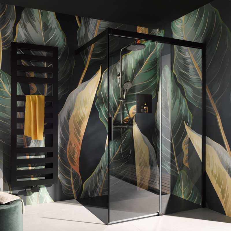 HSK teilgerahmte Drehfalttür pendelbar „Exklusiv 2.0“ für Seitenwand Glas Nebel, Profile Chromoptik (Alu Hochglanz poliert), Scharniere Premium