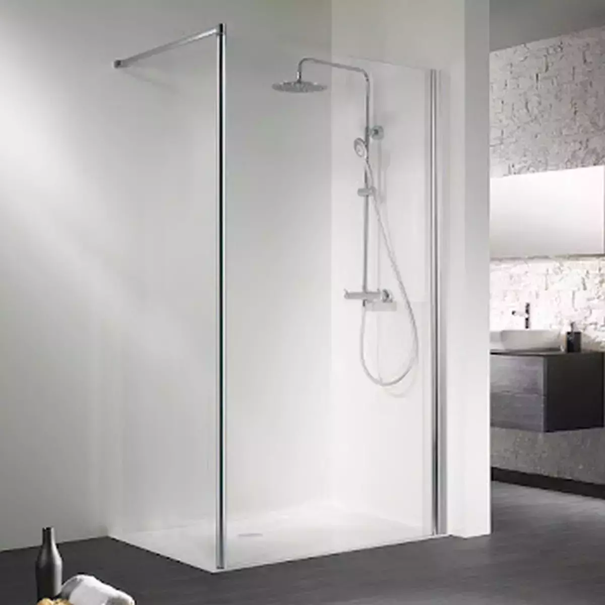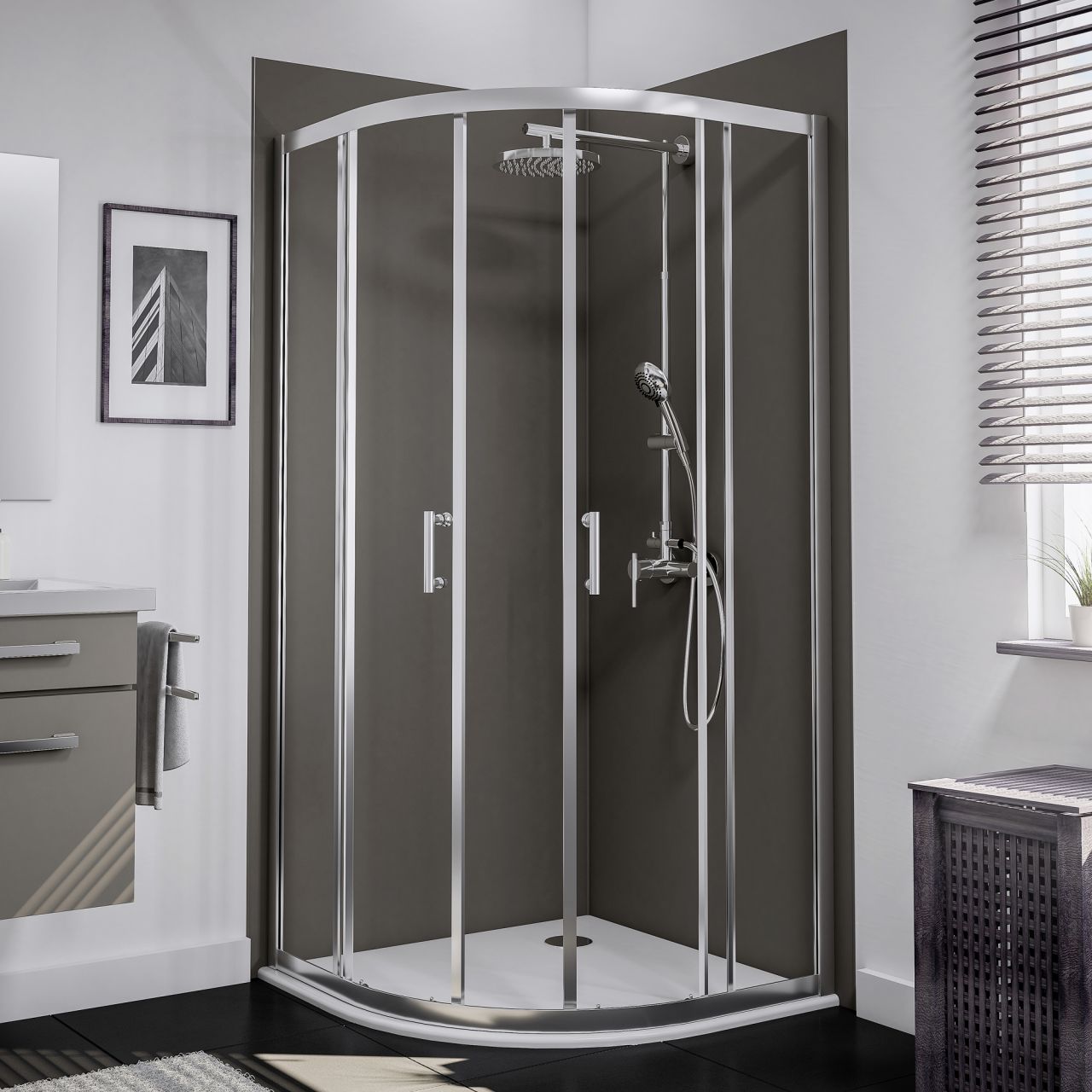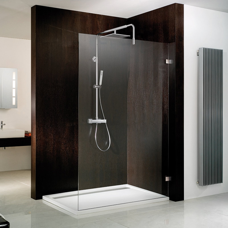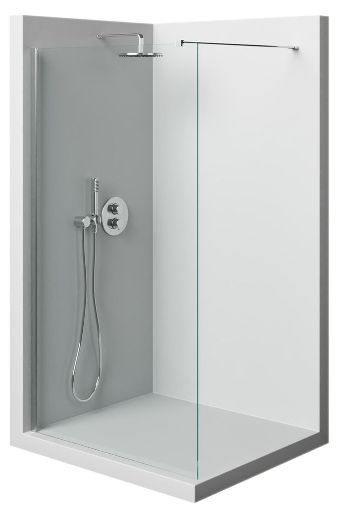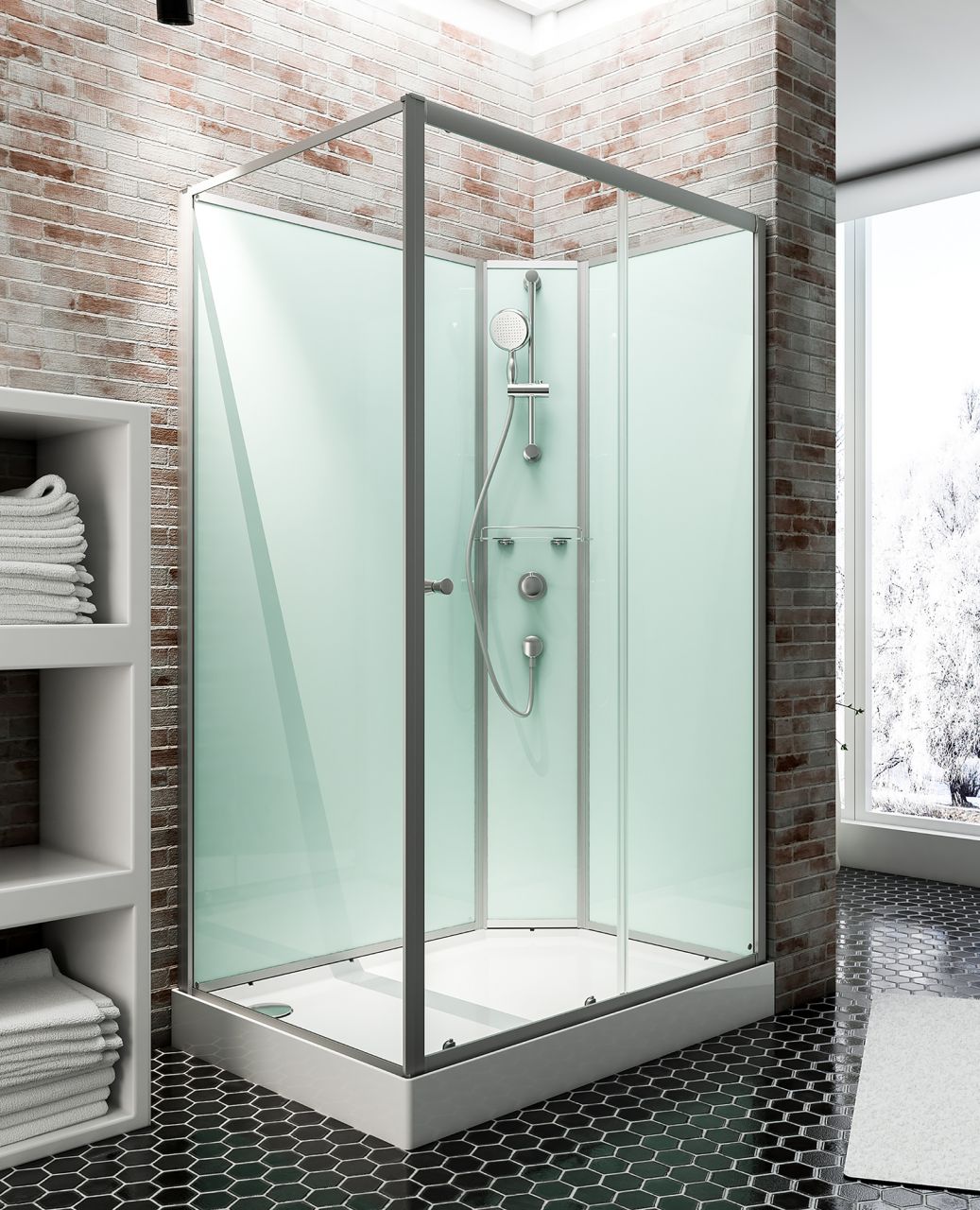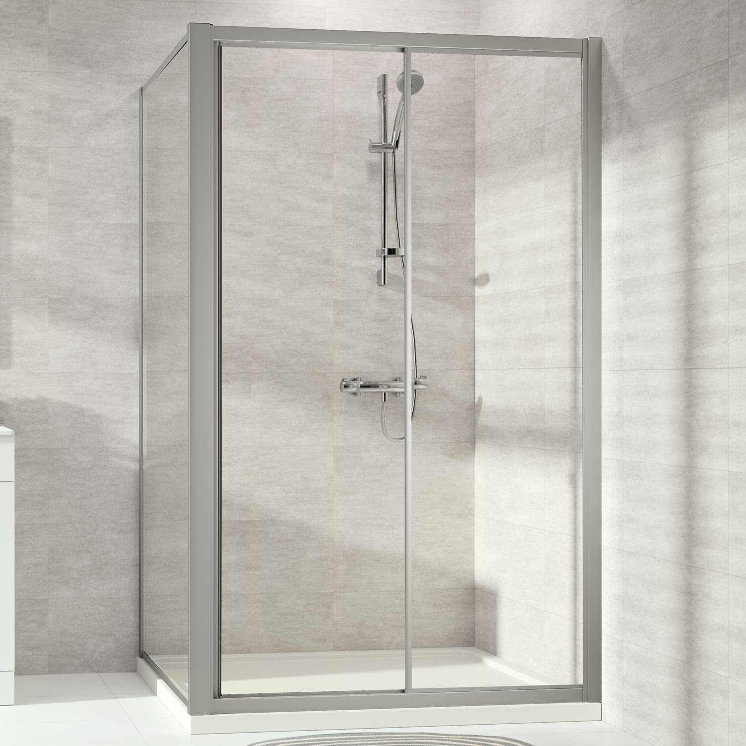 HSK teilgerahmte Drehfalttür pendelbar „Exklusiv 2.0“ für Seitenwand Glas Nebel, Profile Chromoptik (Alu Hochglanz poliert), Scharniere Premium