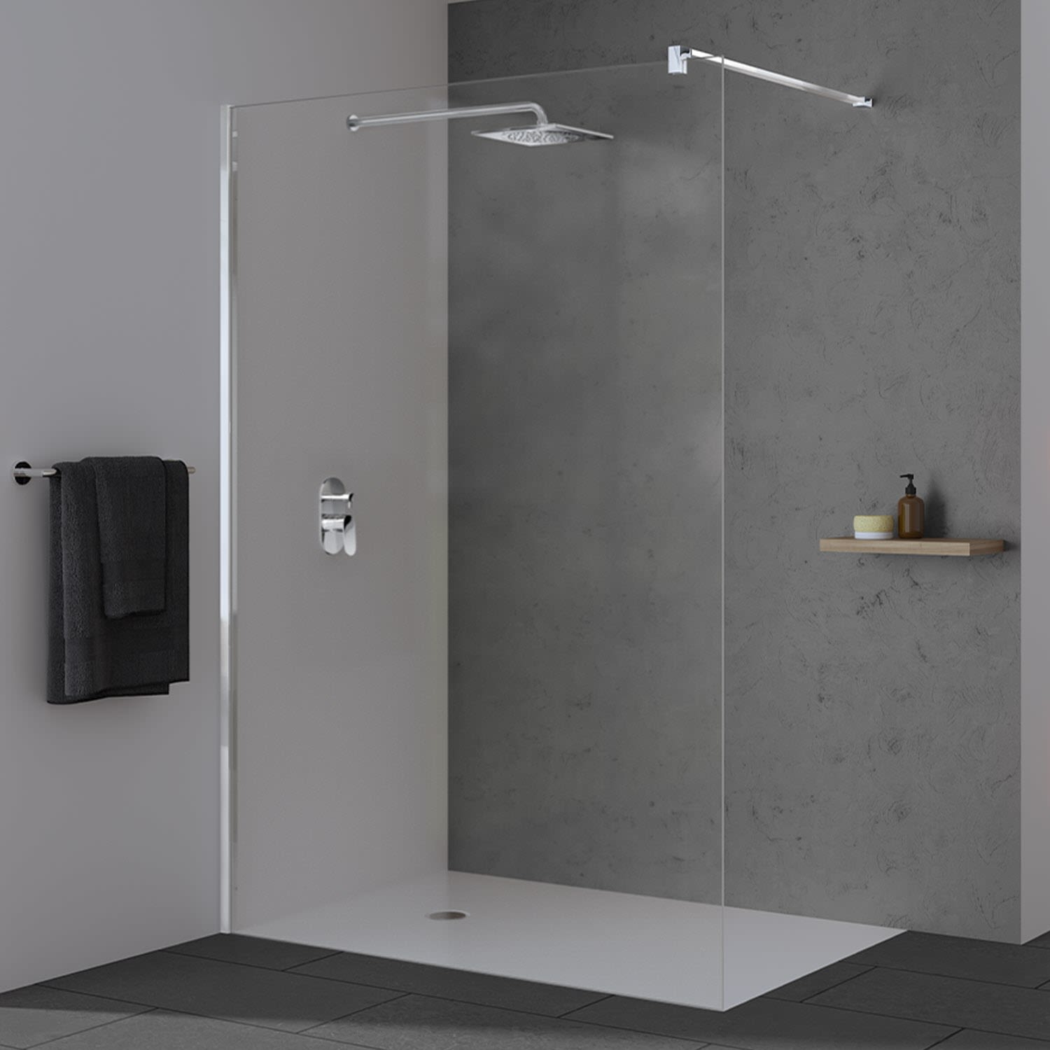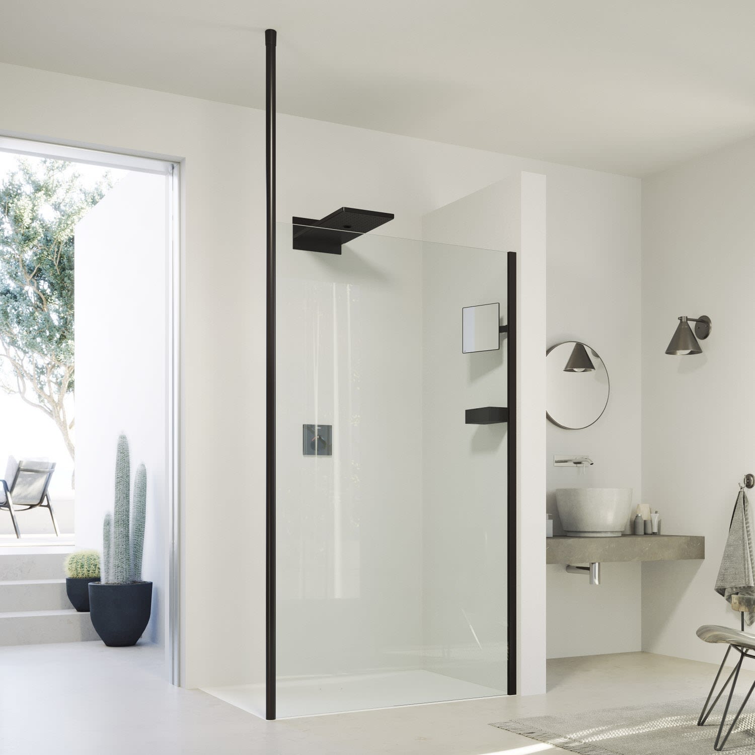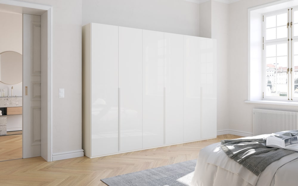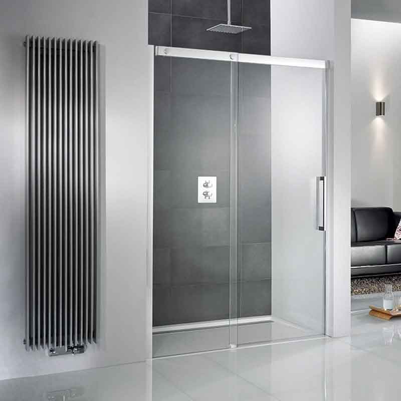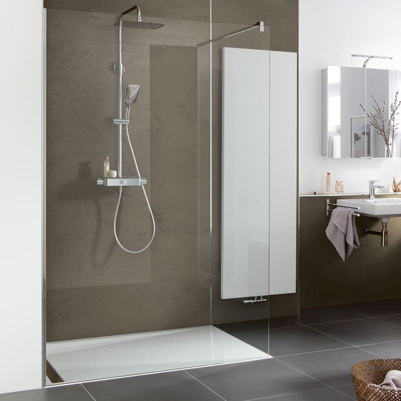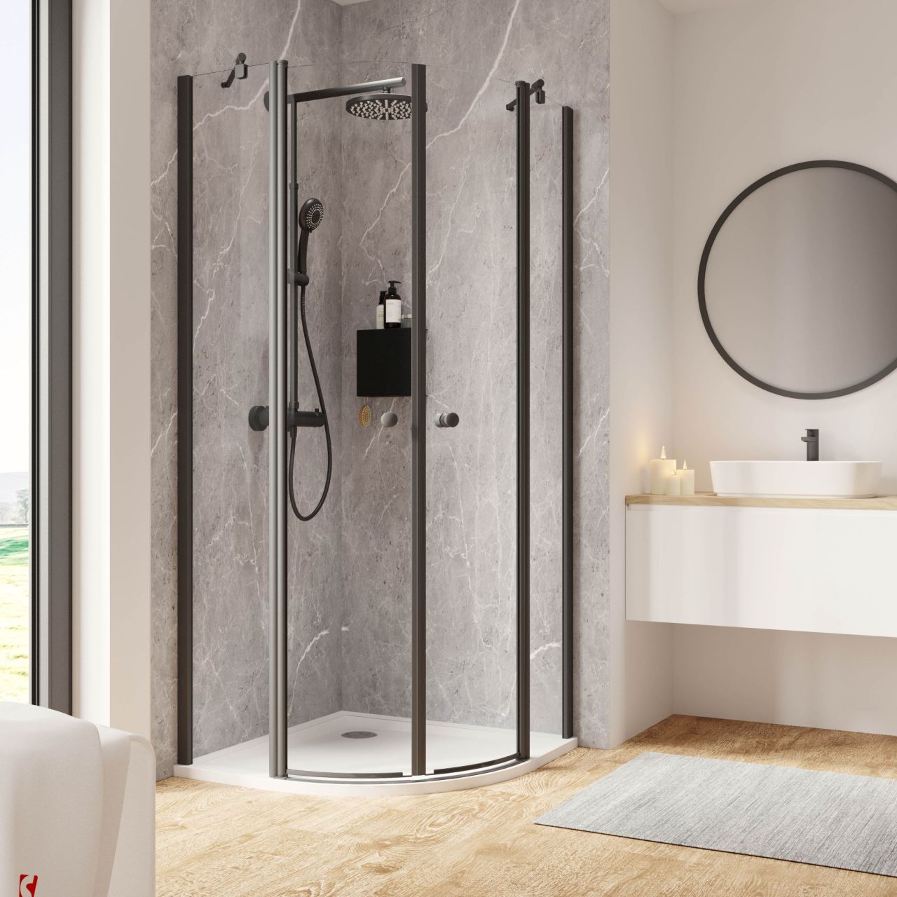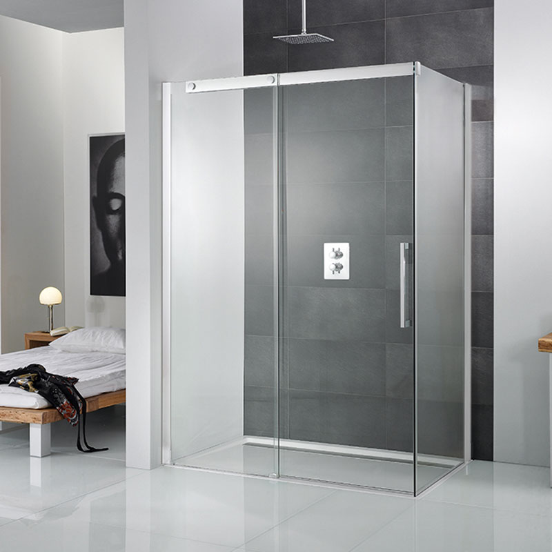 HSK teilgerahmte Drehfalttür pendelbar „Exklusiv 2.0“ für Seitenwand Glas Nebel, Profile Chromoptik (Alu Hochglanz poliert), Scharniere Premium