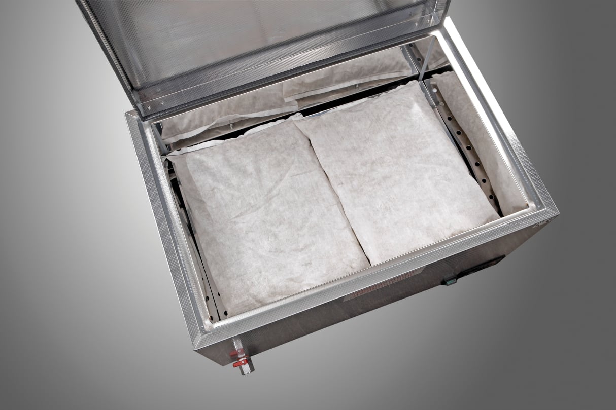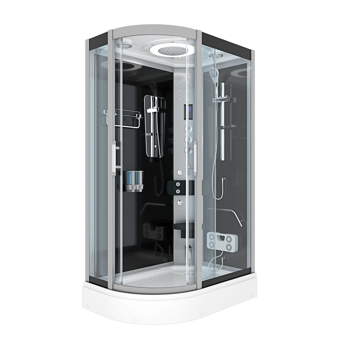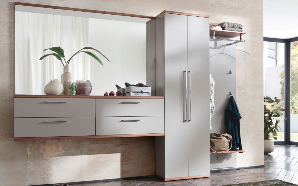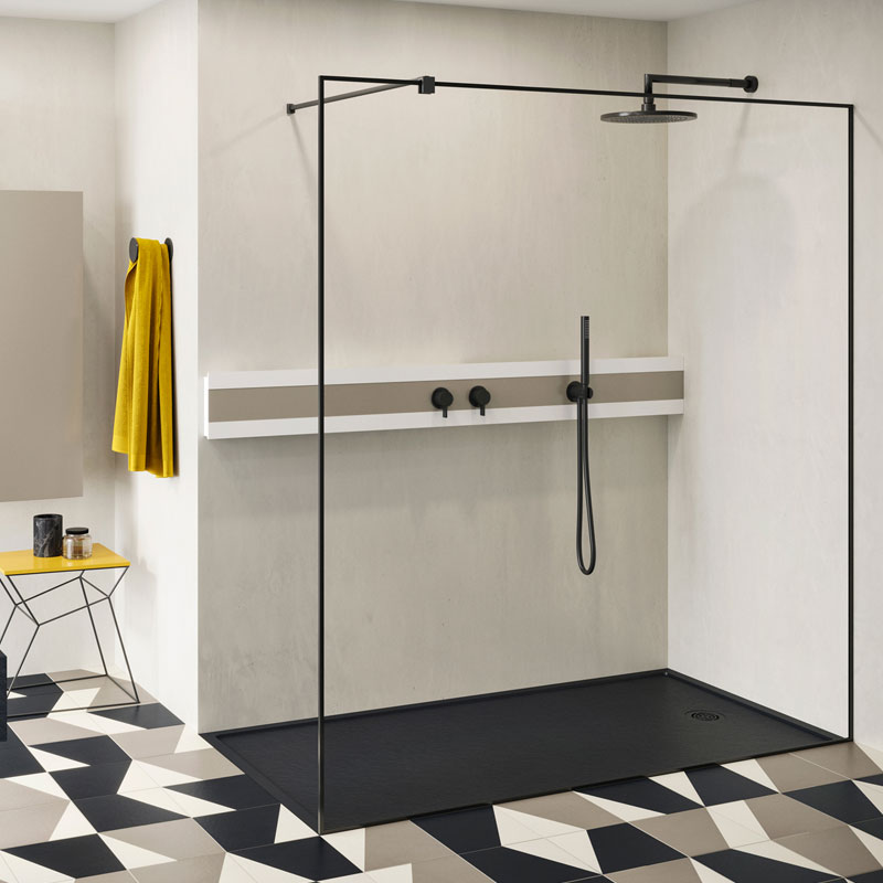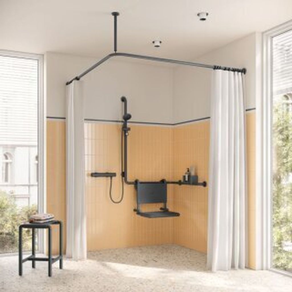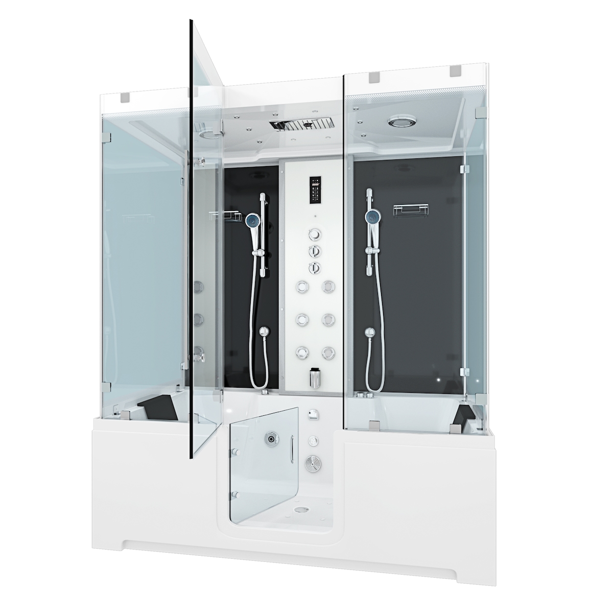HSK teilgerahmte Drehfalttür pendelbar „Exklusiv 2.0“ für Seitenwand Glas Nebel, Profile Chromoptik (Alu Hochglanz poliert), Scharniere Premium